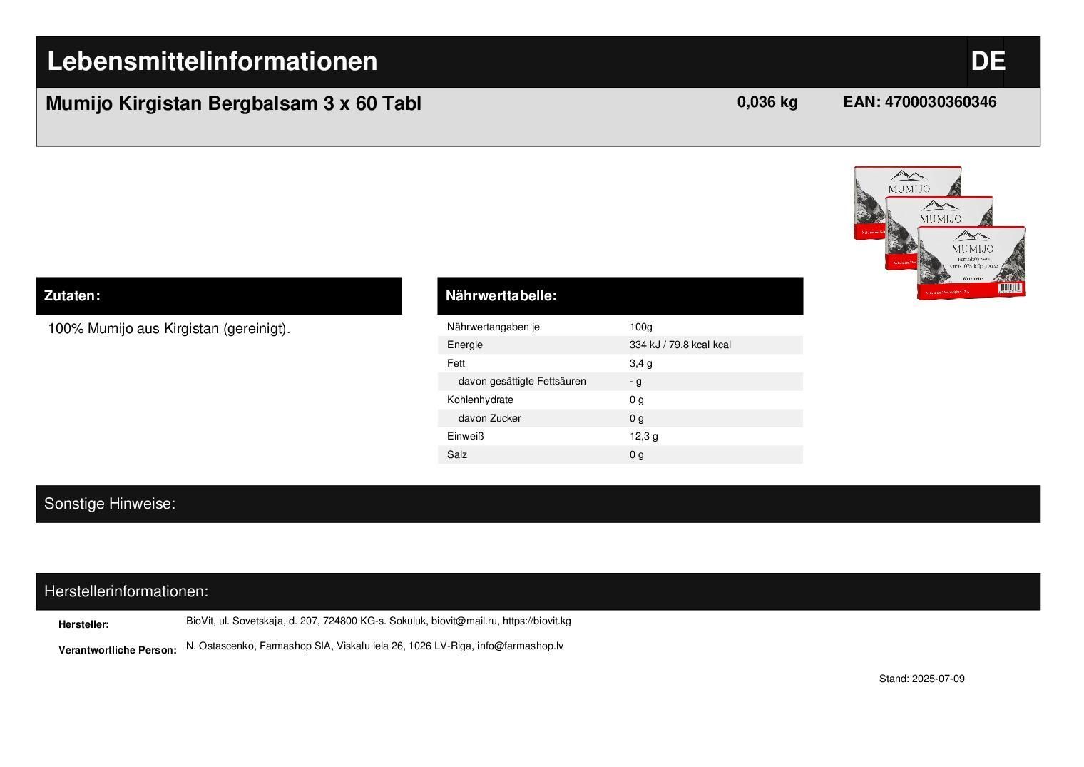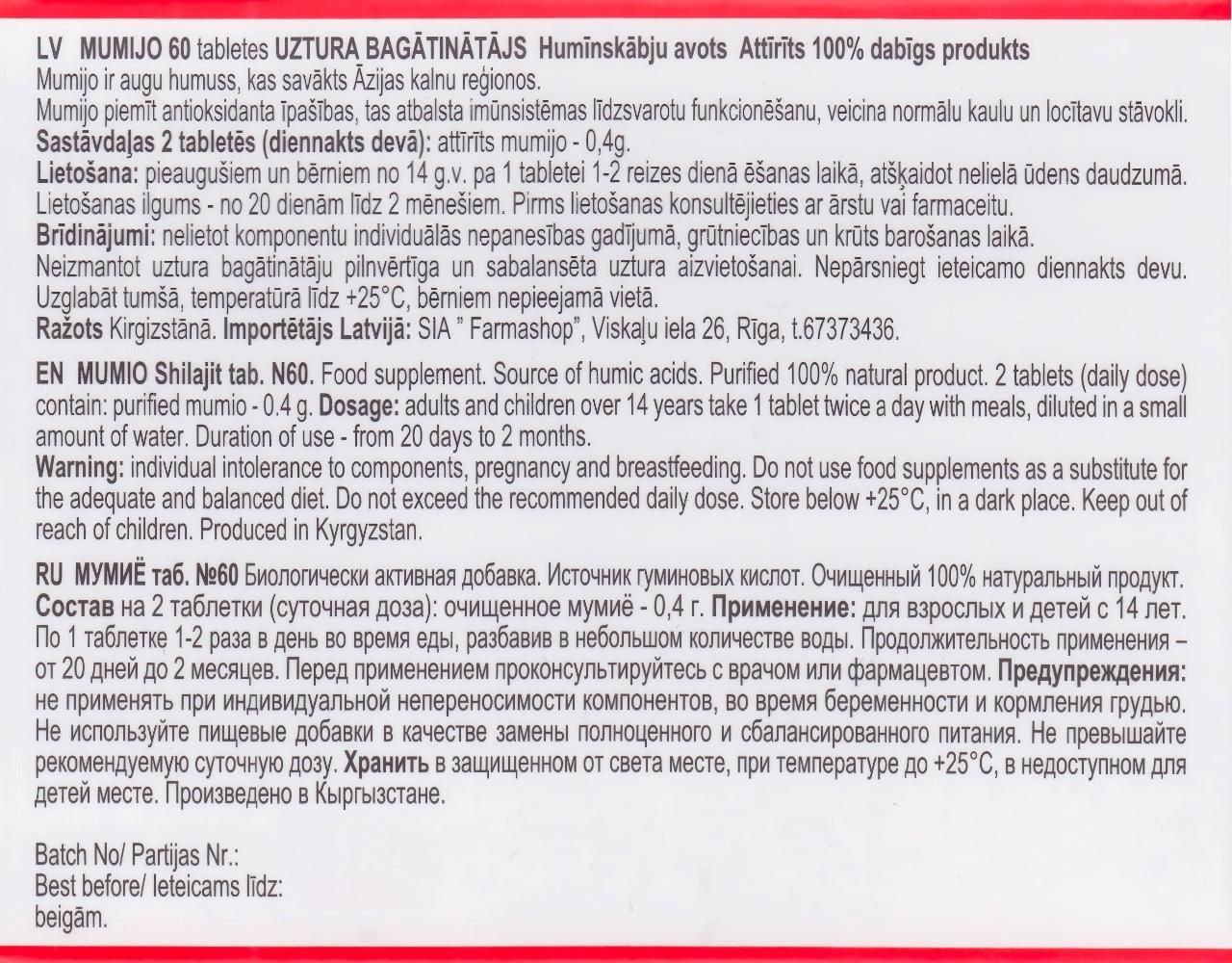 Mumijo Shilajit 3 x 60 Tabl Kirgistan Mumio Mumie Hohe Qualität Bergbalsam
