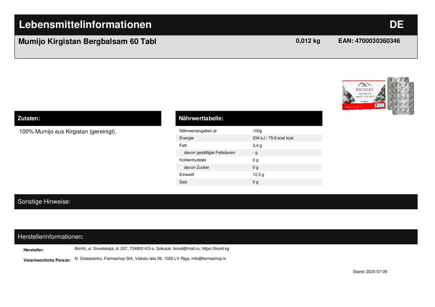 Mumijo Shilajit Kirgistan Mumio Mumie Hohe Qualität Bergbalsam 60 Tabl