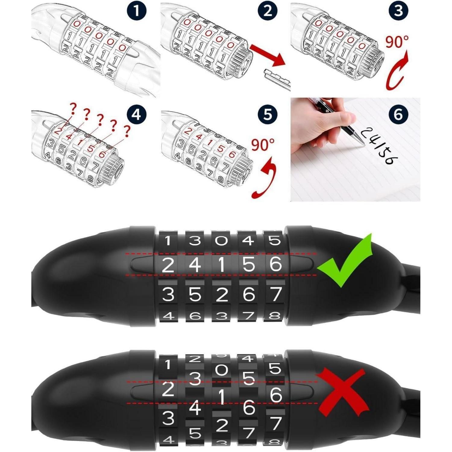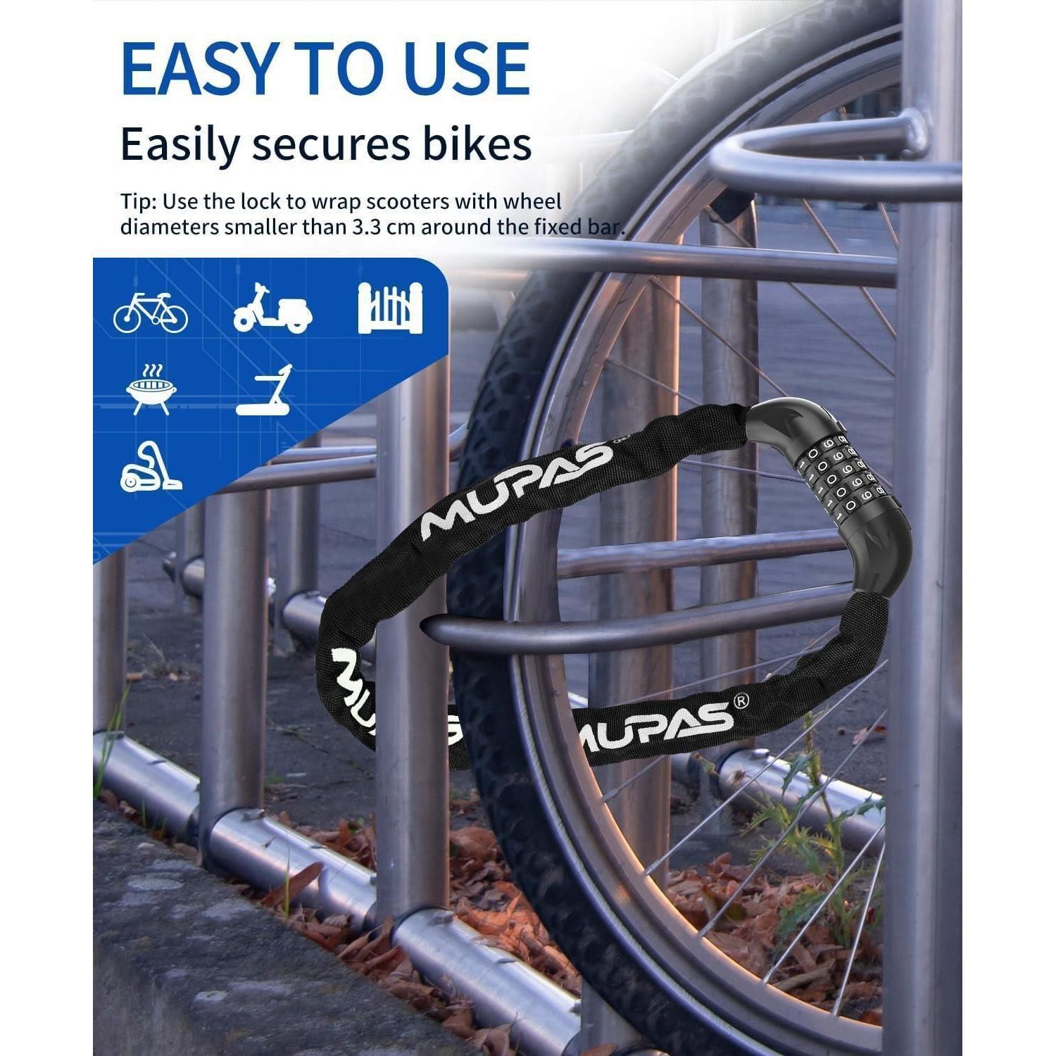 MUPAS Fahrradschloss mit 5 stelligem Zahlencode aus gehärtetem Stahl