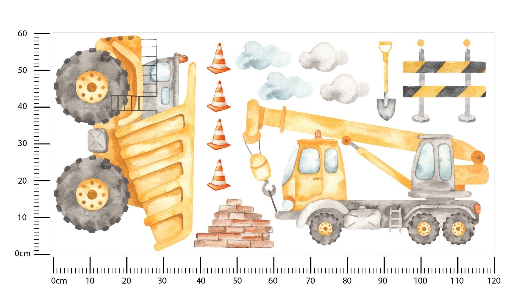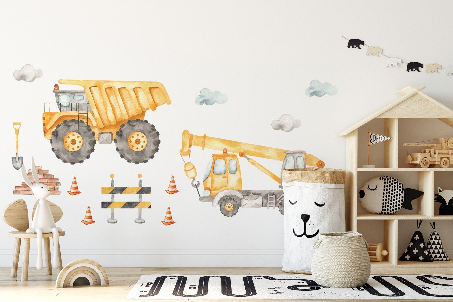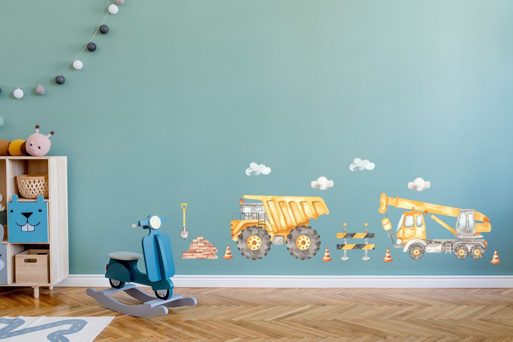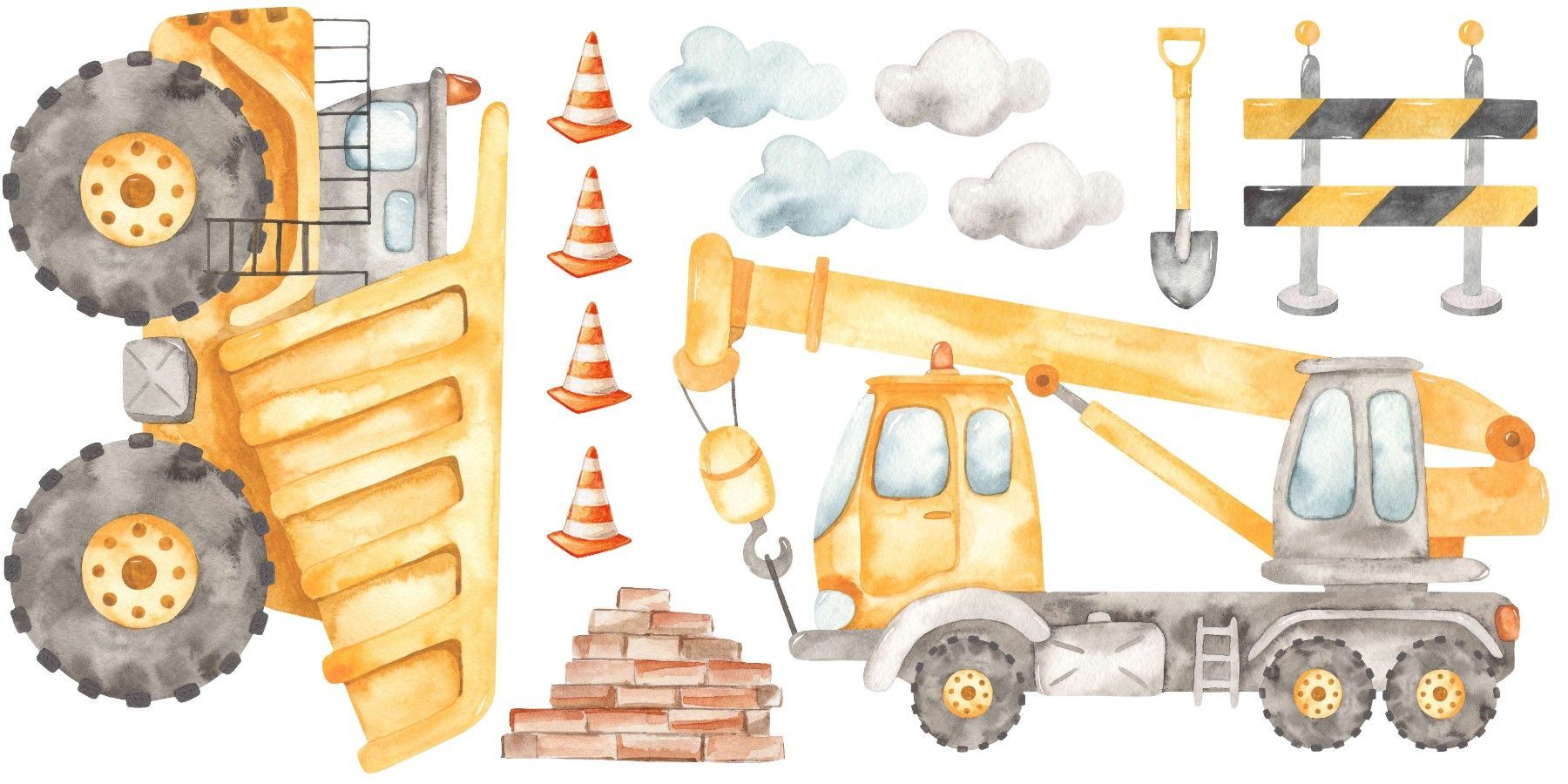 Muralo Aufkleber für Kinderzimmer Aquarelle Baumaschine Wolken Wandtattoo Wandsticker