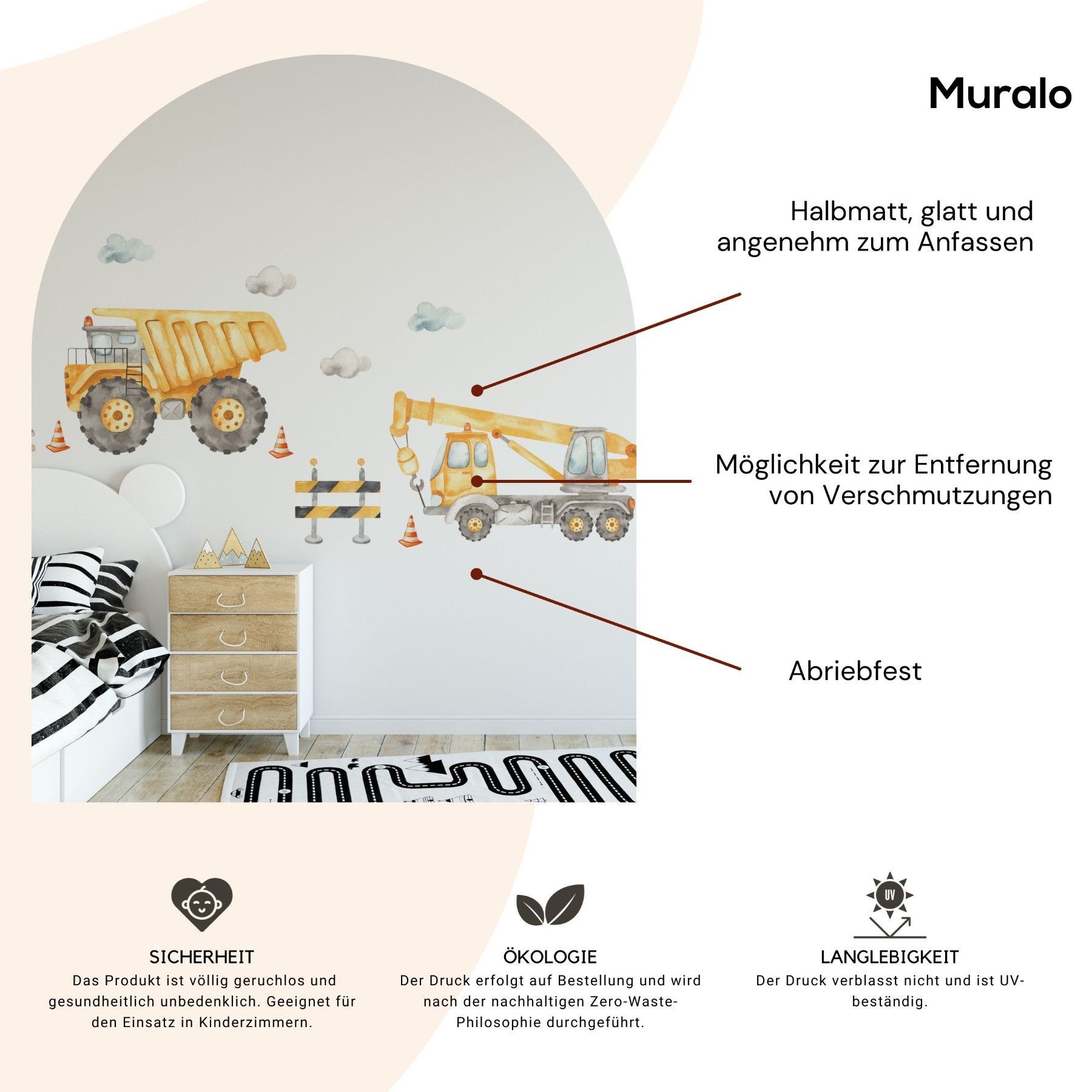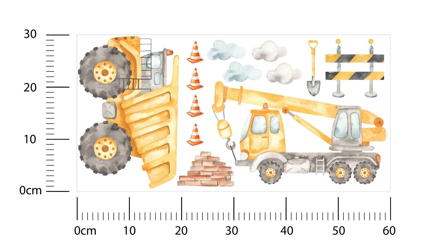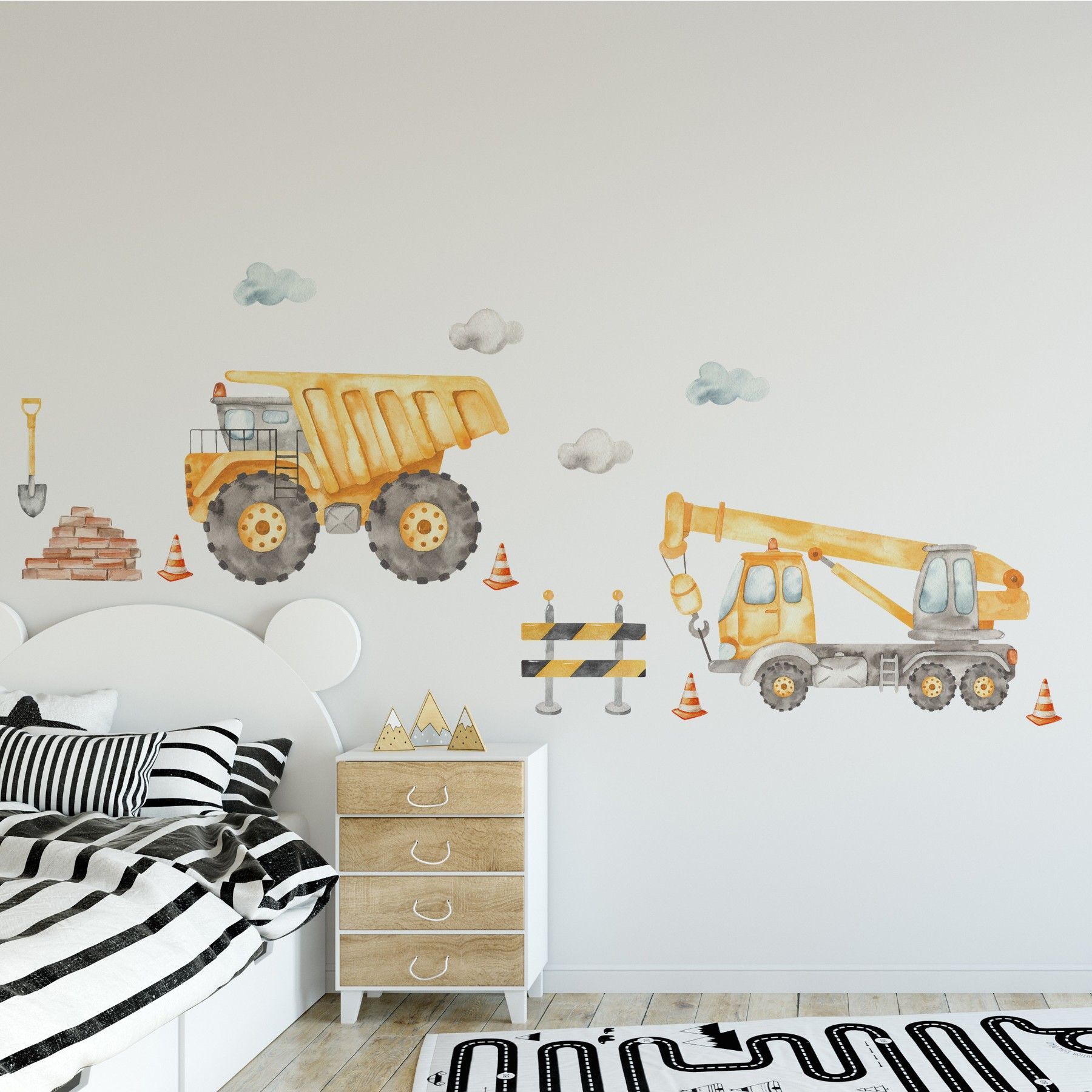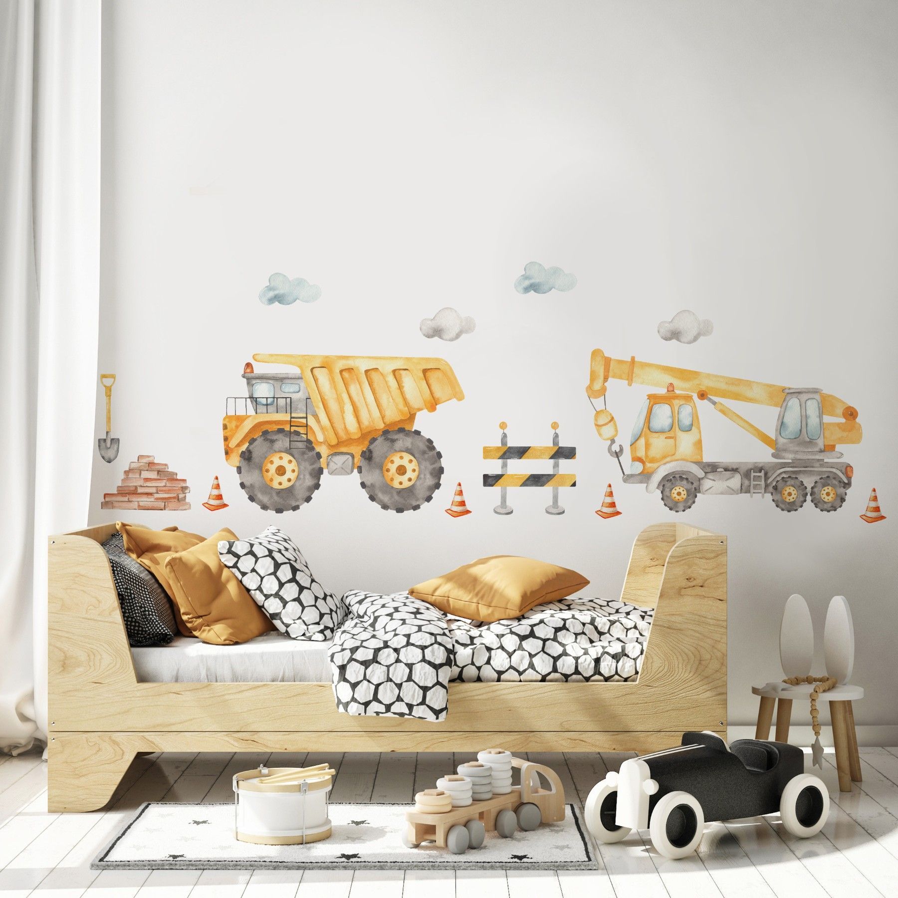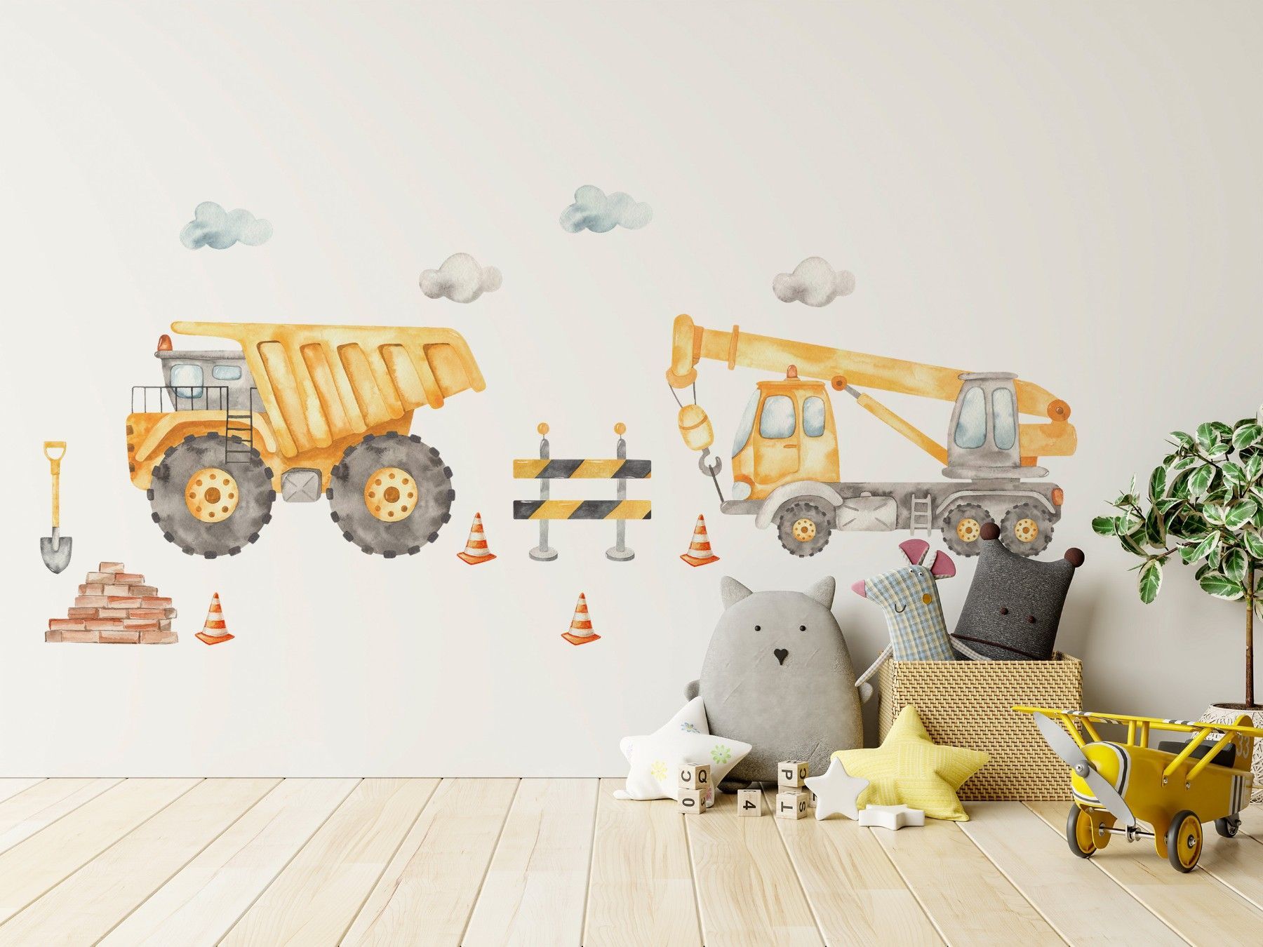 Muralo Aufkleber für Kinderzimmer Aquarelle Baumaschine Wolken Wandtattoo Wandsticker