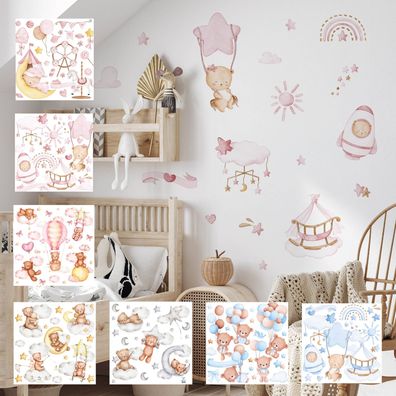 Wandsticker Set für Babyzimmer Bären Ballons Wolken Sterne Tiere Wandtattoo Set