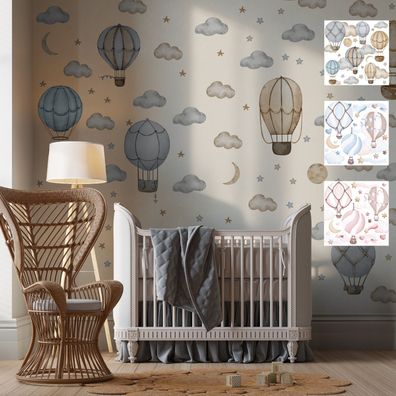 • Muralo Aufkleber Set für Kinderzimmer Luftballons Wolken Sterne