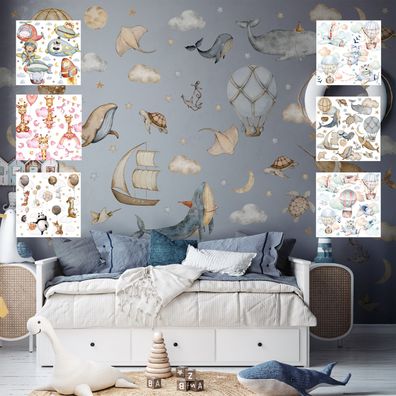 • Muralo Aufkleber Set für Kinderzimmer Tiere Wolken Sterne Luftballons
