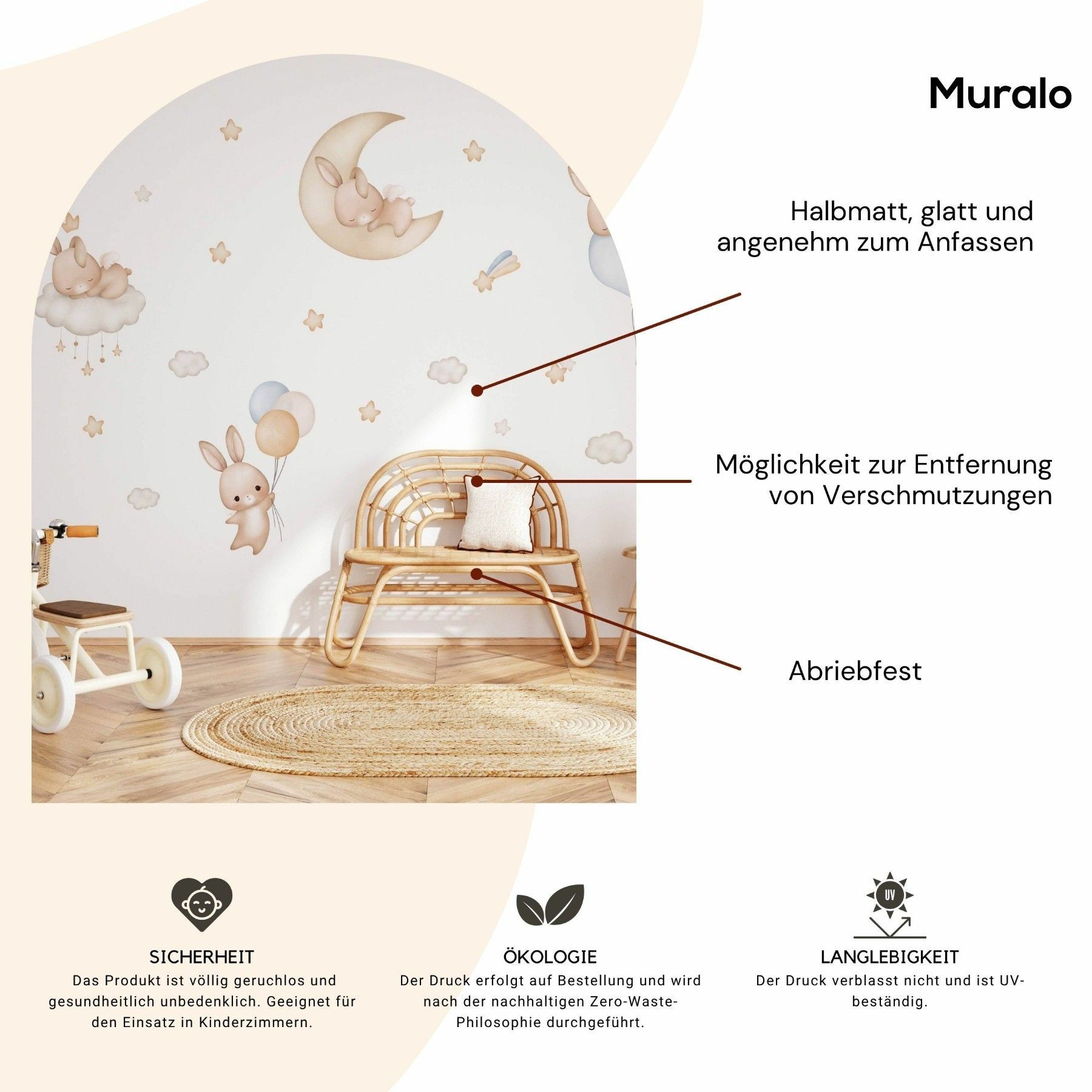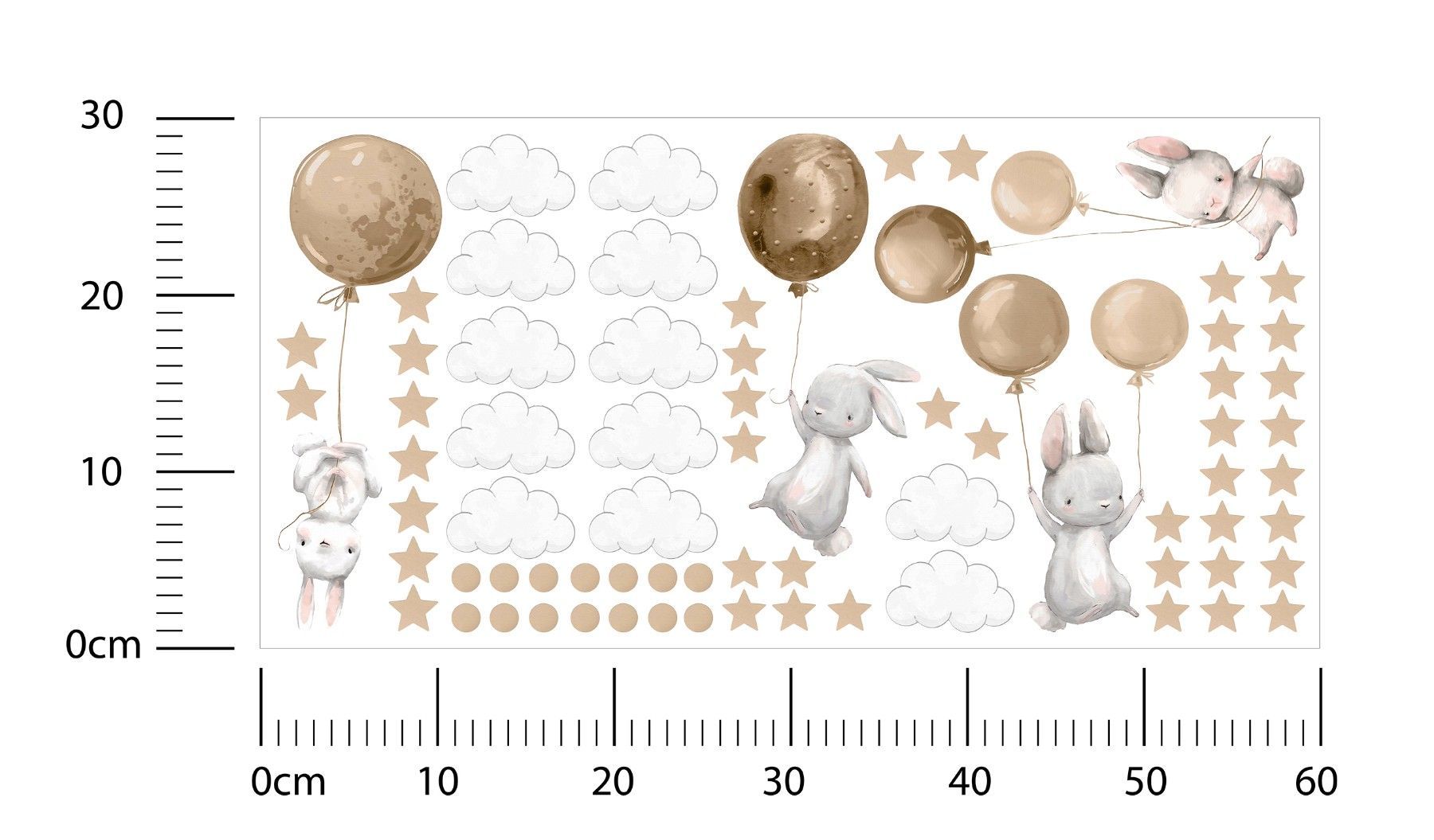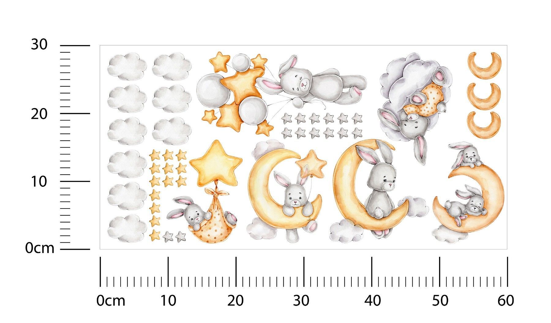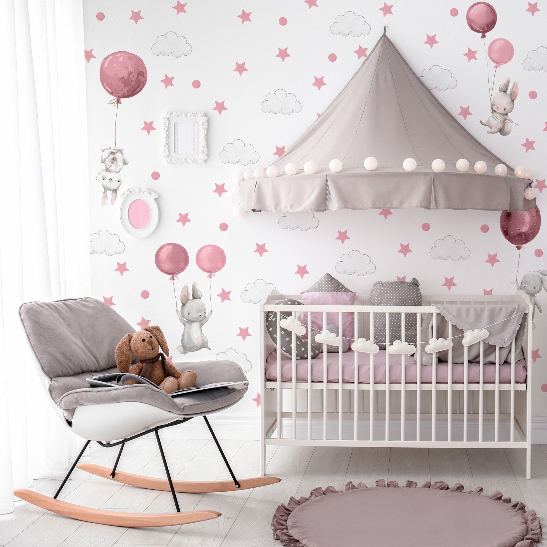Muralo Aufkleber Set für Kinderzimmer Kaninchen Wolken Sterne Wandstickers für Kinder