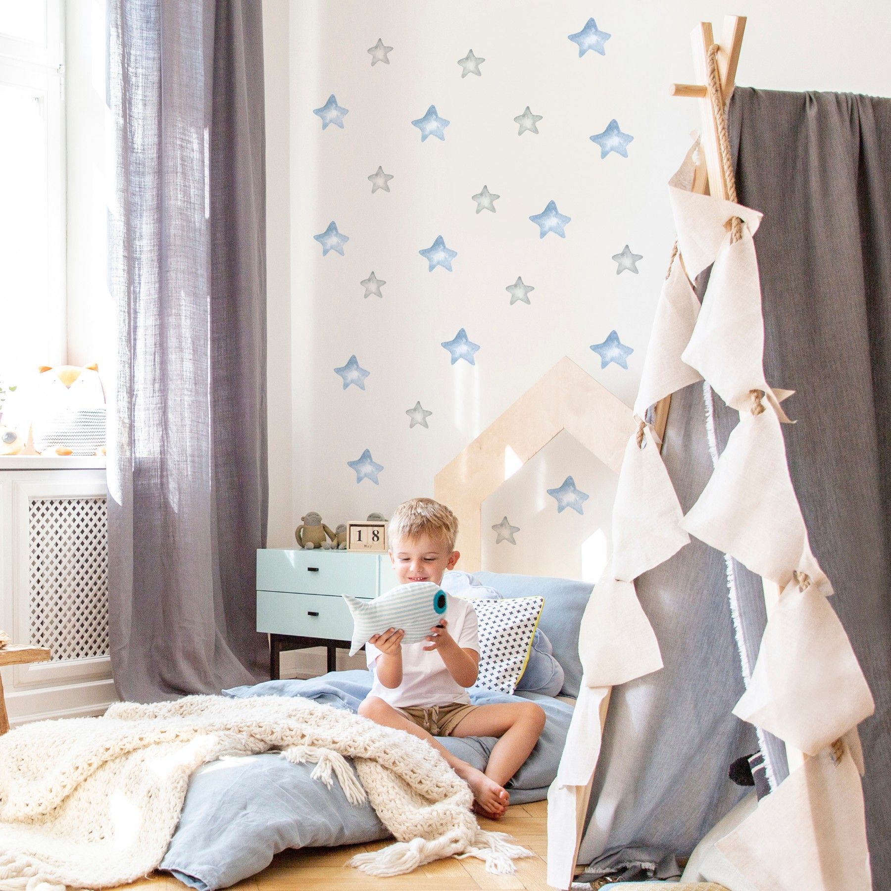 Muralo Aufkleber Wandsticker für Kinderzimmer bunte STERNE Wanddeko Wandtattoo