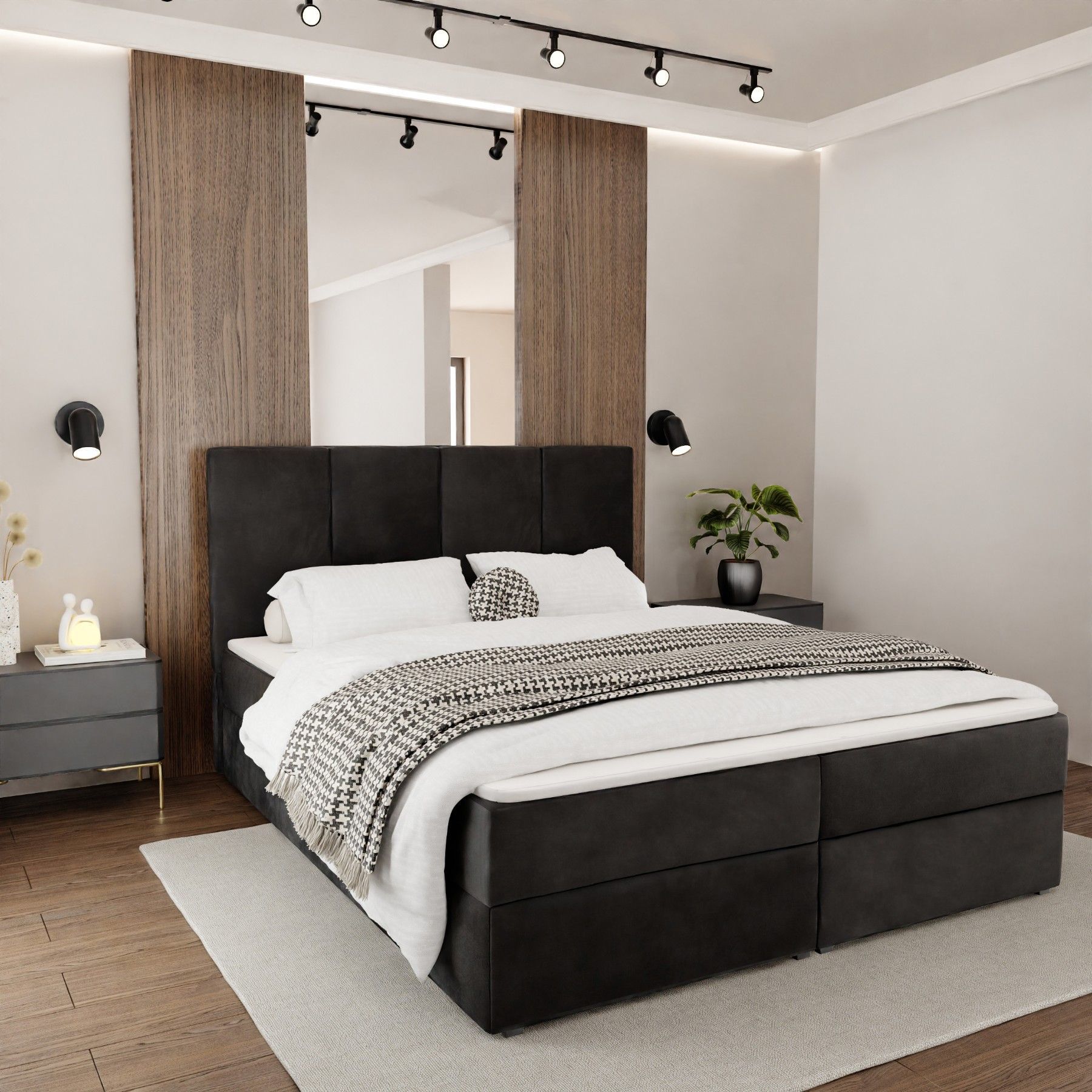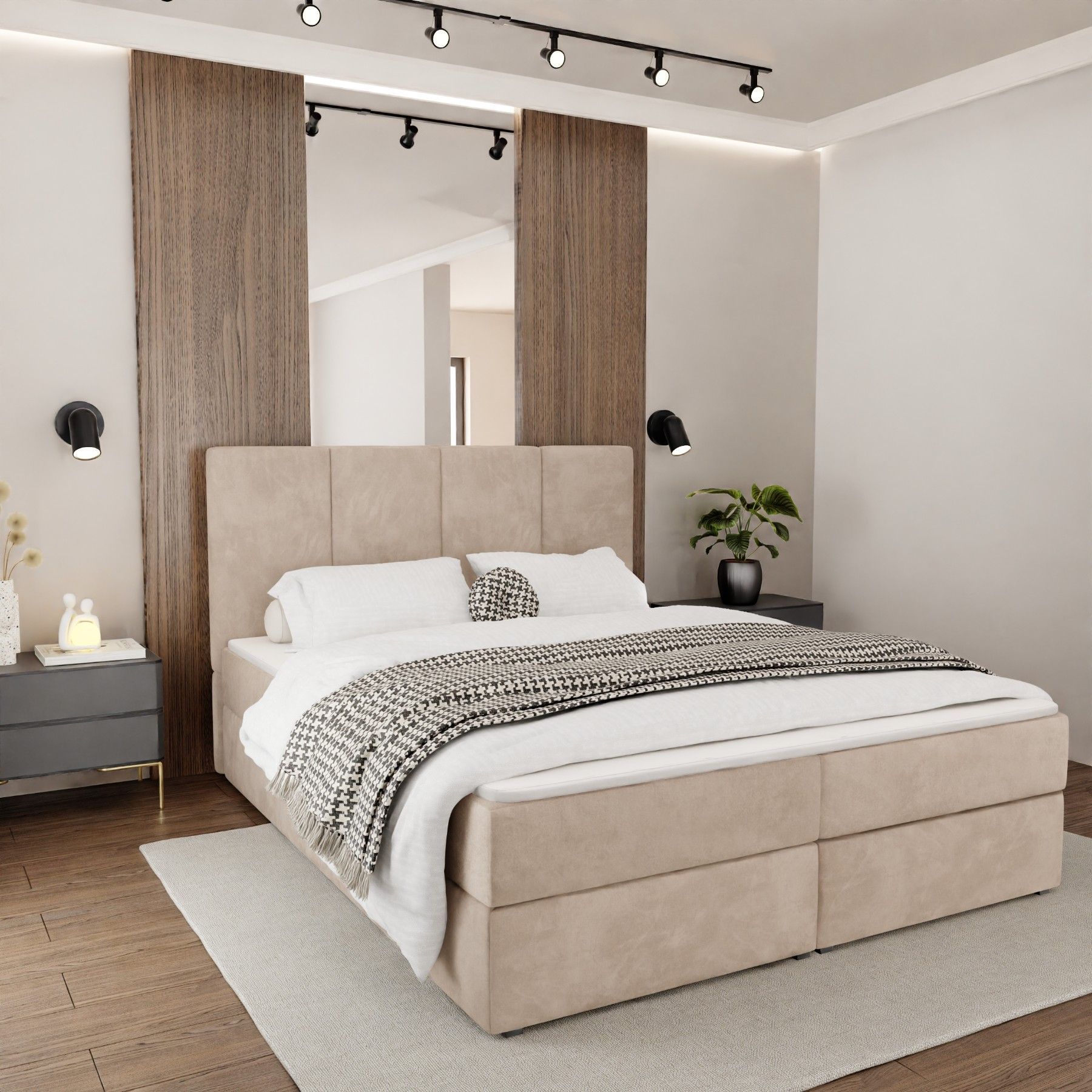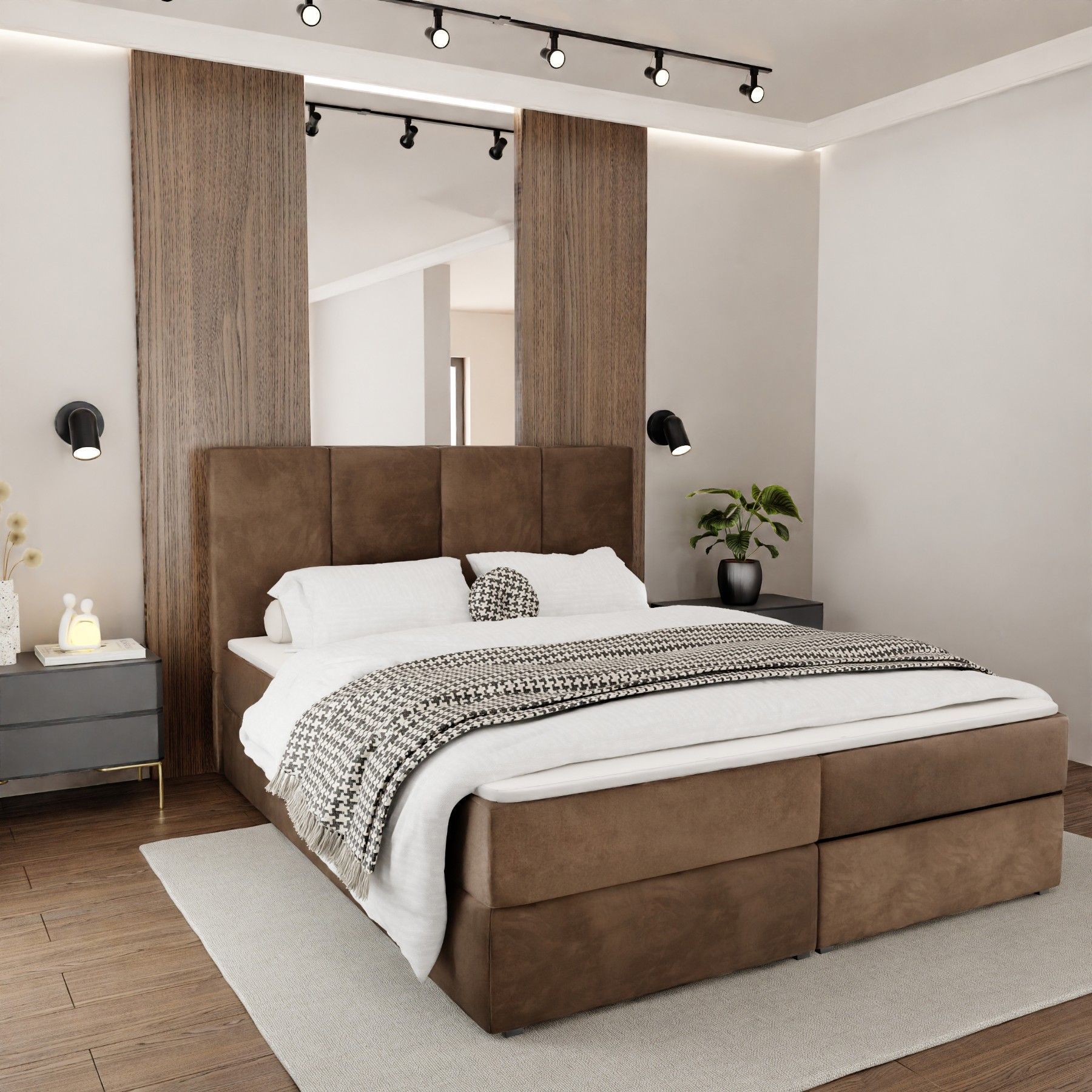Muralo Kontinentalbett für Schlafzimmer Polsterbett mit zwei Bettkasten Doppelbett