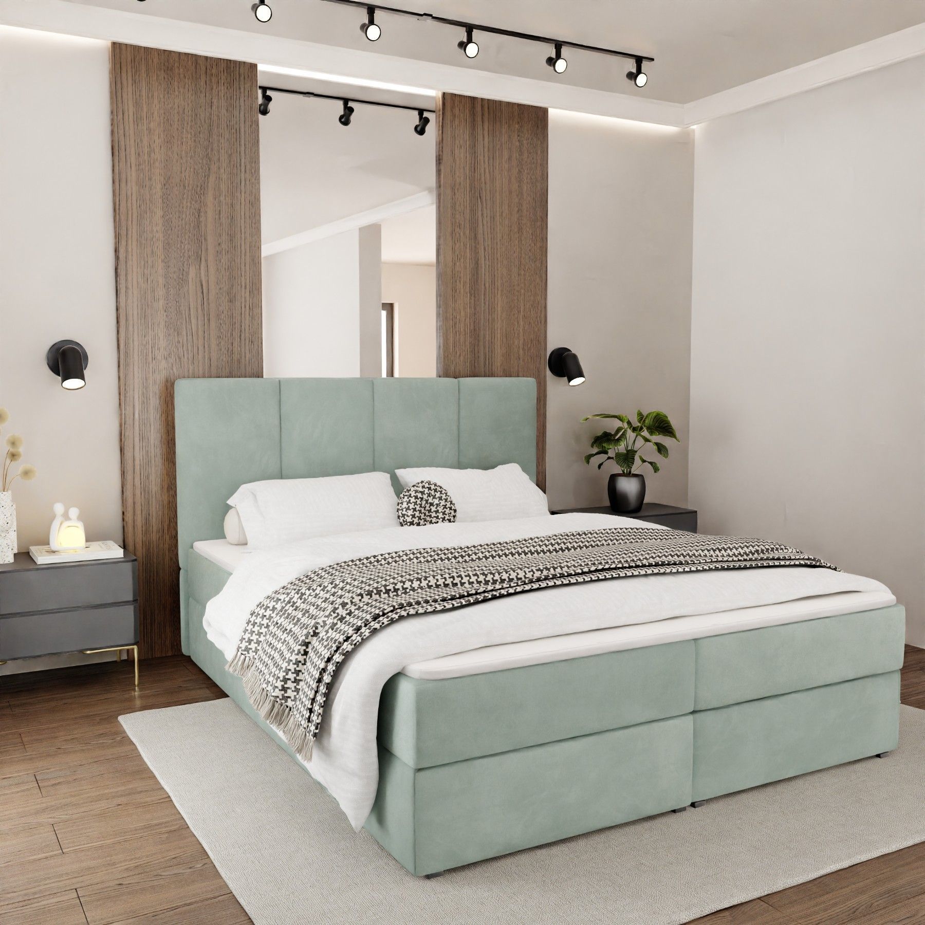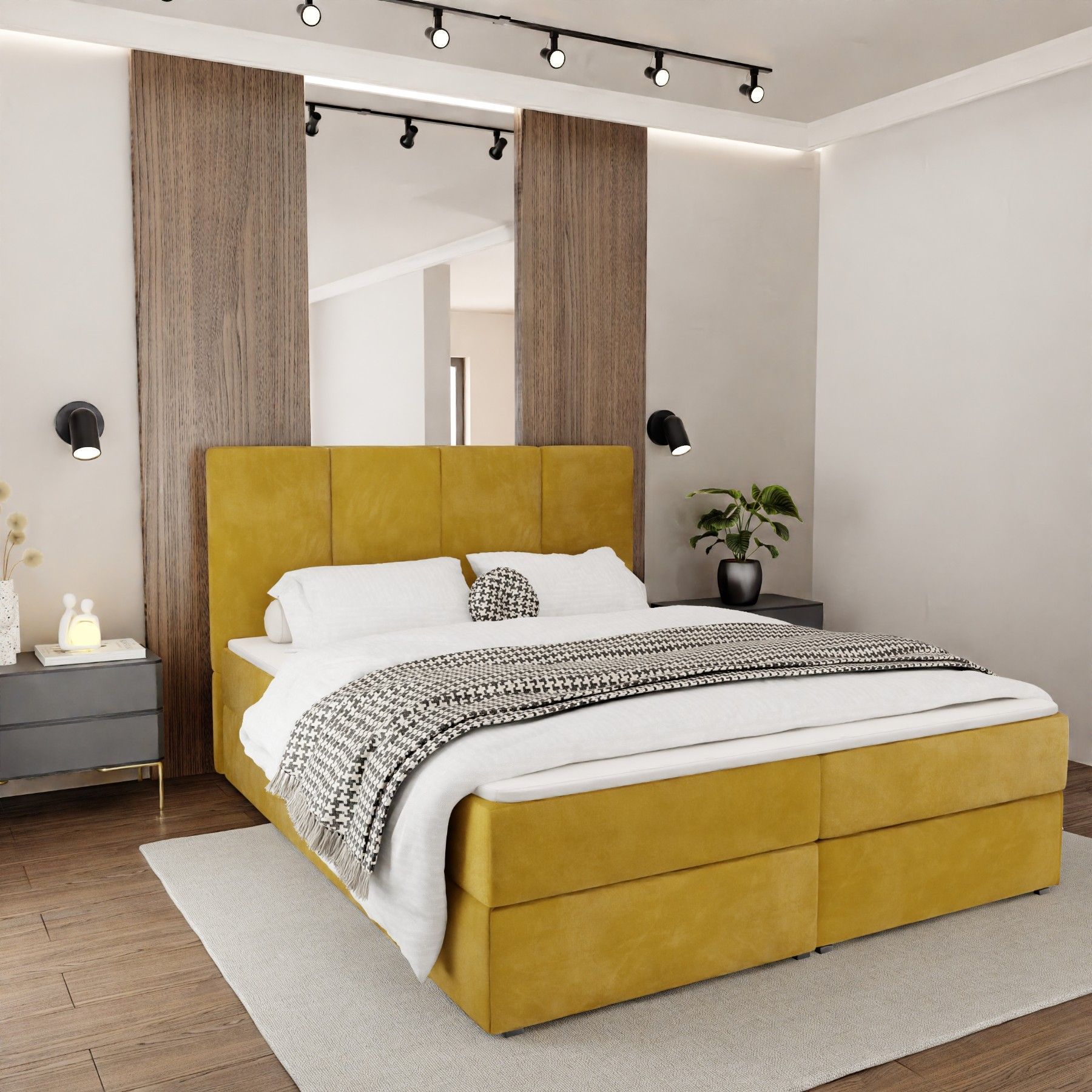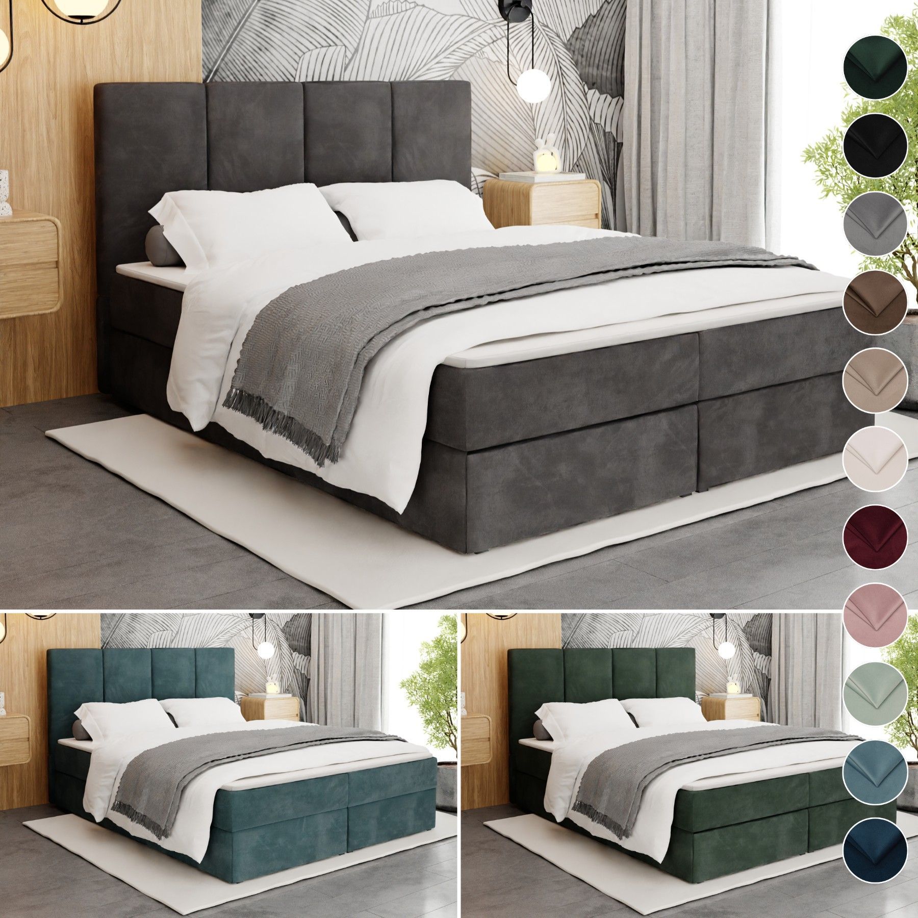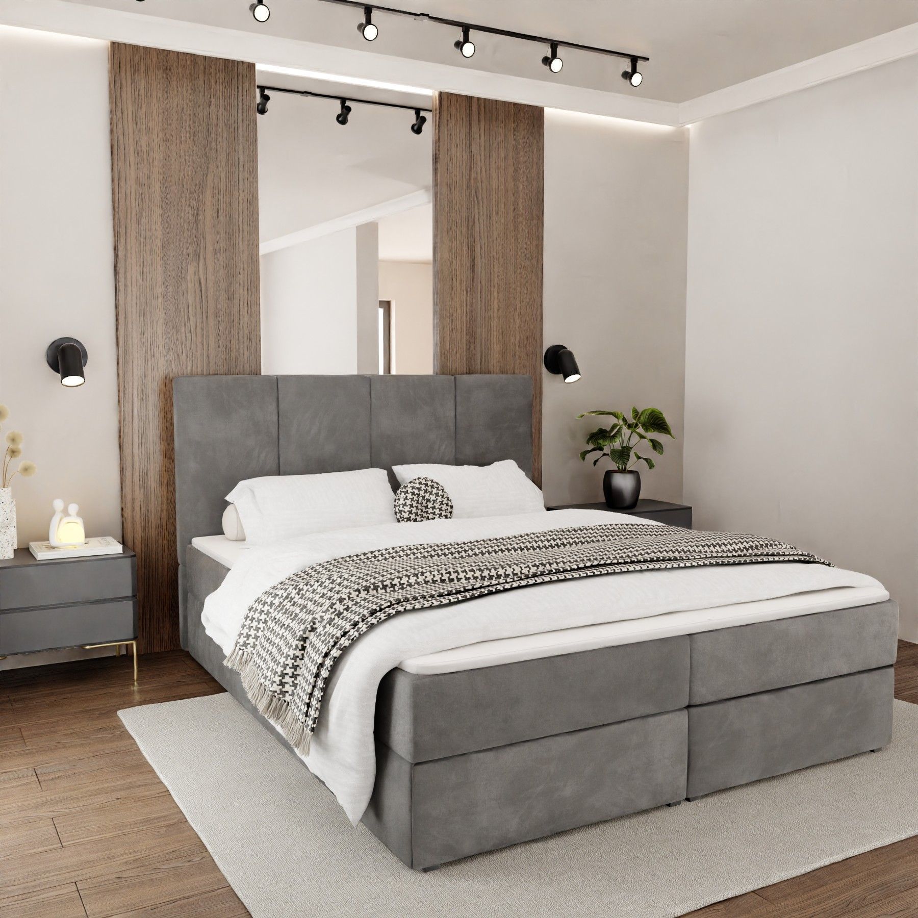 Muralo Kontinentalbett für Schlafzimmer Polsterbett mit zwei Bettkasten Doppelbett