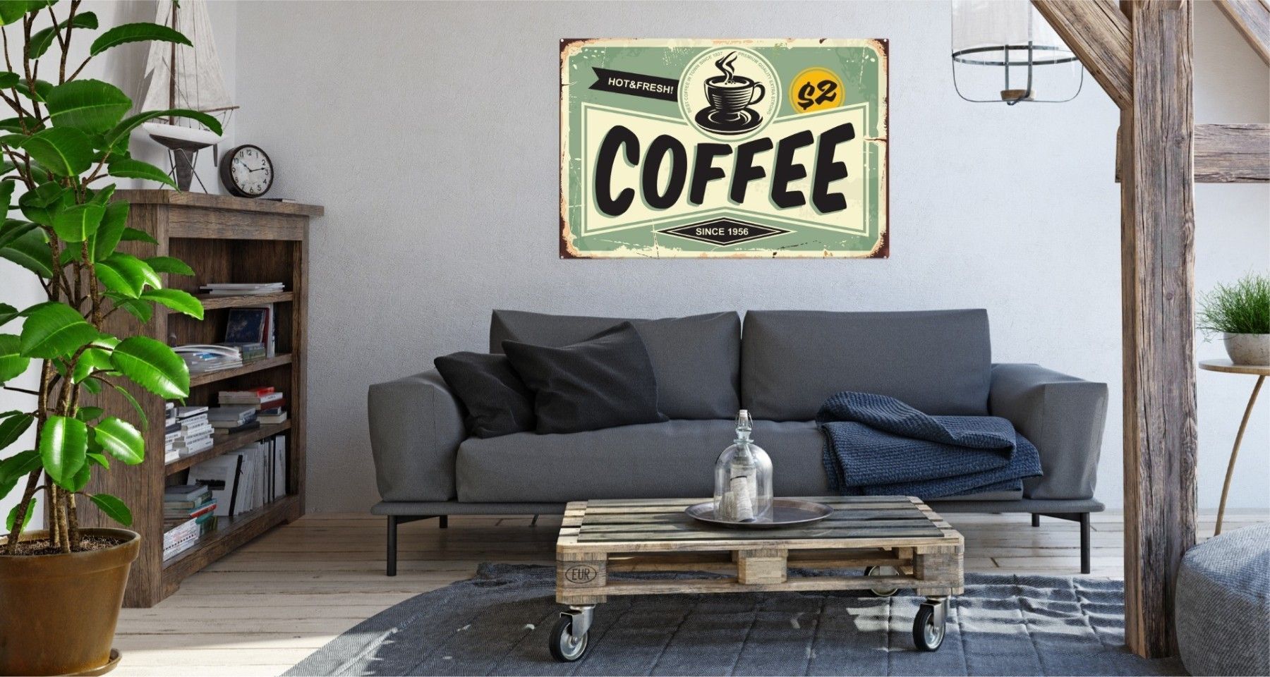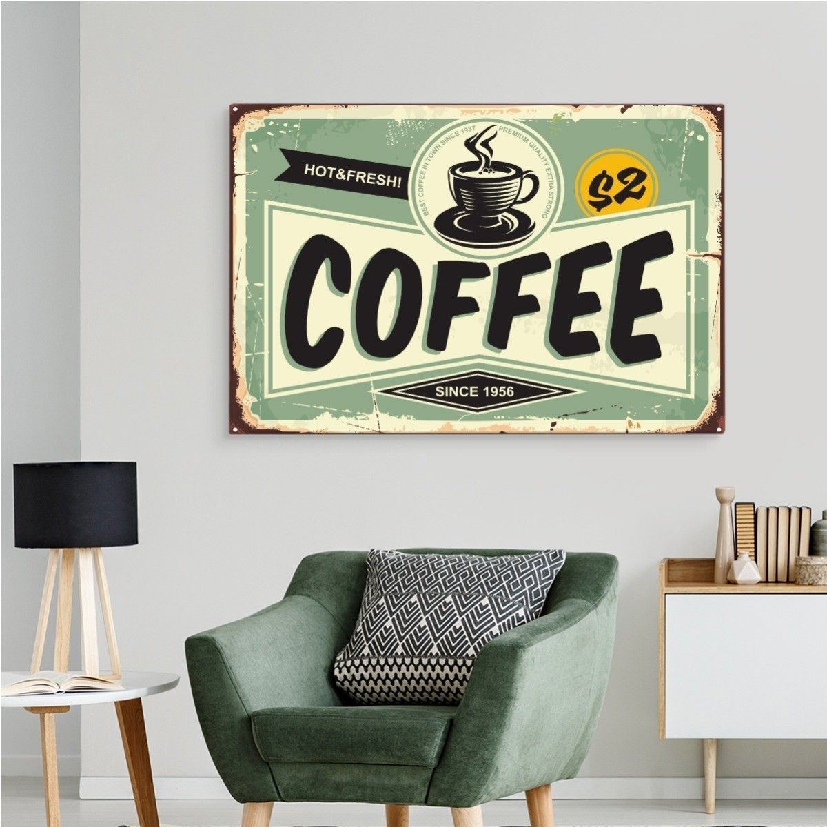 Muralo Leinwandbild CANVAS Kaffeetasse Aufschriften Retro Stil