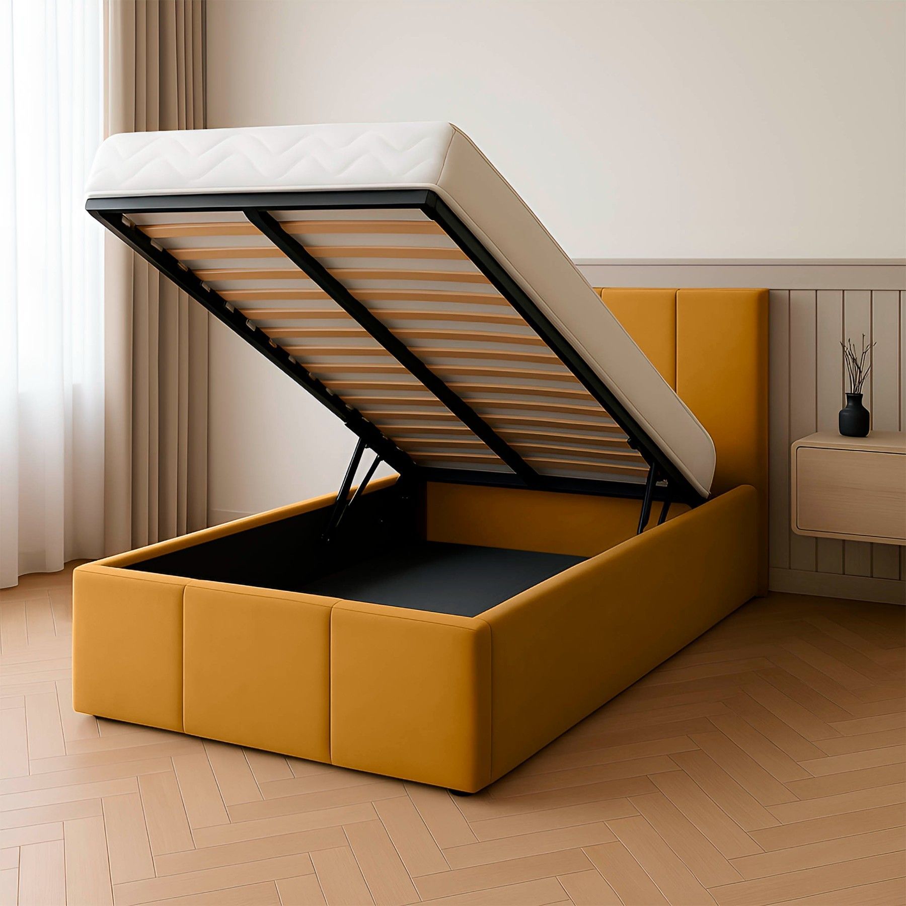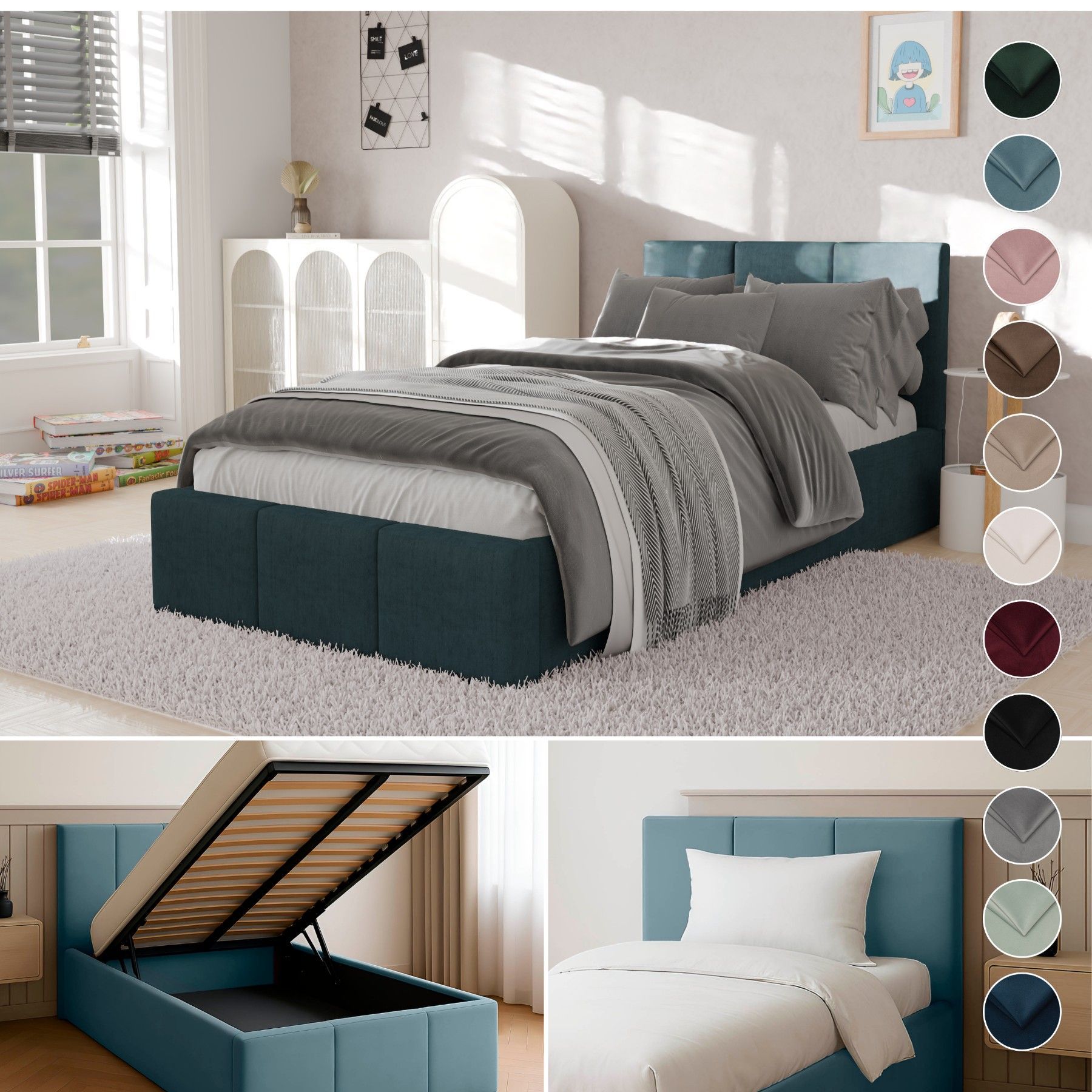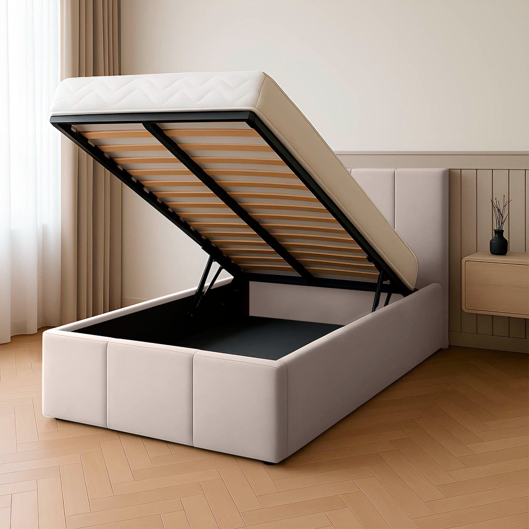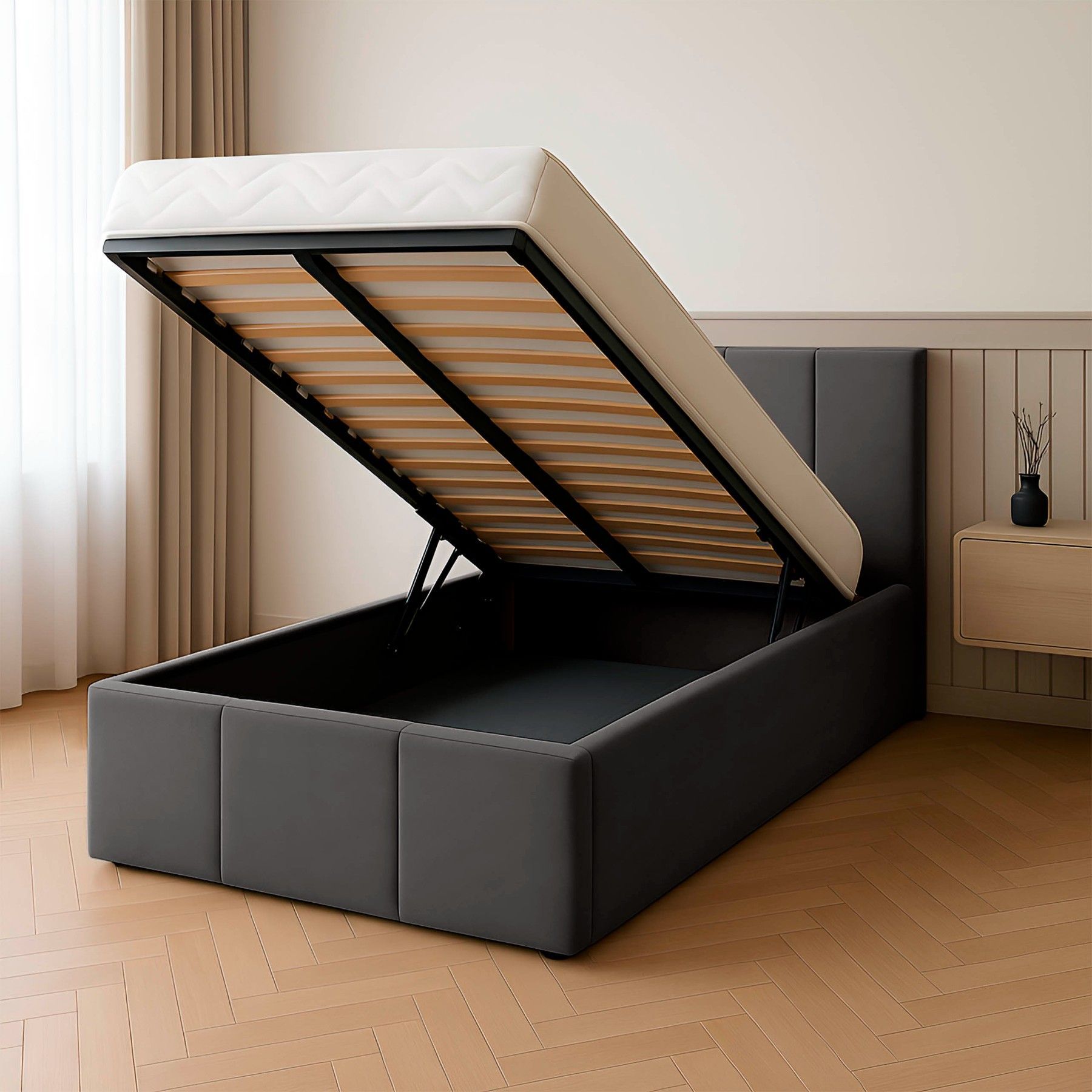 Muralo Polsterbett Einzelbett mit Kopfteil Bett mit Stauraum und Gasdruckfeder