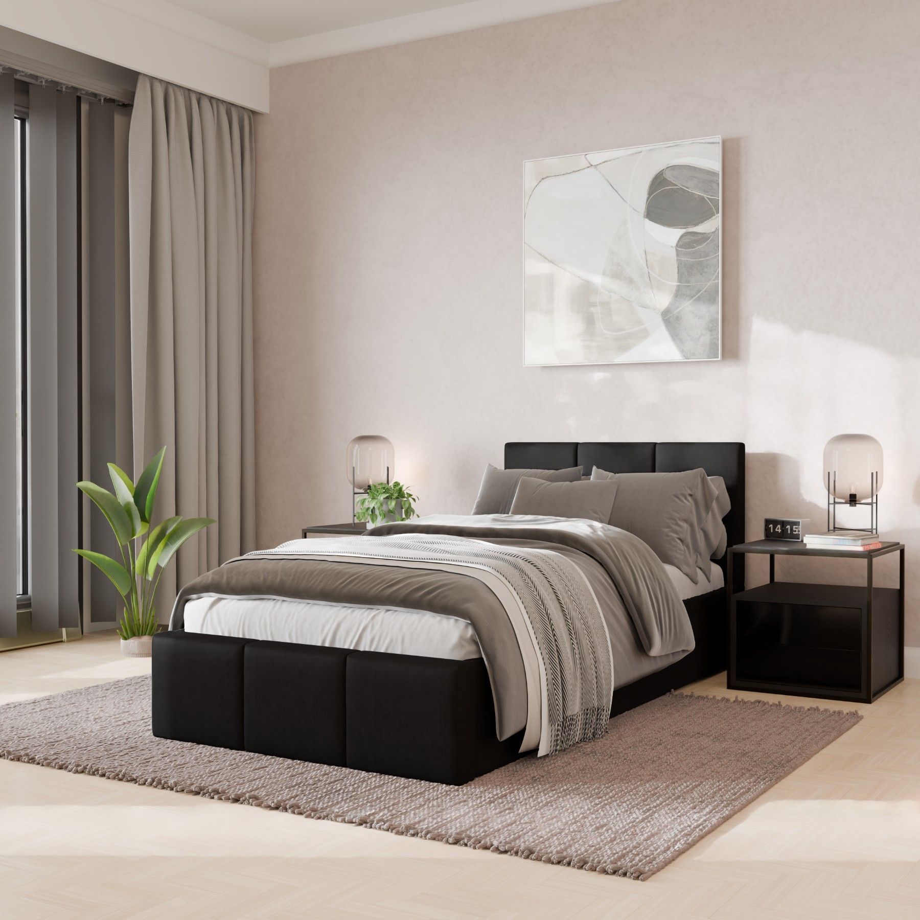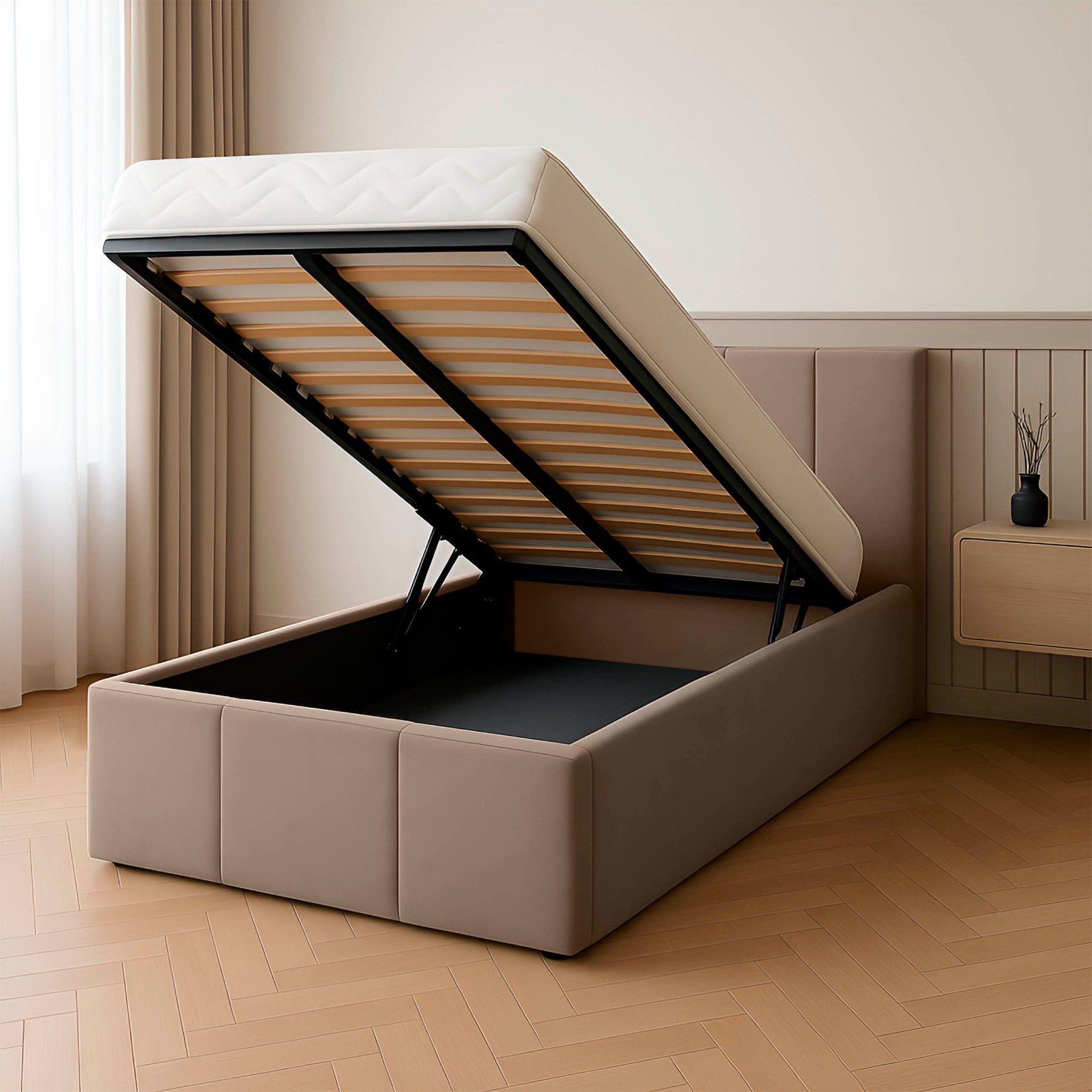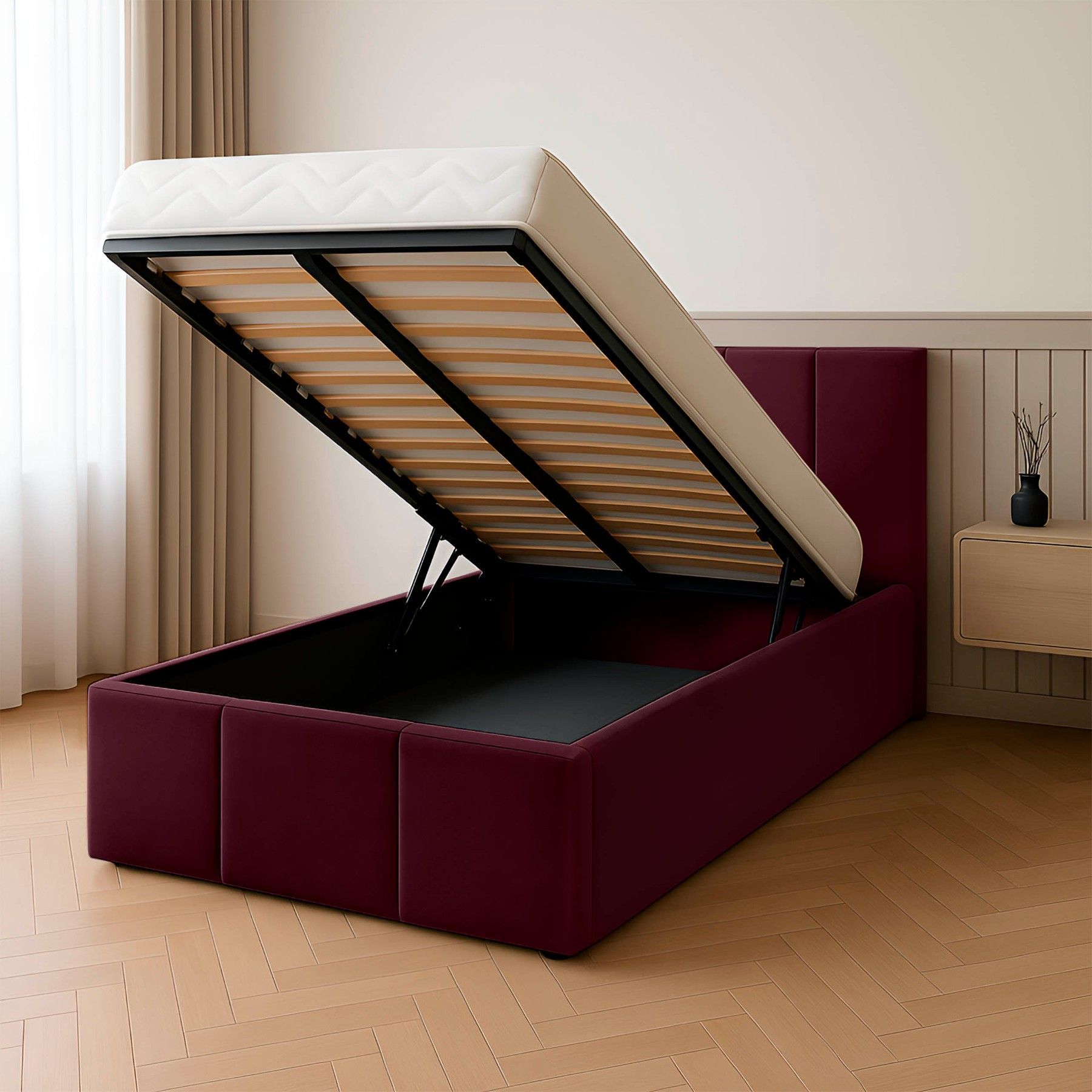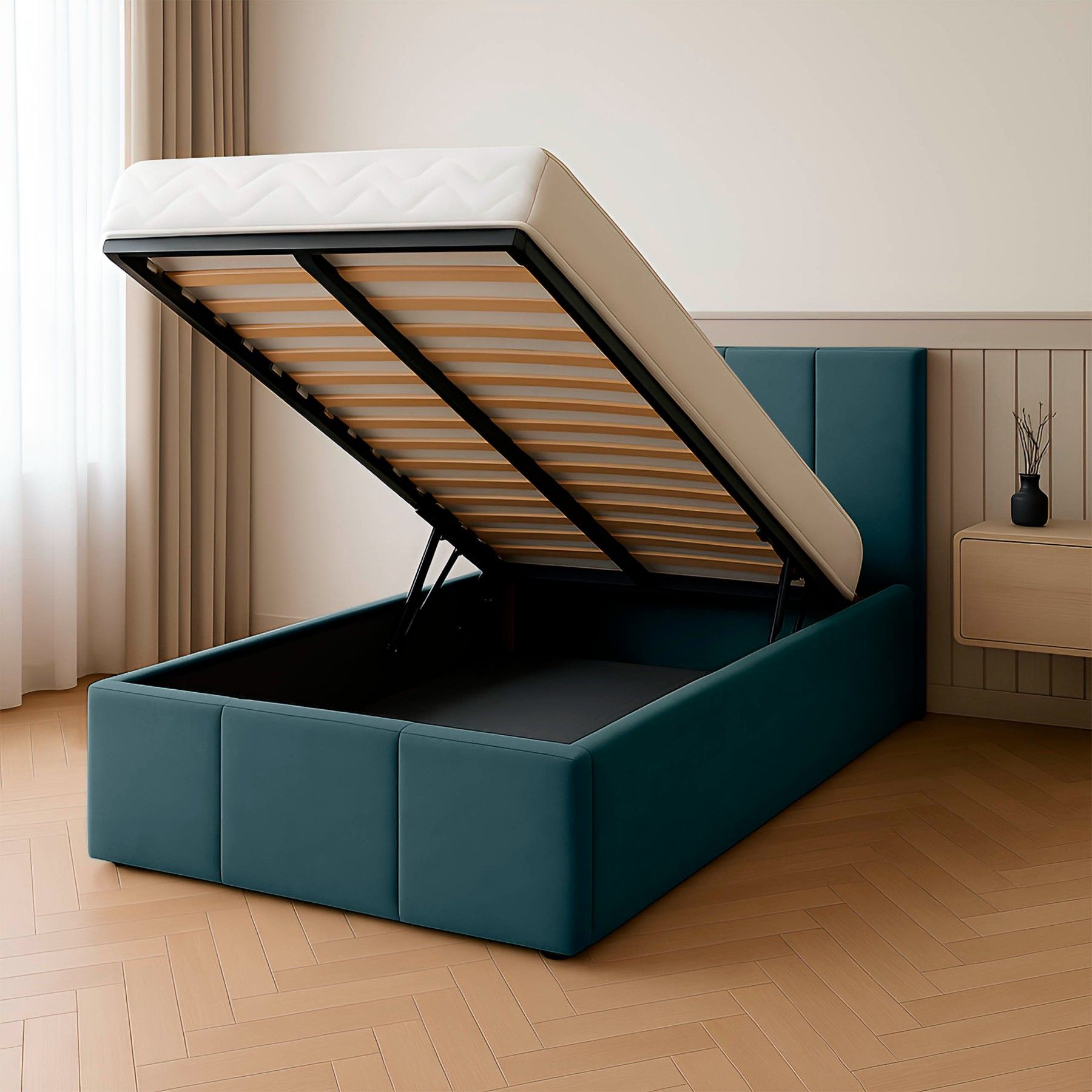 Muralo Polsterbett Einzelbett mit Kopfteil Bett mit Stauraum und Gasdruckfeder