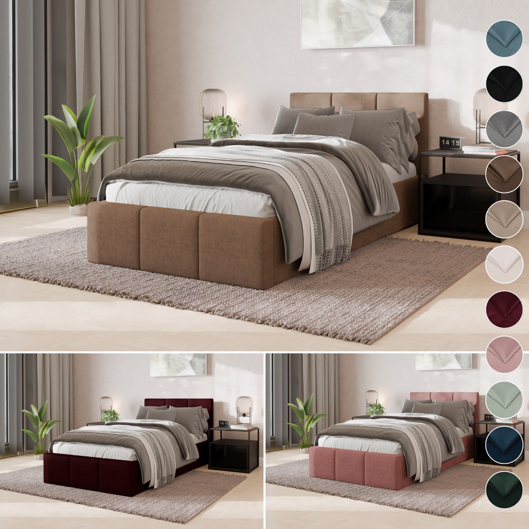 Muralo Polsterbett für Schlafzimmer Einzelbett mit Kopfteil Bett mit Stauraum