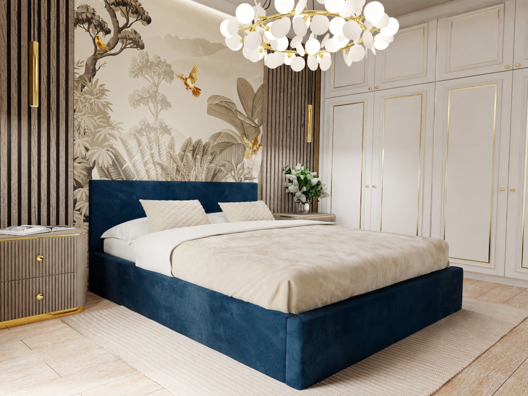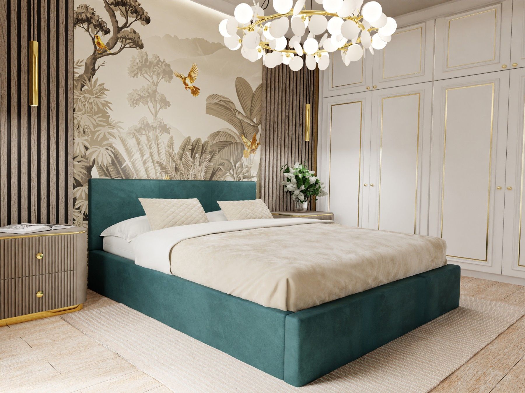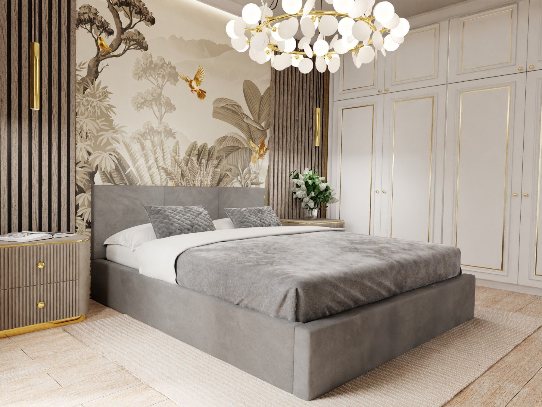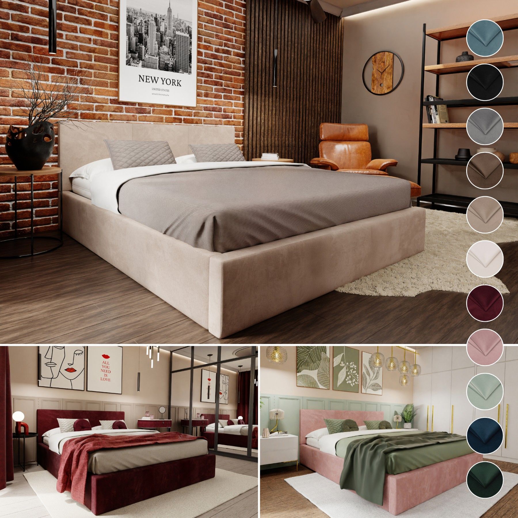 Muralo Polsterbett mit Bettkaste Doppelbett für Schlafzimmer Bett mit Polsterkopfteil