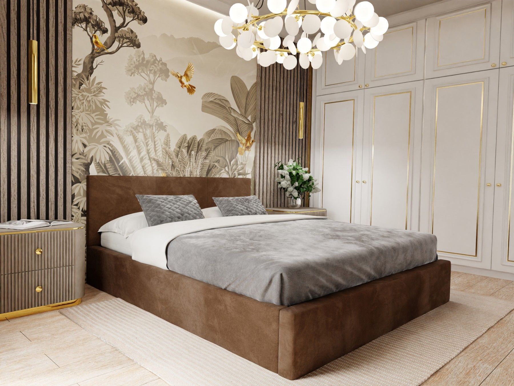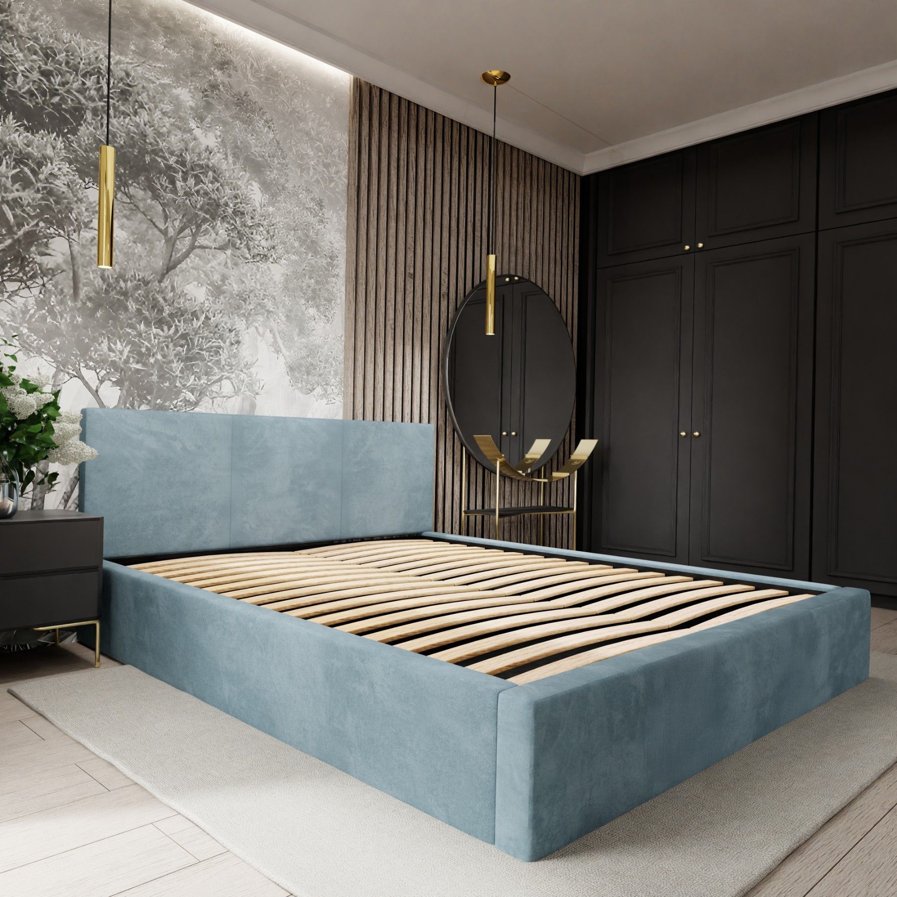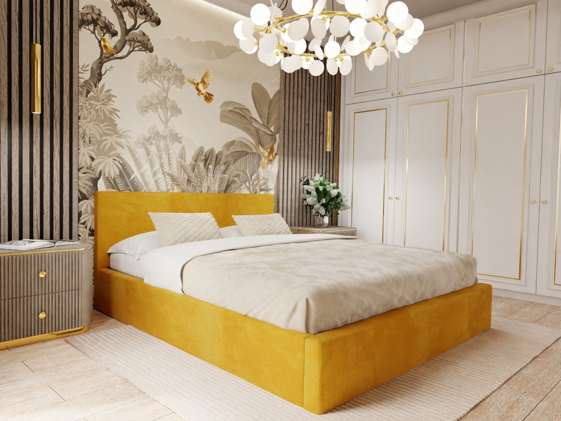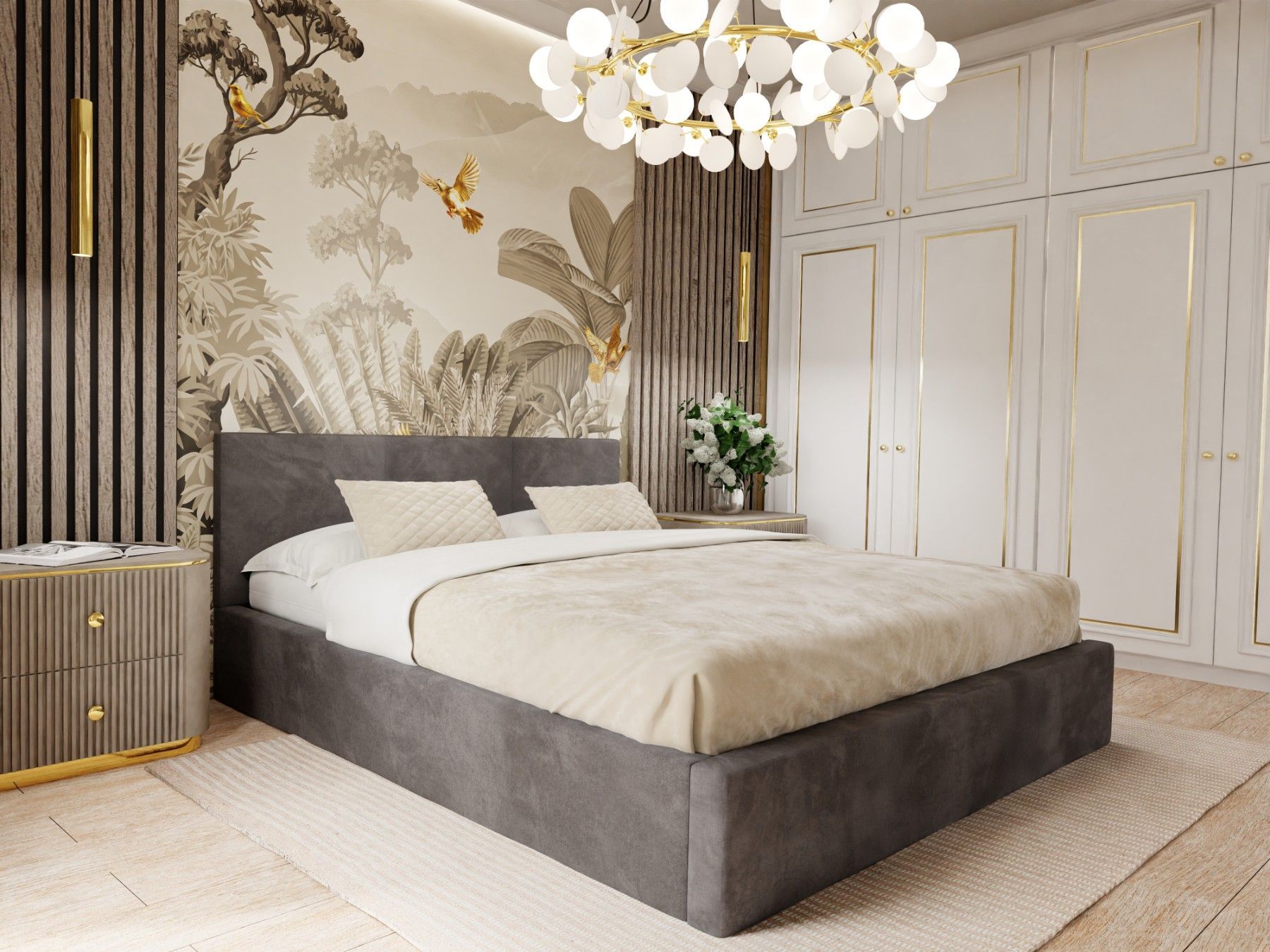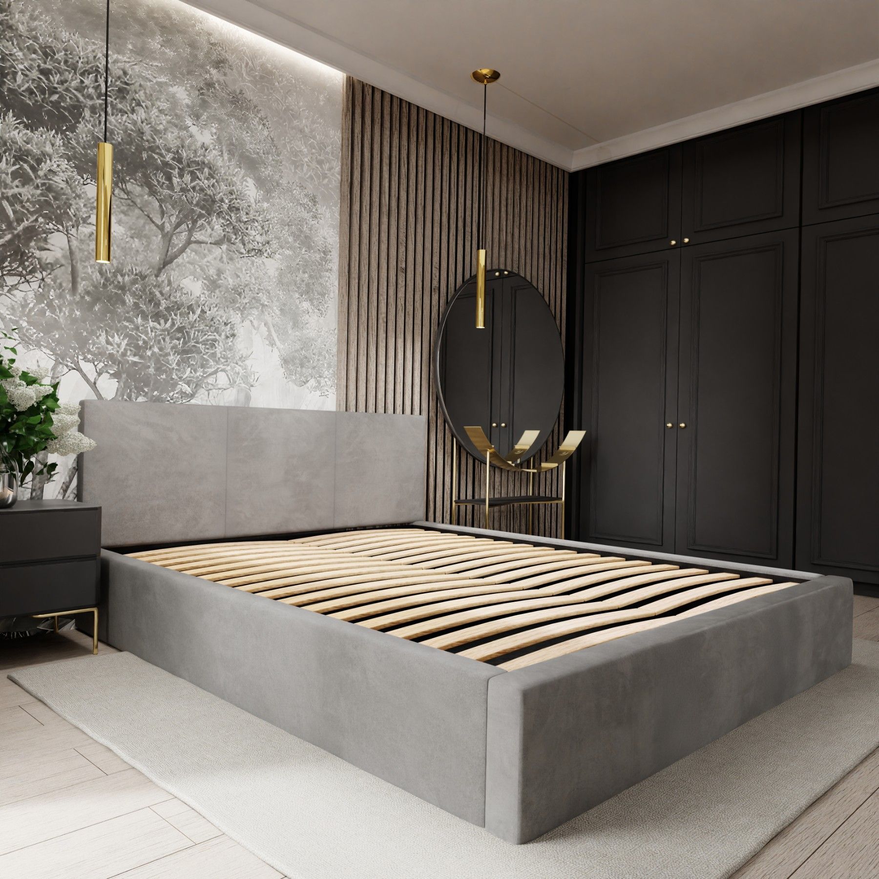 Muralo Polsterbett mit Bettkaste Doppelbett für Schlafzimmer Bett mit Polsterkopfteil