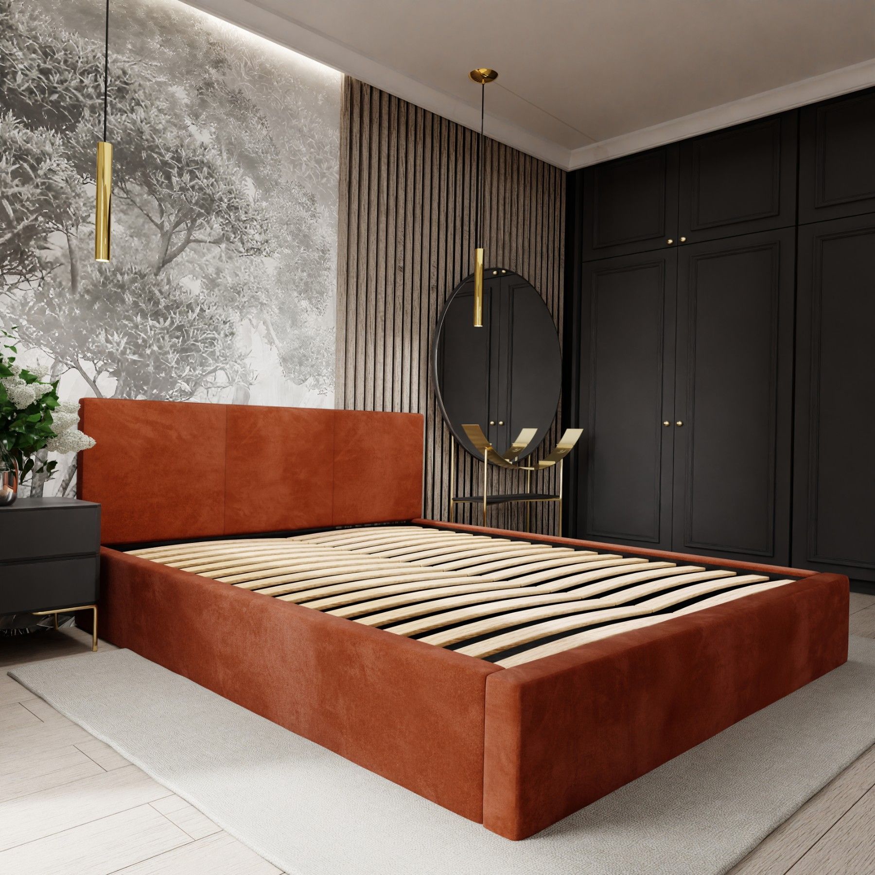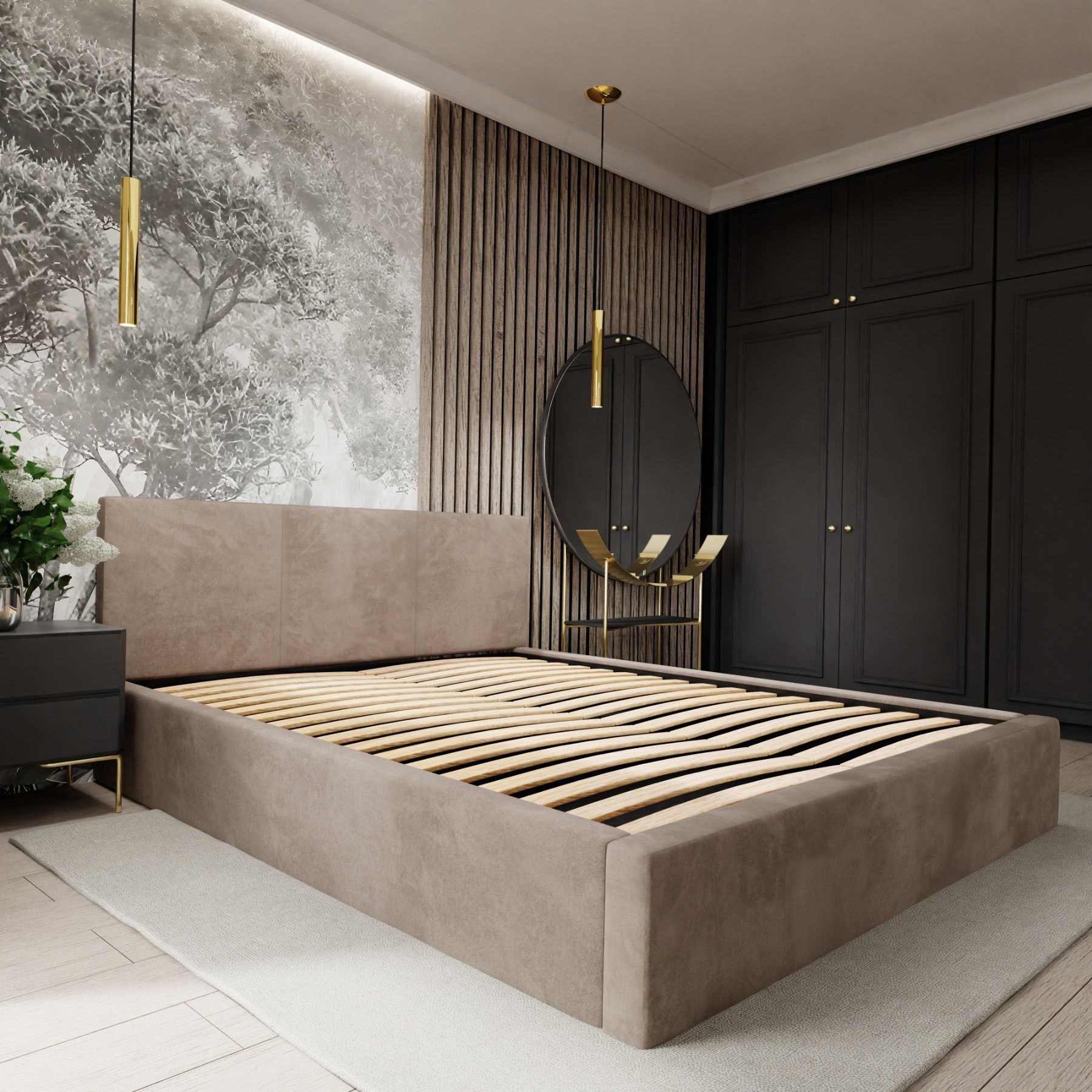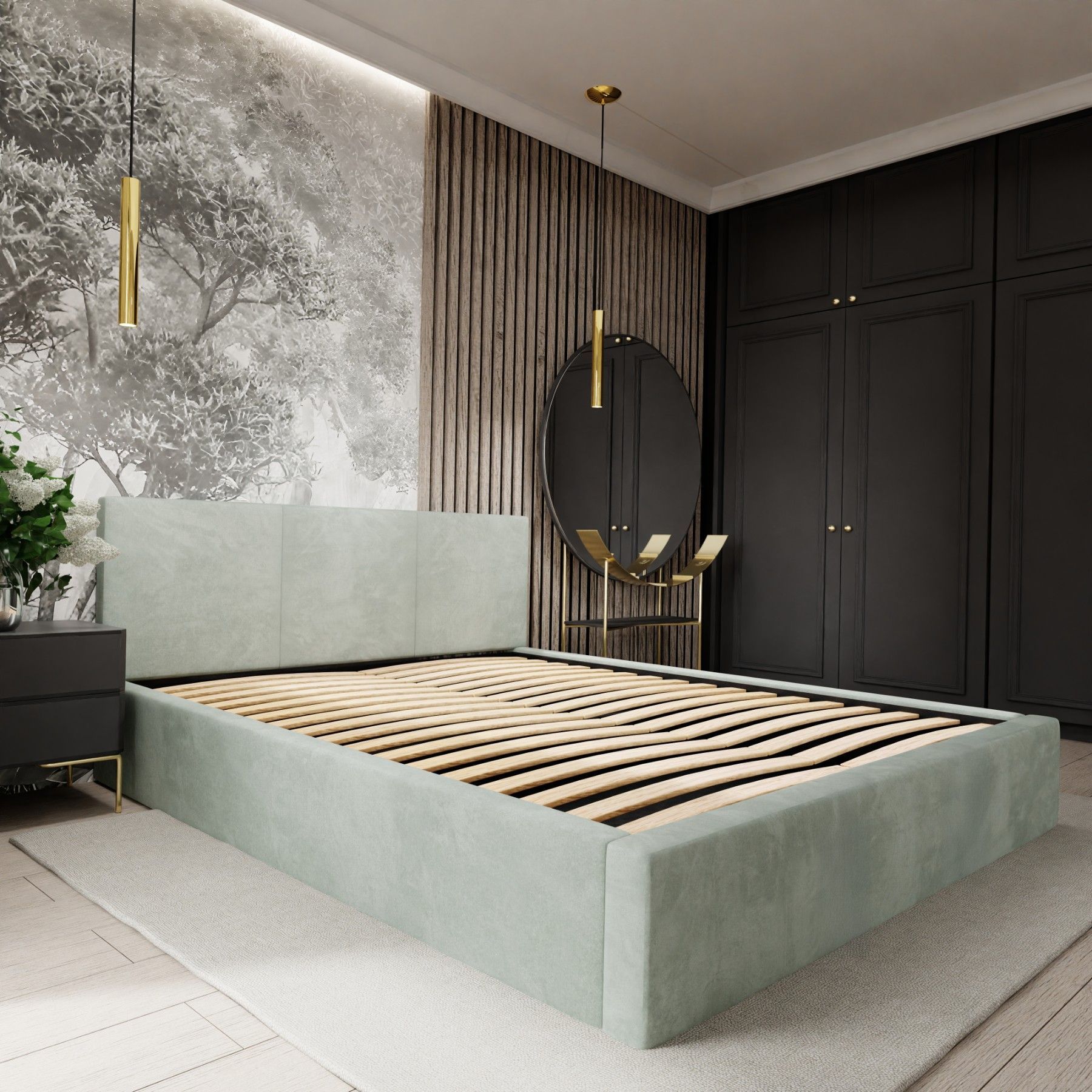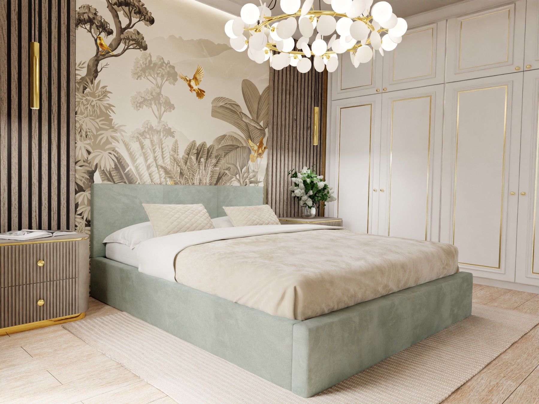 Muralo Polsterbett mit Bettkaste Doppelbett für Schlafzimmer Bett mit Polsterkopfteil