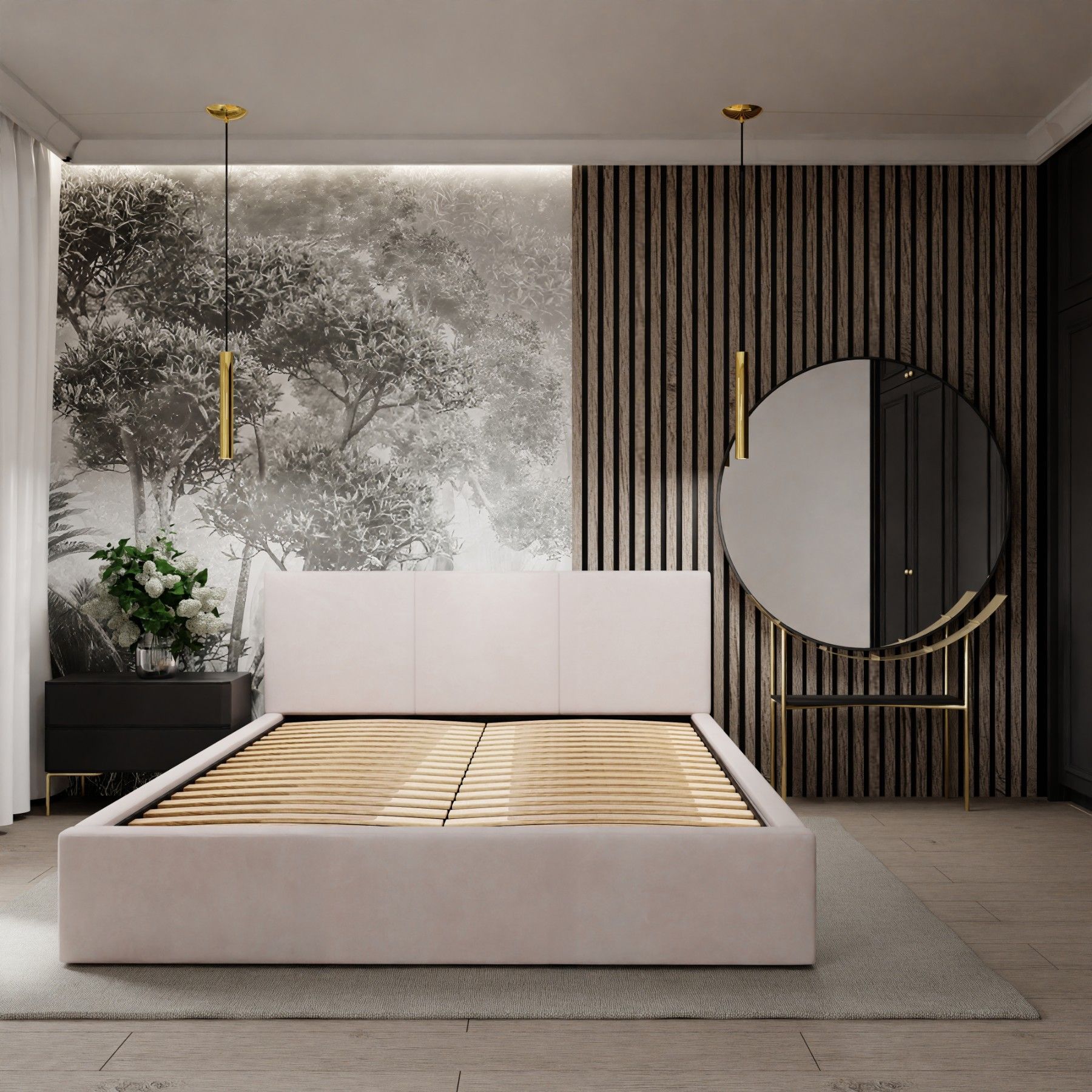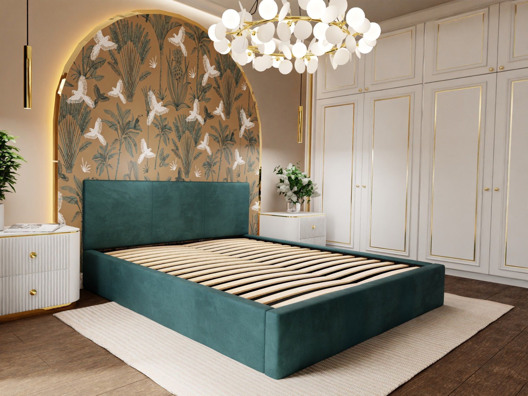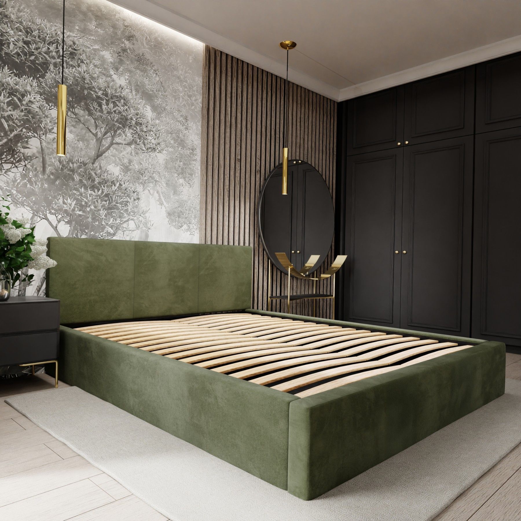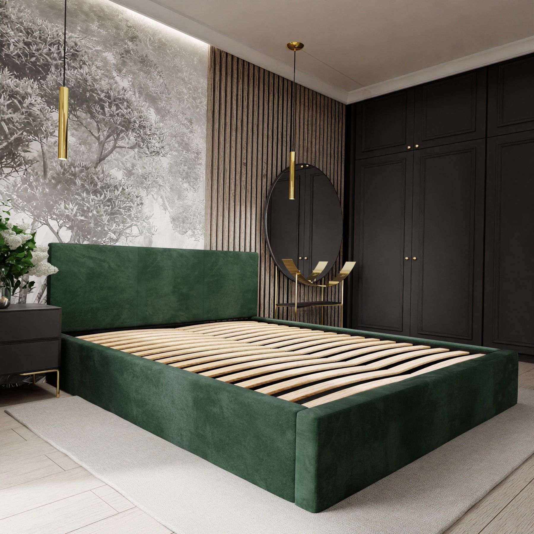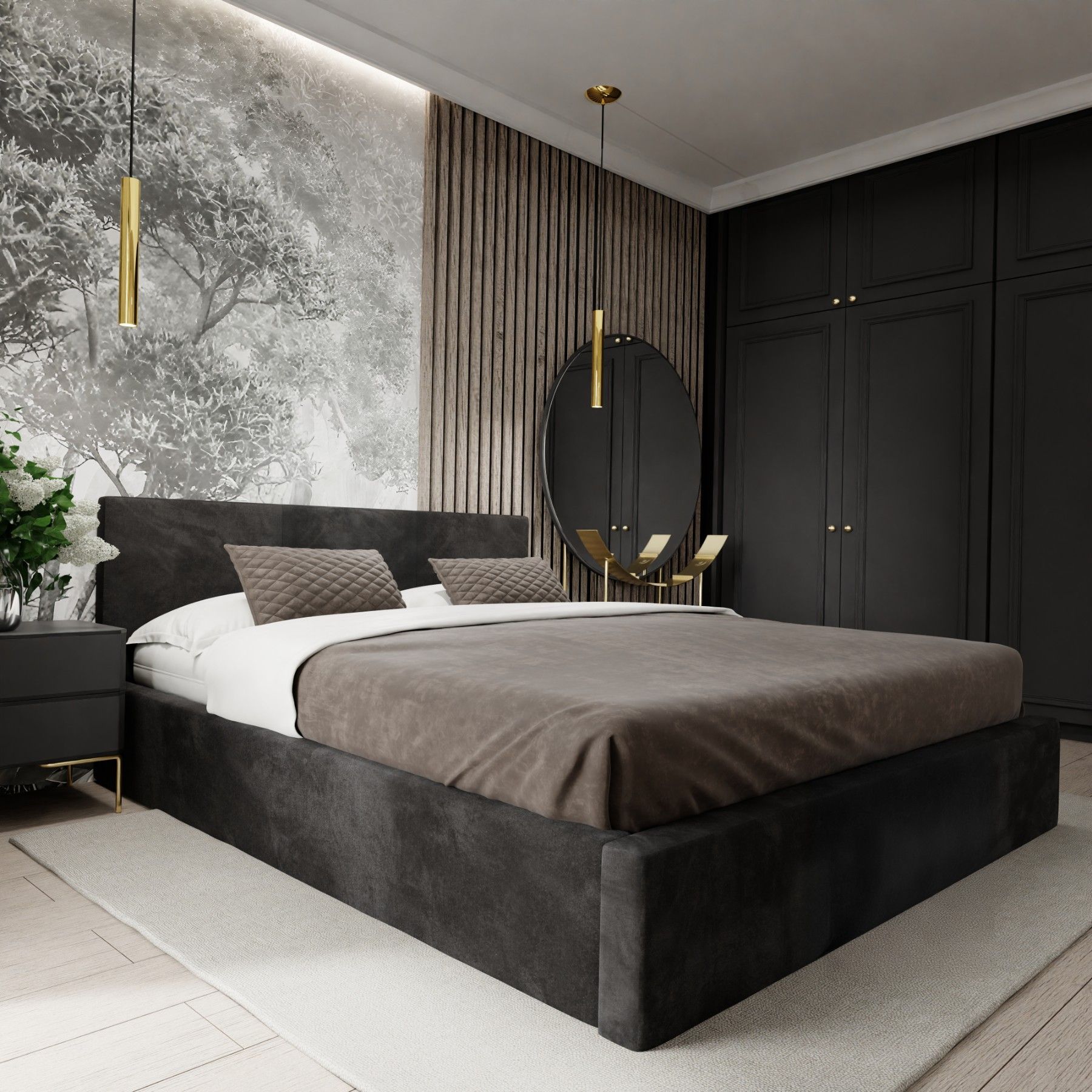 Muralo Polsterbett mit Bettkaste Doppelbett für Schlafzimmer Bett mit Polsterkopfteil