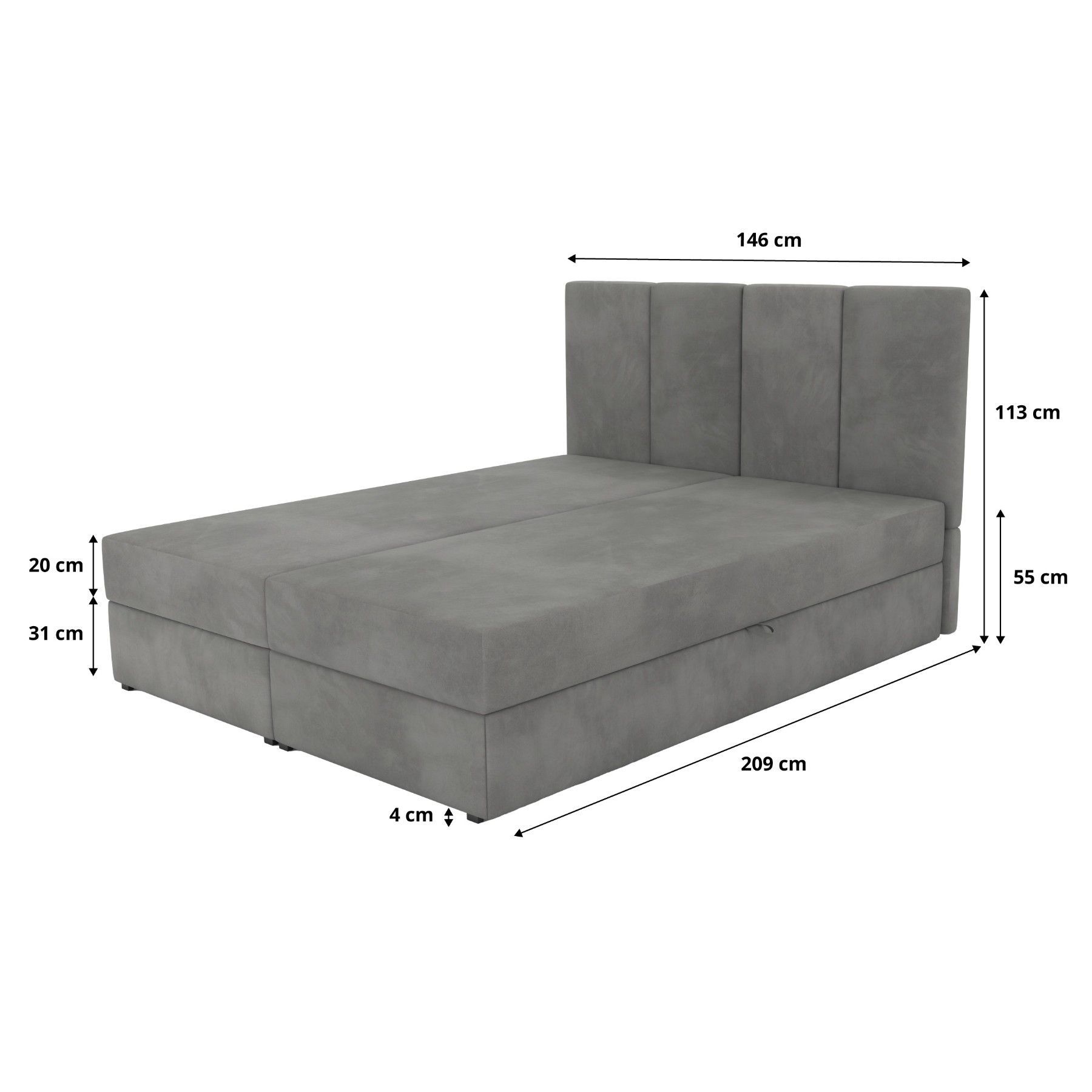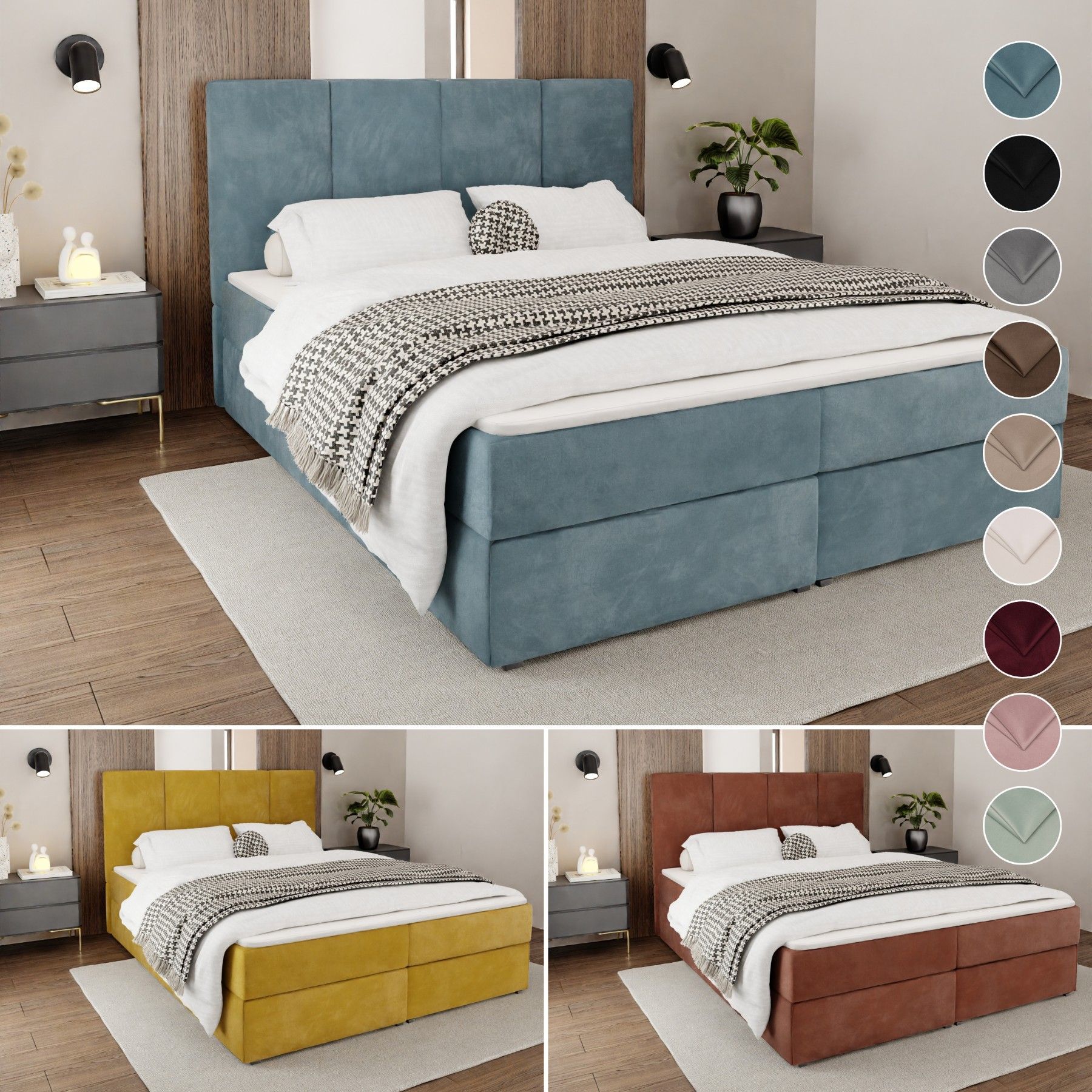 Muralo Polsterbett mit zwei Bettkasten Kontinentalbett für Schlafzimmer Doppelbett