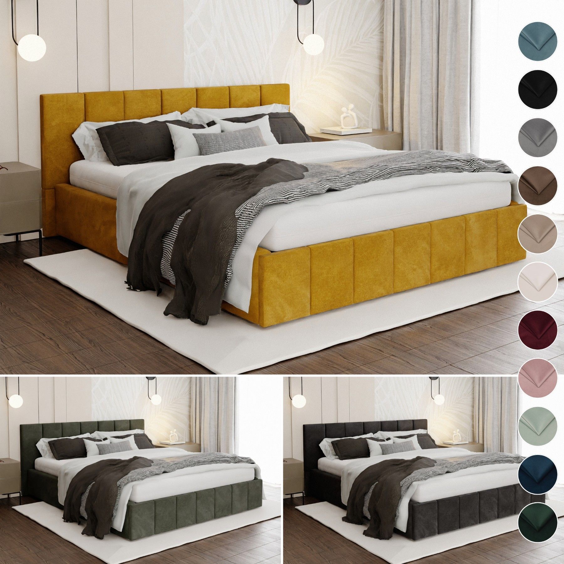 Muralo Polsterbett Premium mit Kopfteil Bett mit Bettkasten für Schlafzimmer