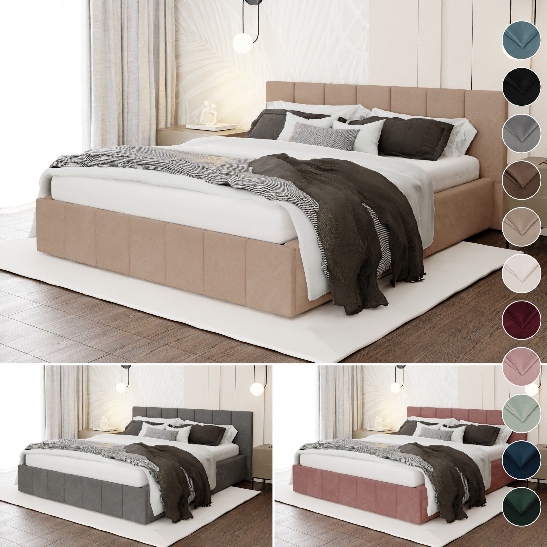 Muralo Polsterbett Premium mit Kopfteil Bett mit Stauraum für Schlafzimmer