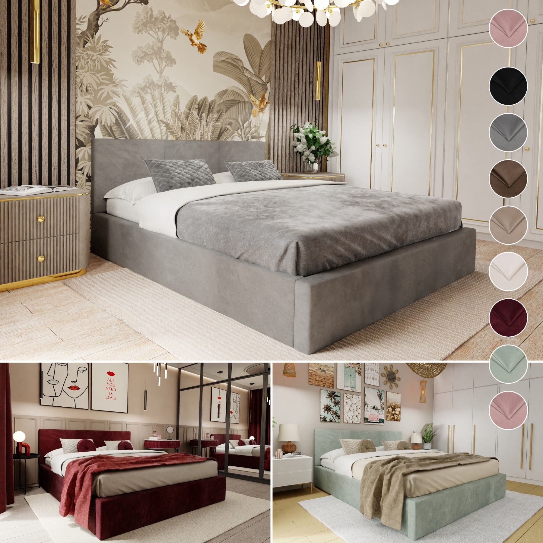 Muralo Polsterbett Stoffbett Bett mit Bettkaste Container Doppelbett für Schlafzimmer