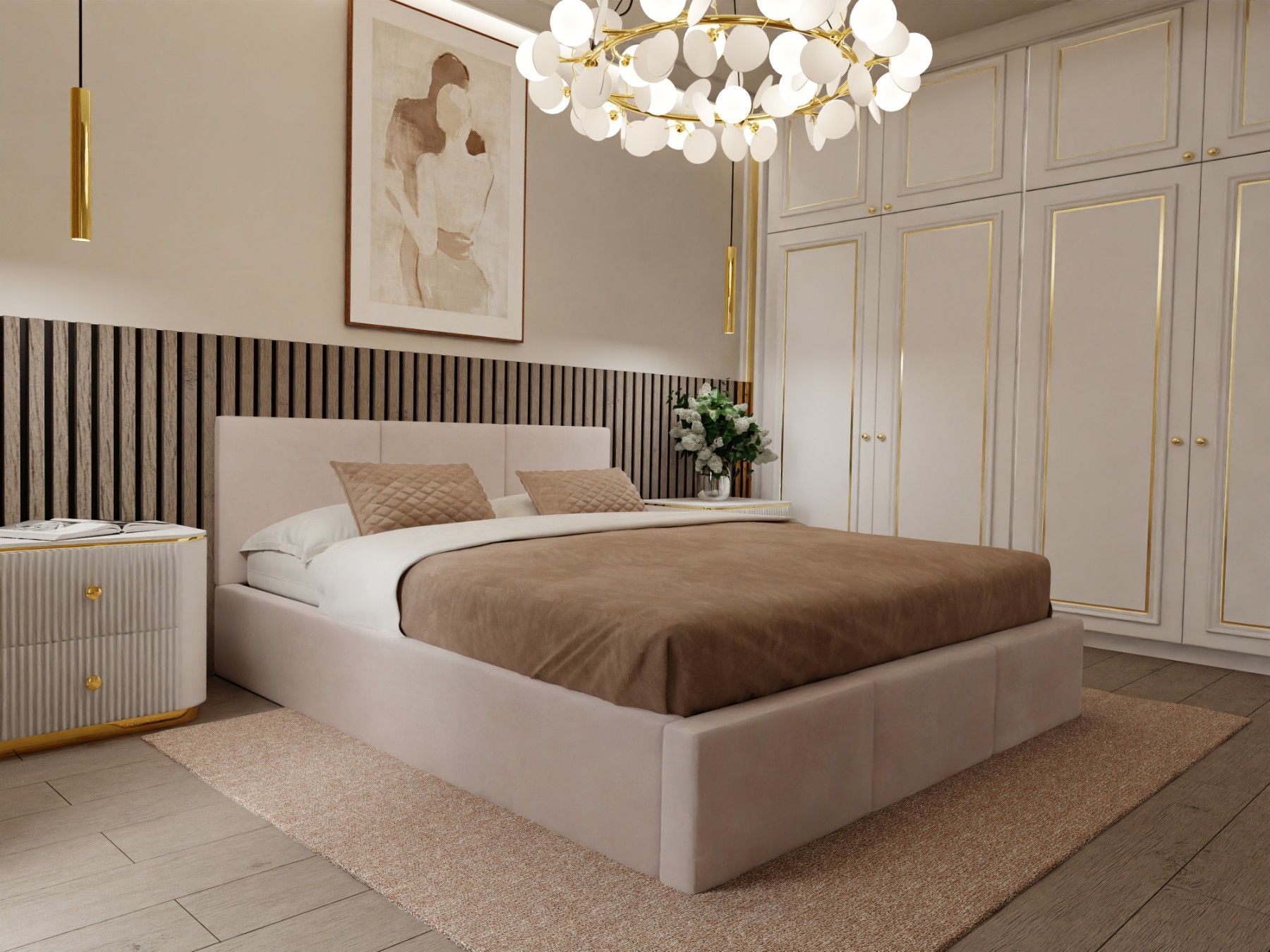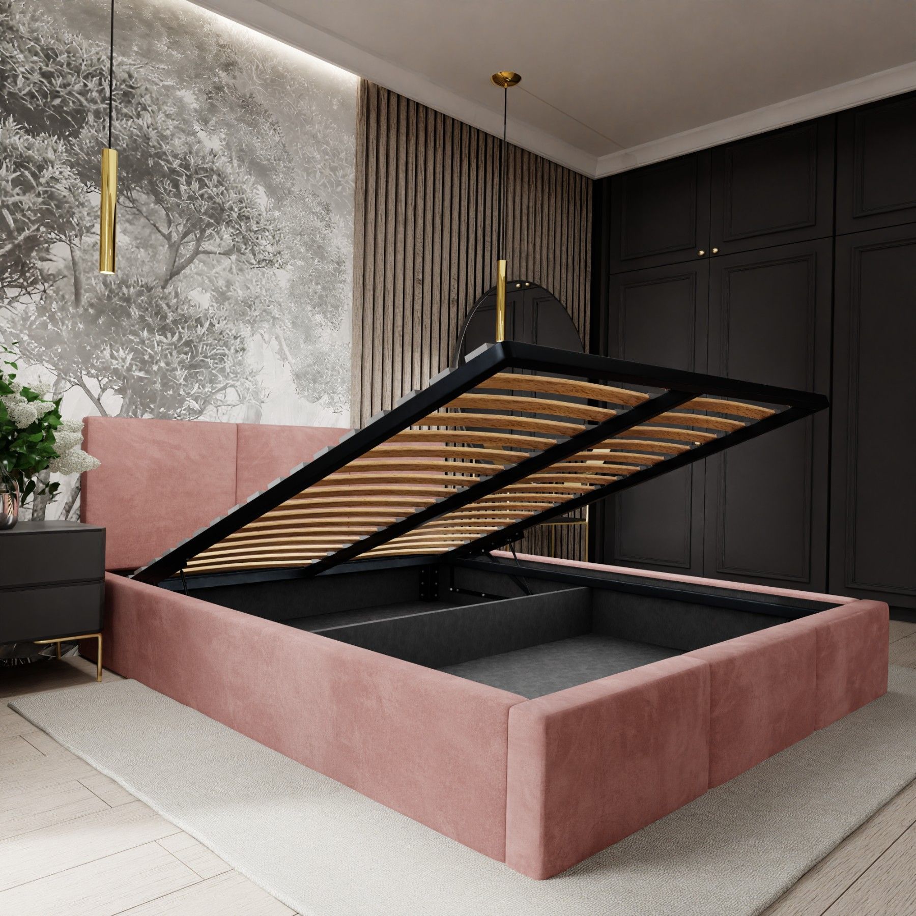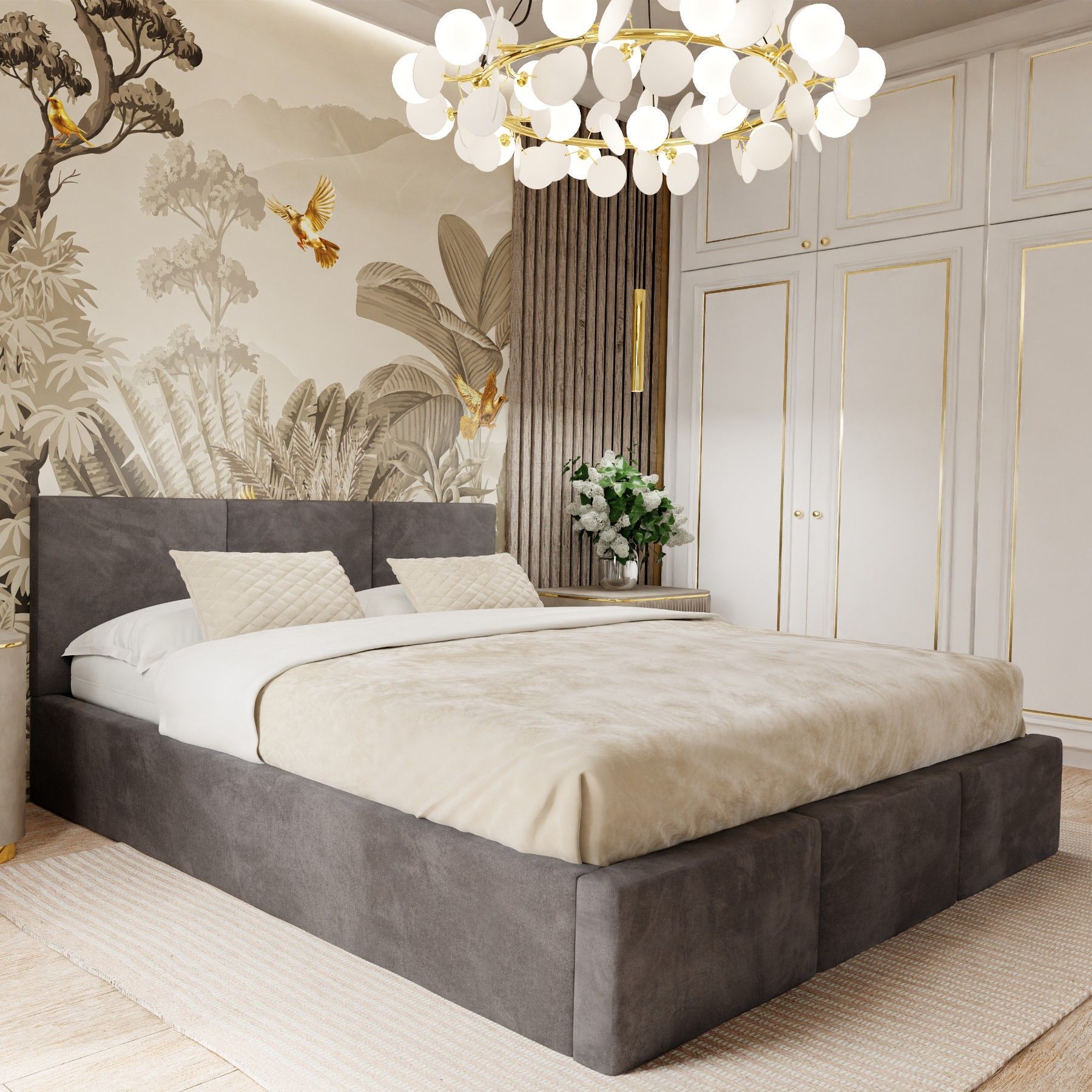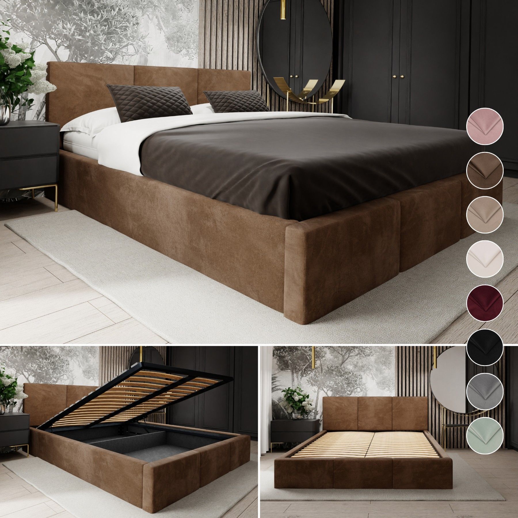 Ein schönes Bett. Die Farbe (ich habe es in beige) entspricht der Abbildung. Der samtige Bezugsstoff ist angenehm weich, es gibt deshalb auch keine scharfen Kanten.