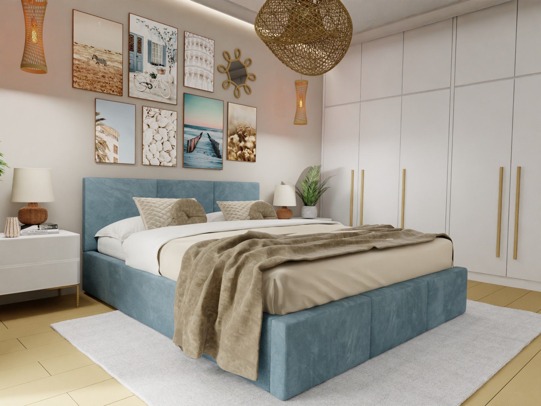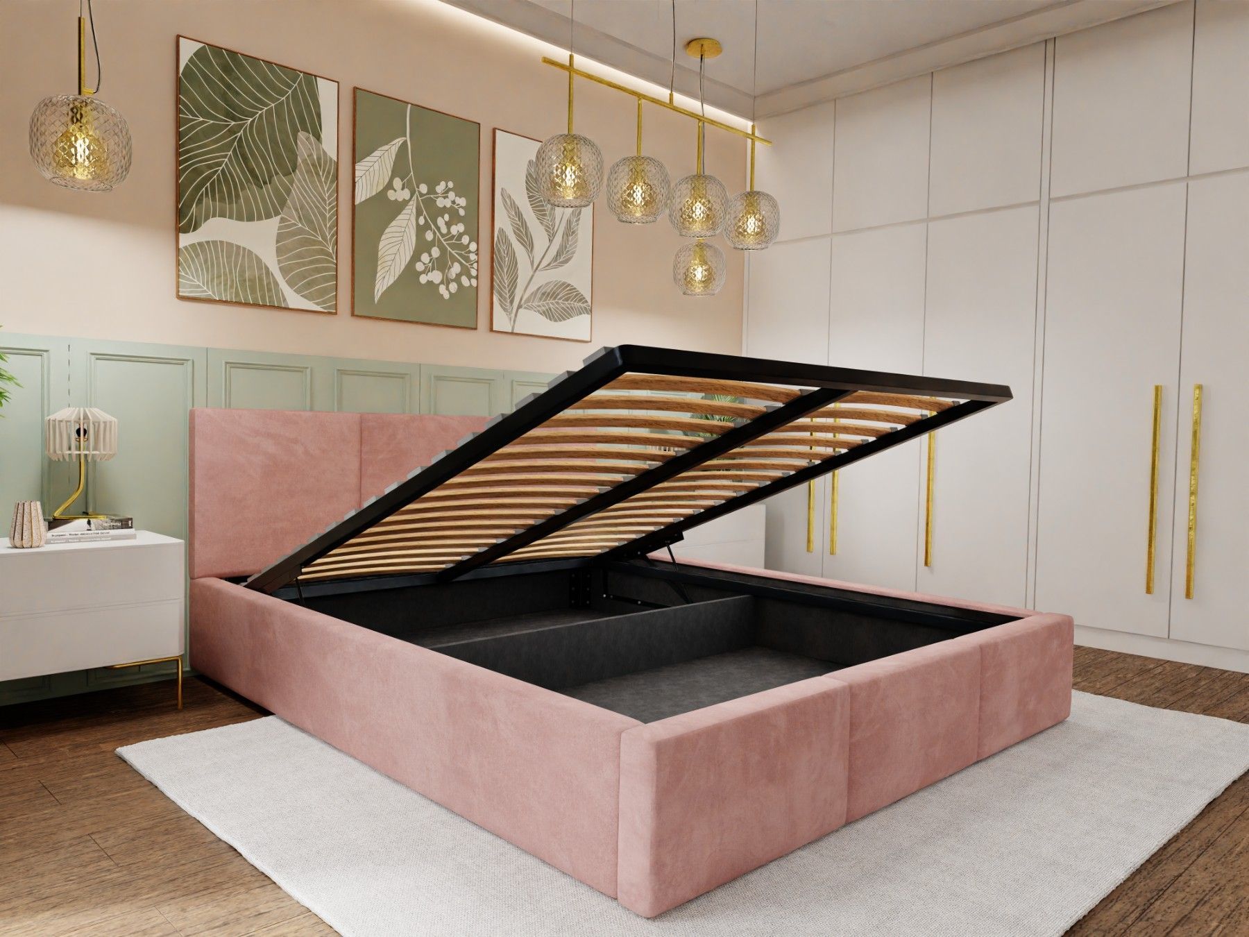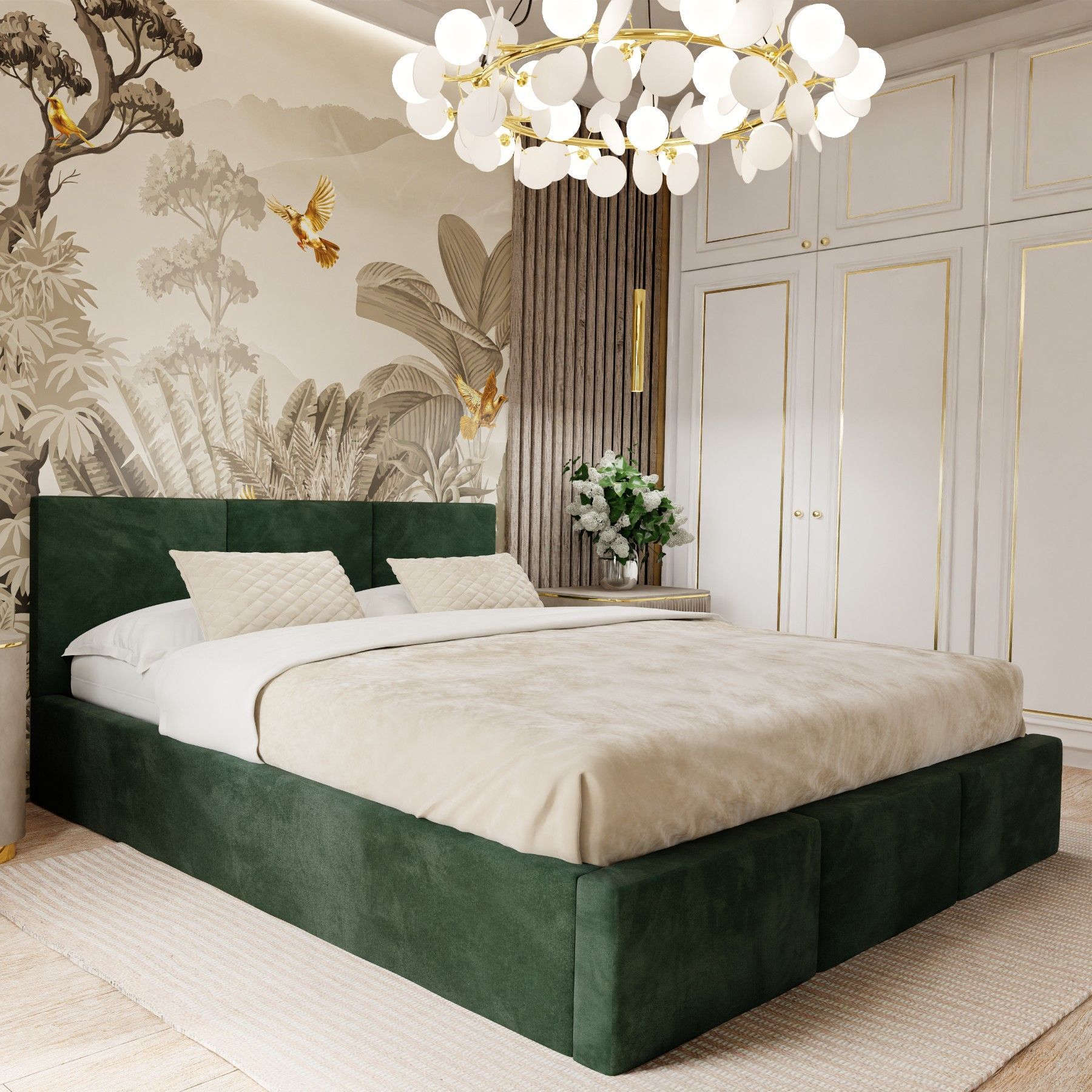 Ein schönes Bett. Die Farbe (ich habe es in beige) entspricht der Abbildung. Der samtige Bezugsstoff ist angenehm weich, es gibt deshalb auch keine scharfen Kanten.