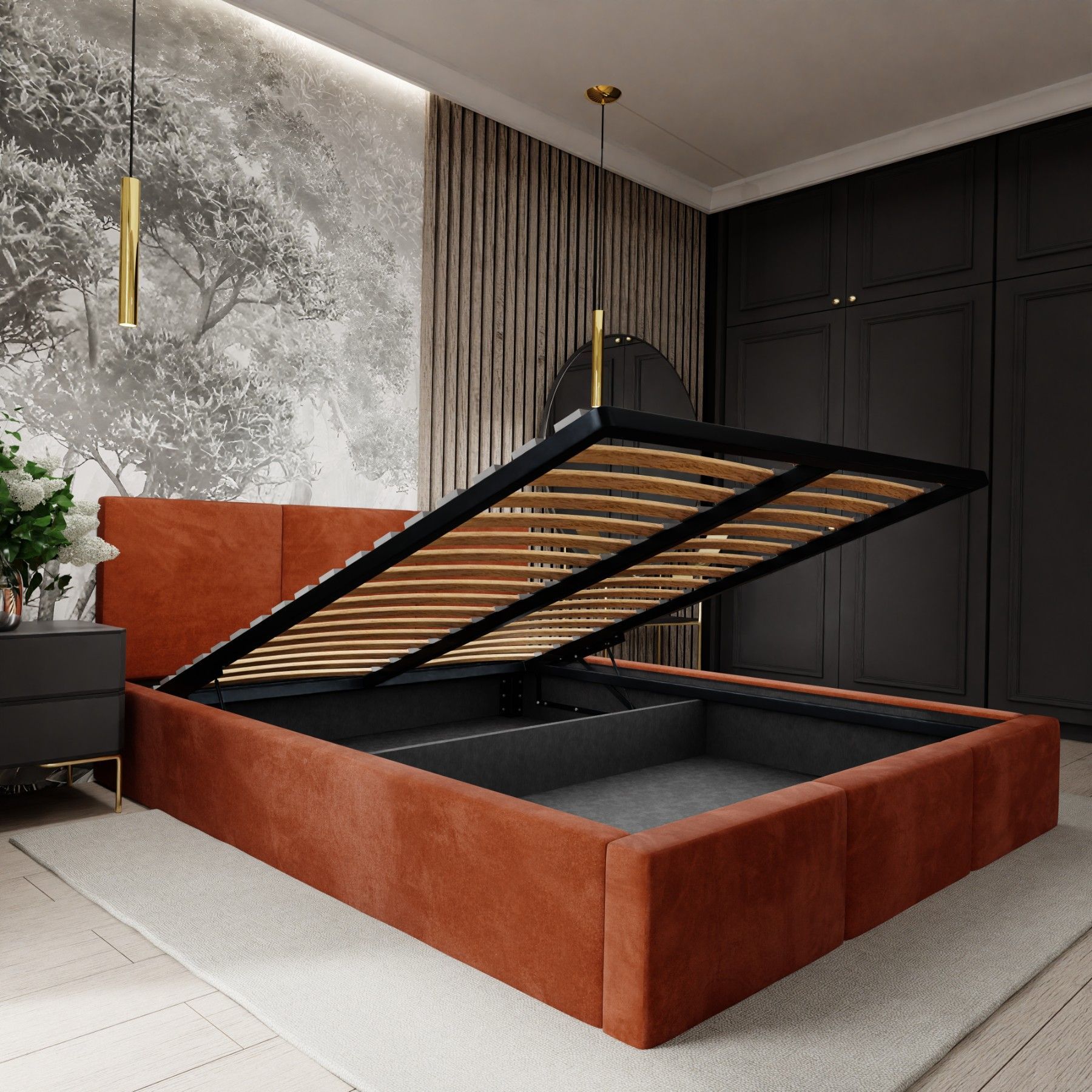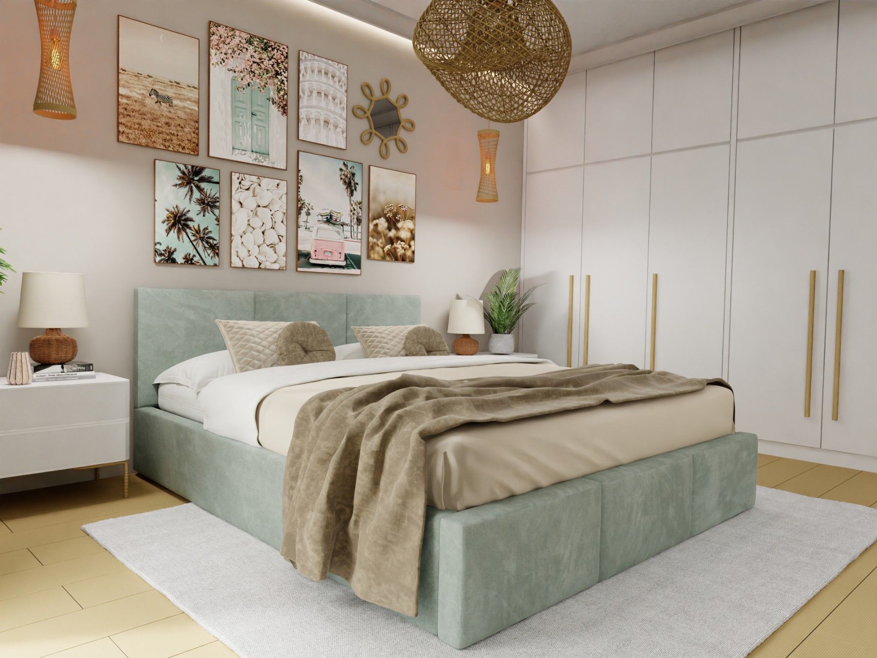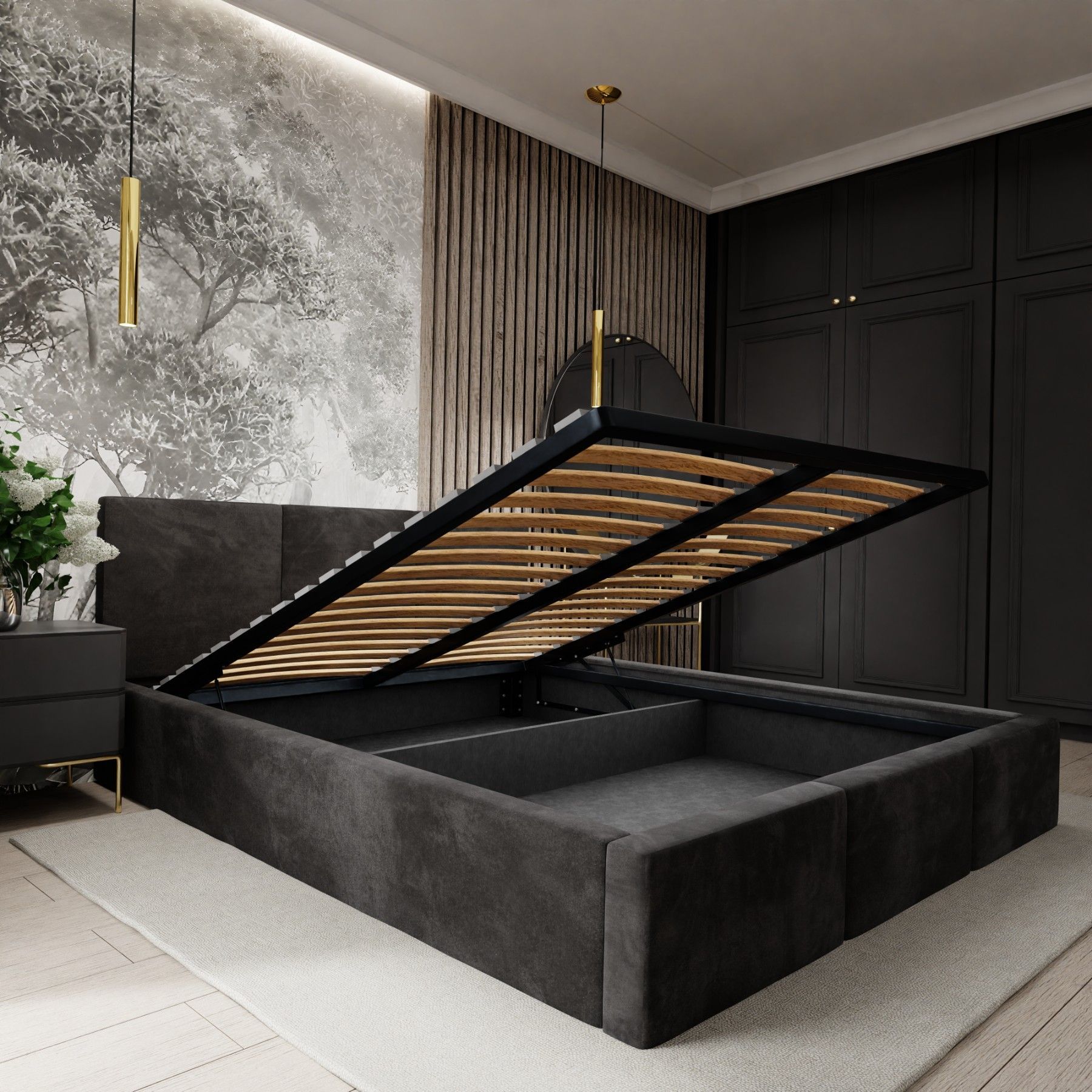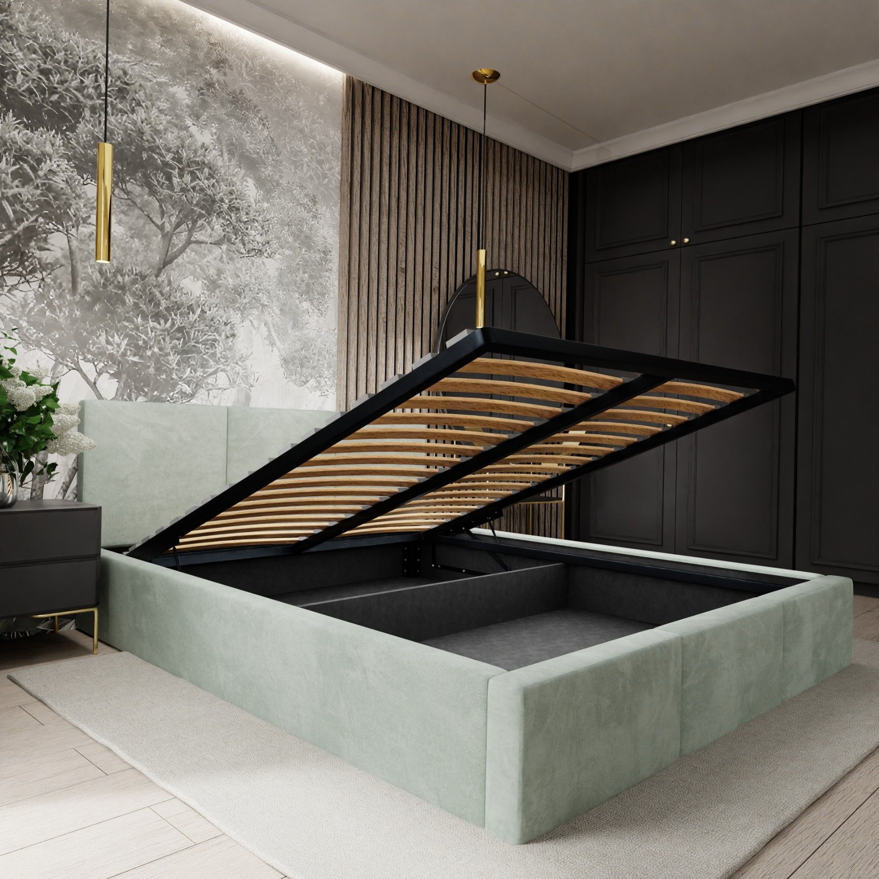 Ein schönes Bett. Die Farbe (ich habe es in beige) entspricht der Abbildung. Der samtige Bezugsstoff ist angenehm weich, es gibt deshalb auch keine scharfen Kanten.