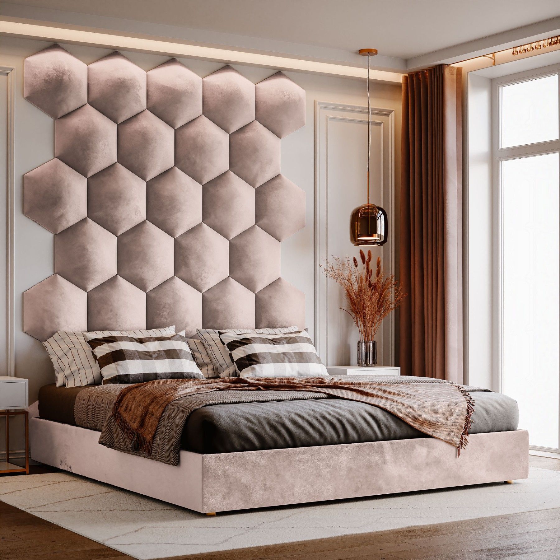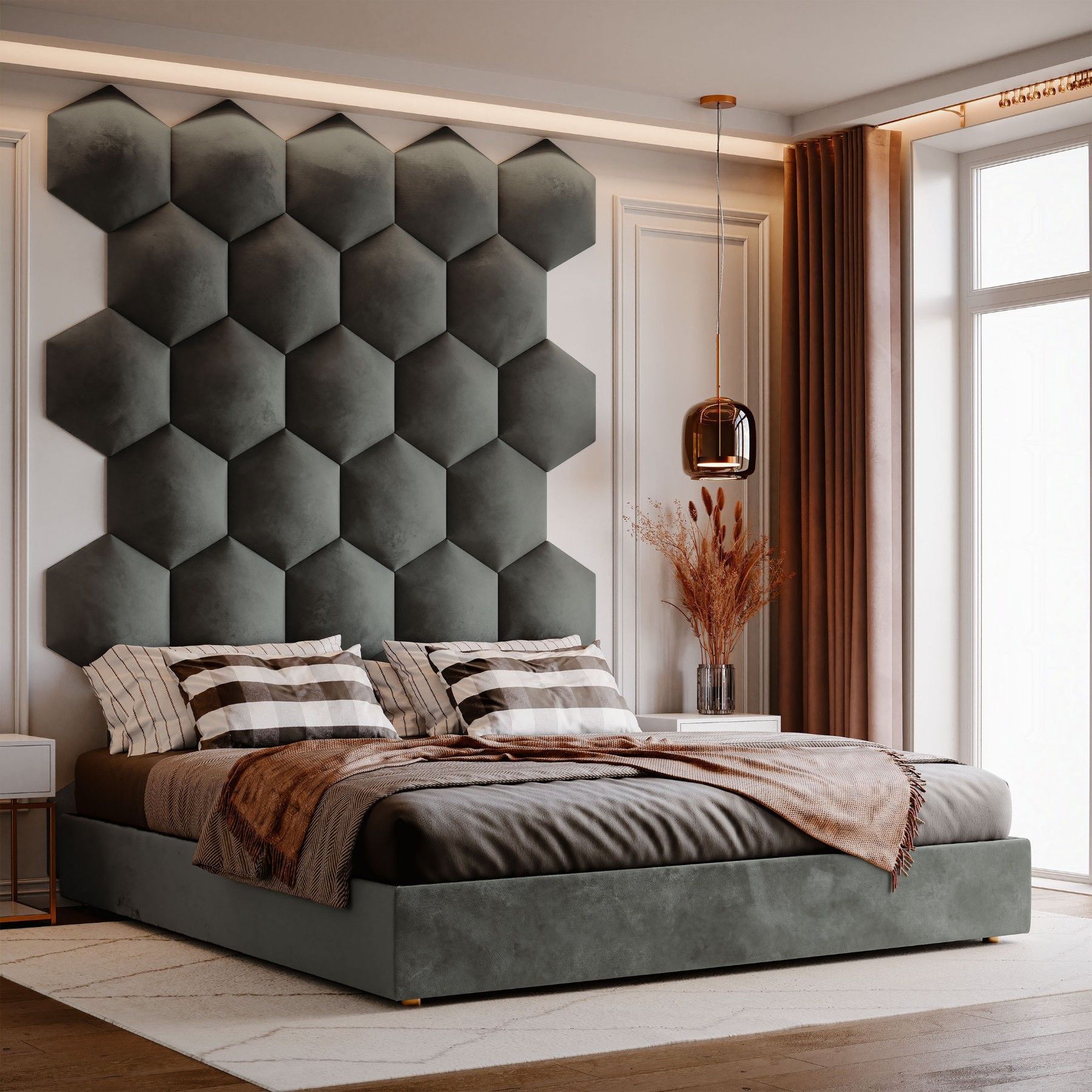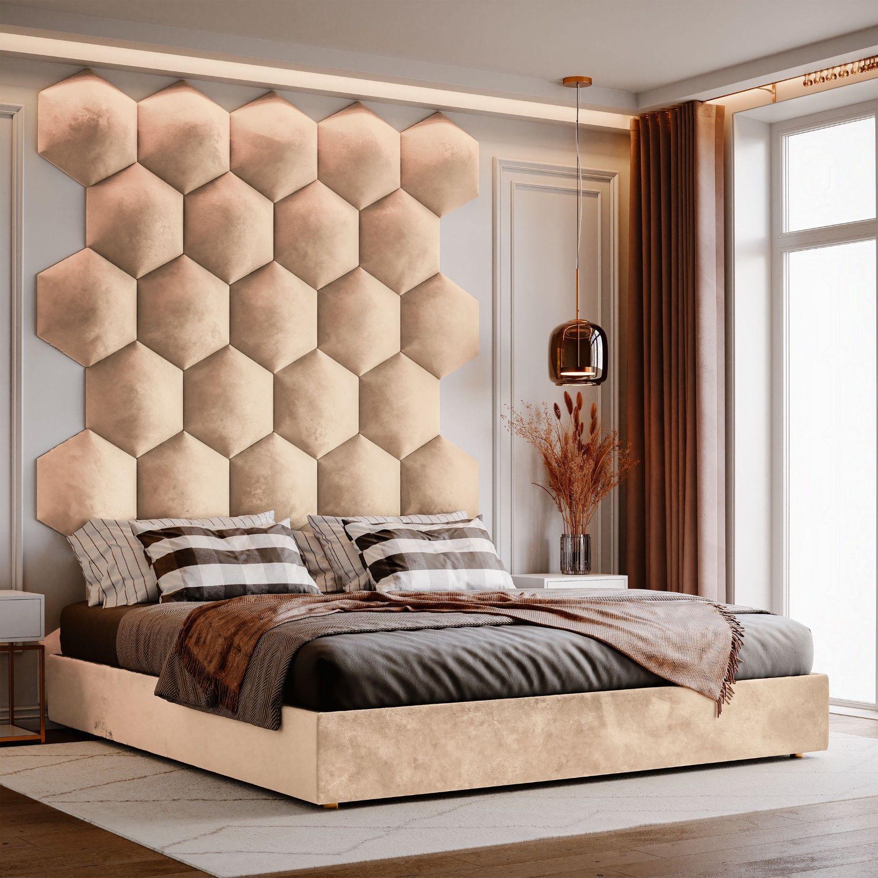 Muralo Polsterpaneel Hexagon Wandpolster Bettkopfteil Wandpaneel Magic Velvet