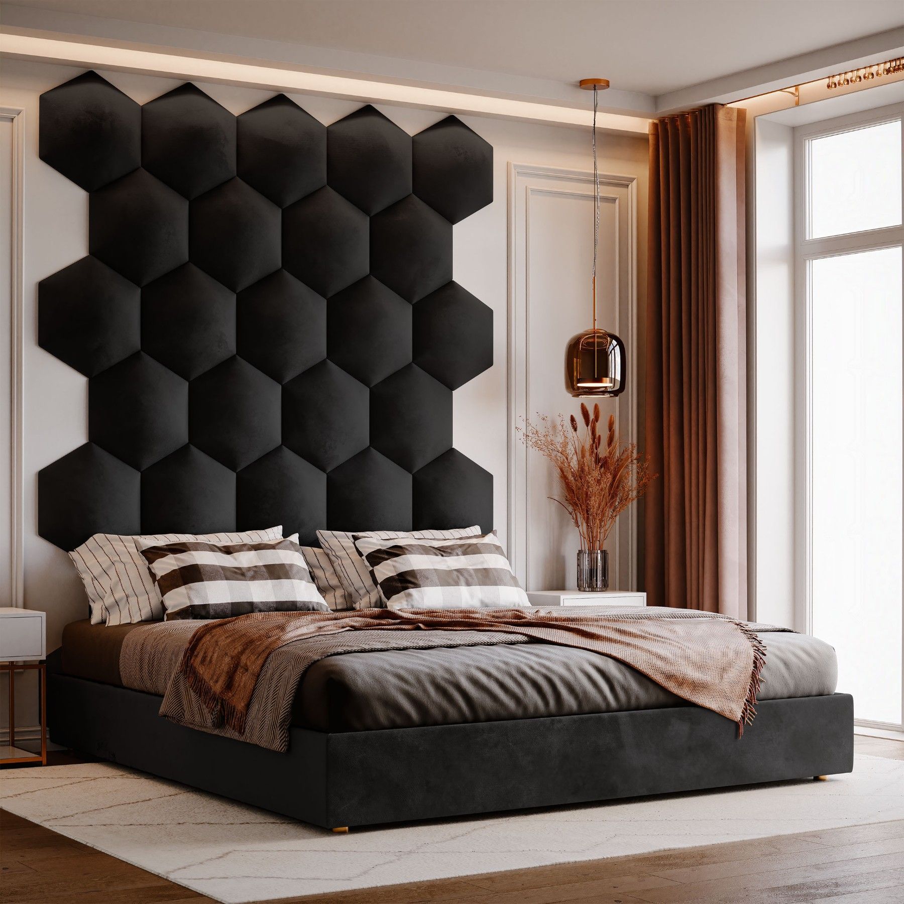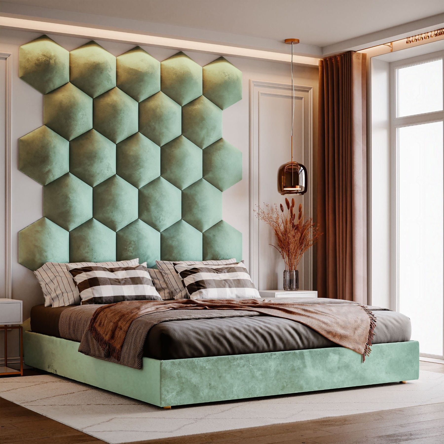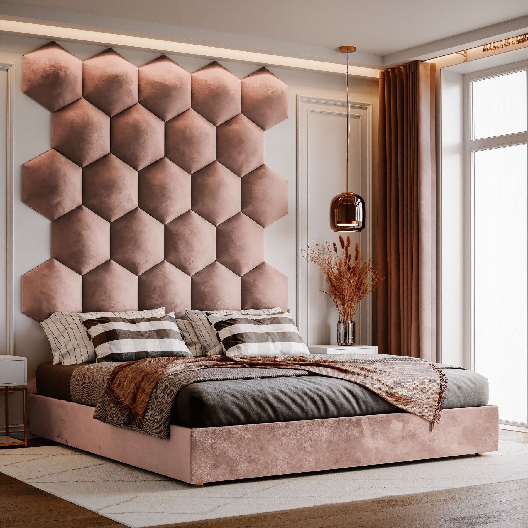 Muralo Polsterpaneel Hexagon Wandpolster Bettkopfteil Wandpaneel Magic Velvet