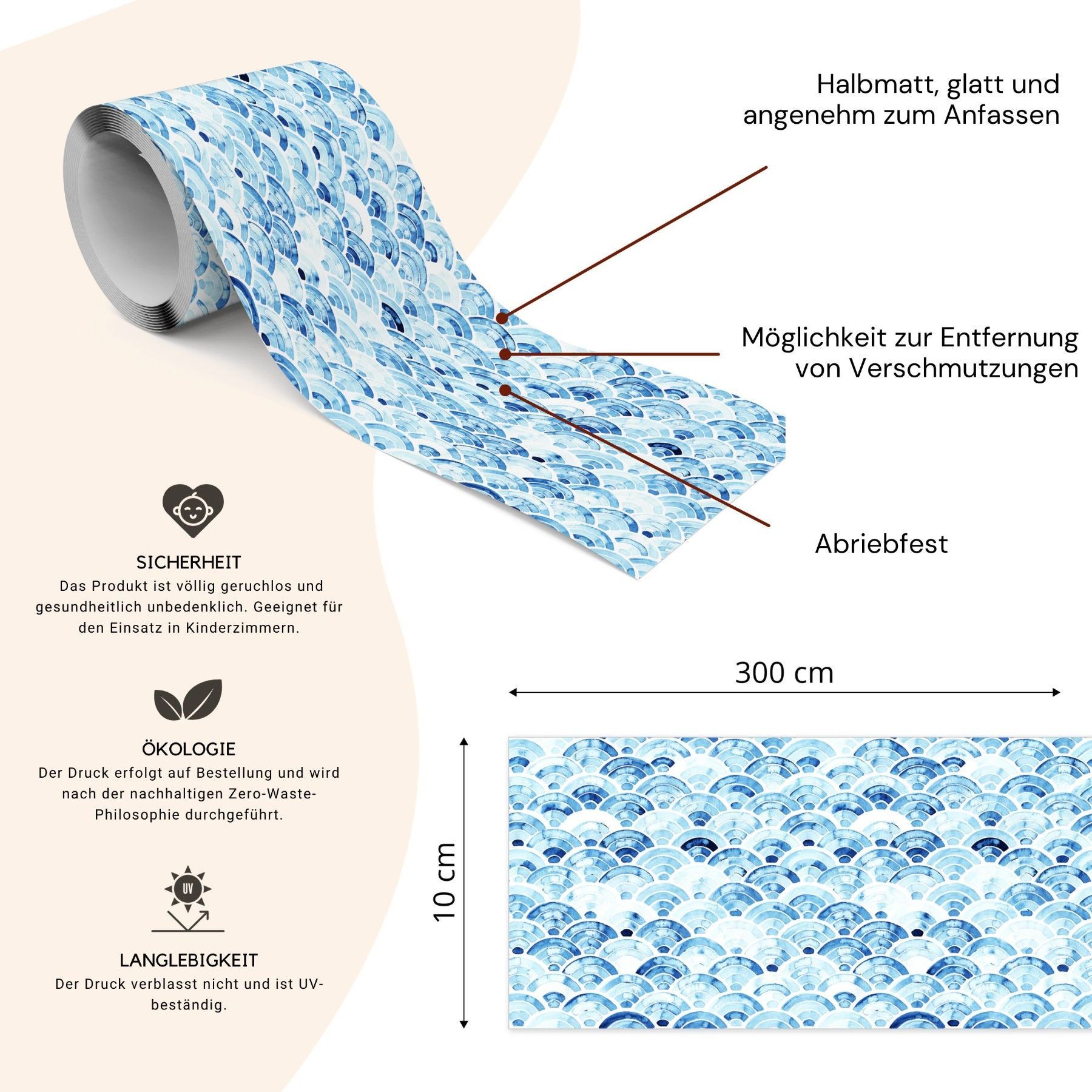 Muralo Selbstklebende Bordüre Tapetenbordüre Aquarellwellen Abstraktion Wandtattoo