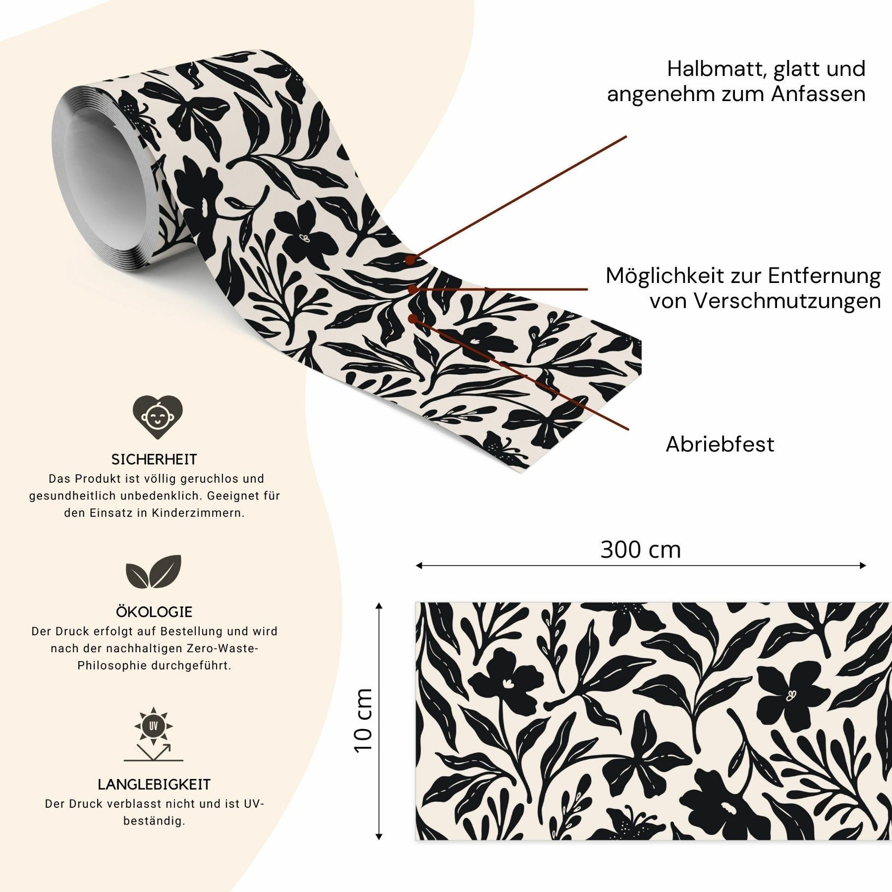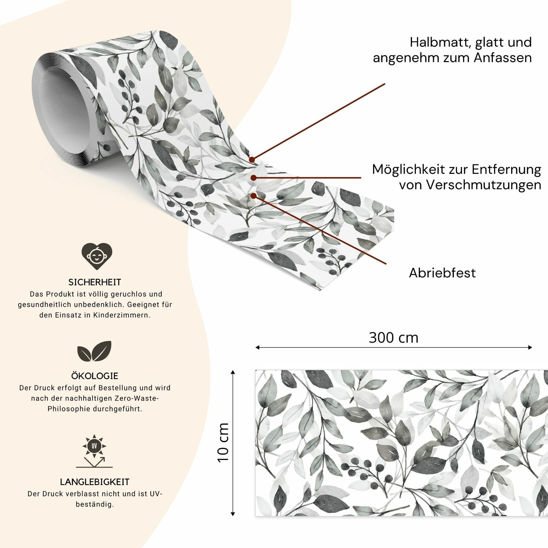 Muralo Selbstklebende Bordüre Tapetenbordüre Blätter Blumen Pflanzen Natur
