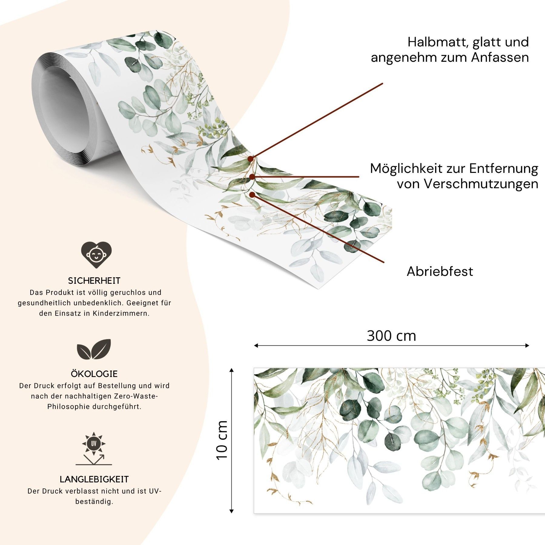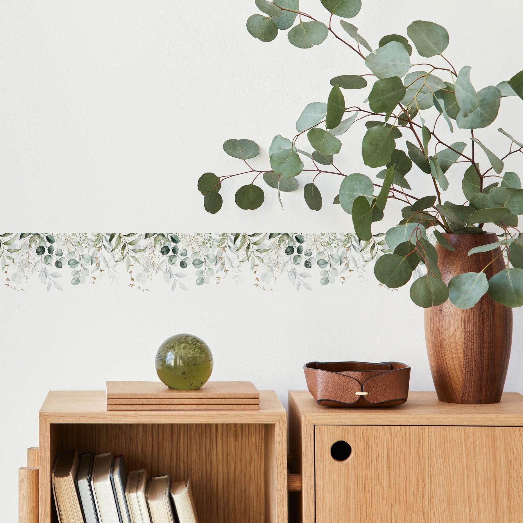 Muralo Selbstklebende Bordüre Tapetenbordüre Blätter Natur Wandtattoo für Wohnzimmer