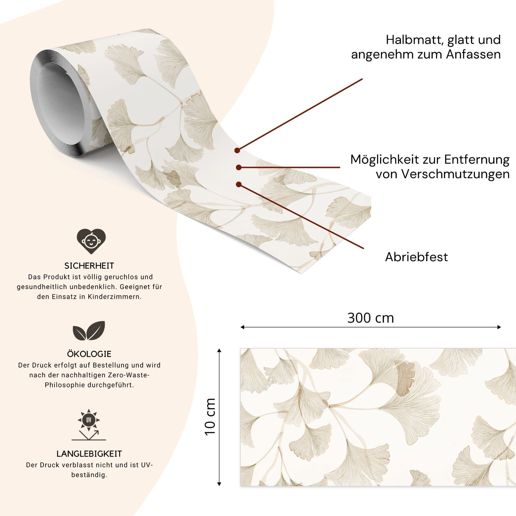Muralo Selbstklebende Bordüre Tapetenbordüre Blätter Natur Wandtattoo für Wohnzimmer