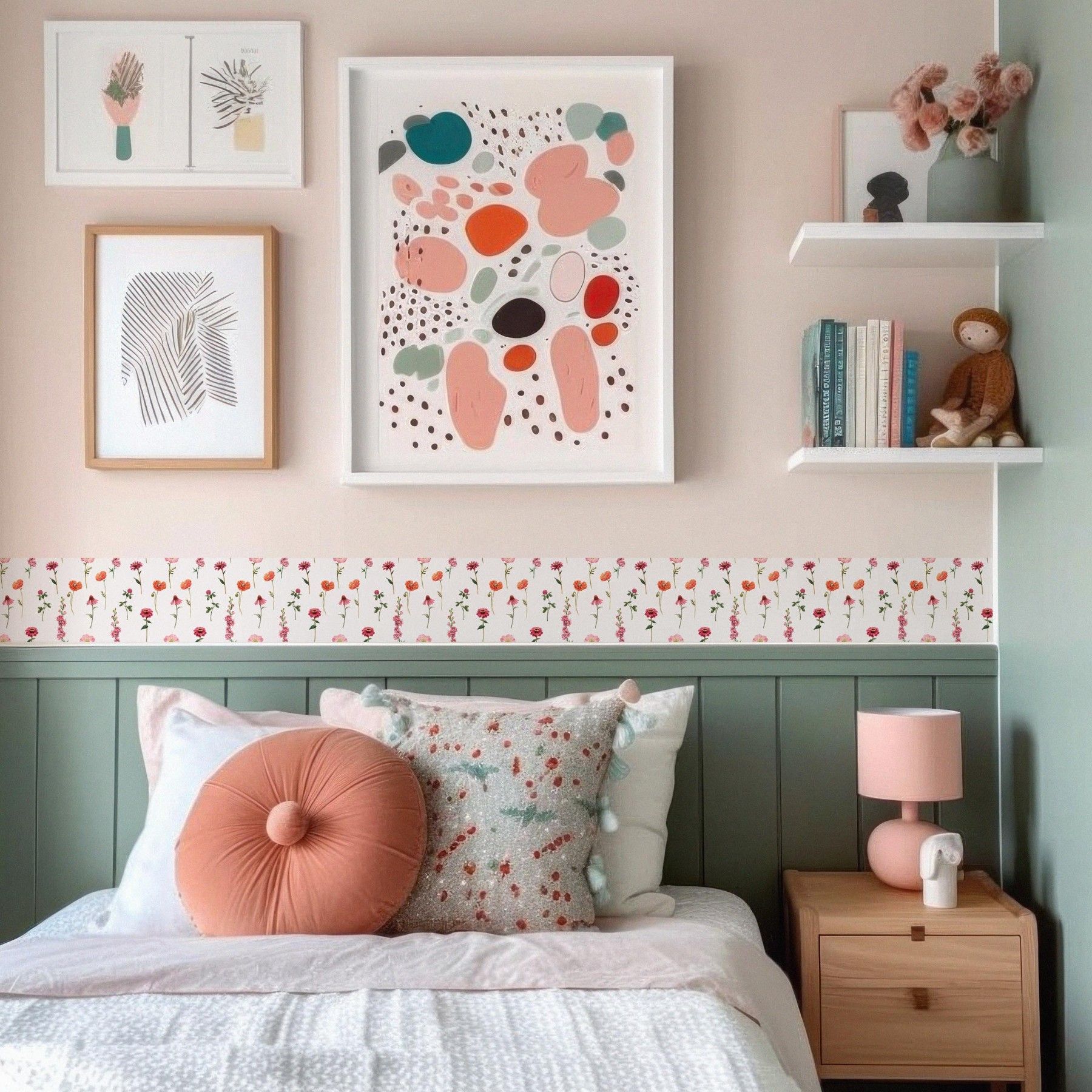 Muralo Selbstklebende Bordüre Tapetenbordüre Blumen Blätter Feldpflanzen Wandtattoo