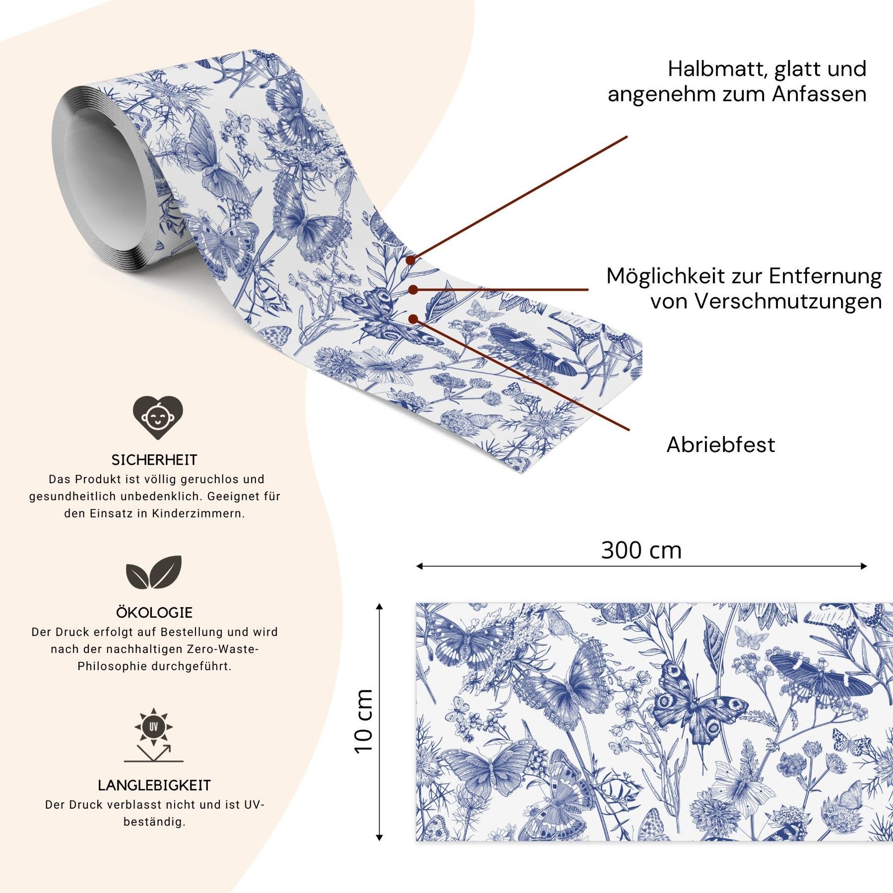 Muralo Selbstklebende Bordüre Tapetenbordüre Blumen Schmetterlinge Natur Wandtattoo