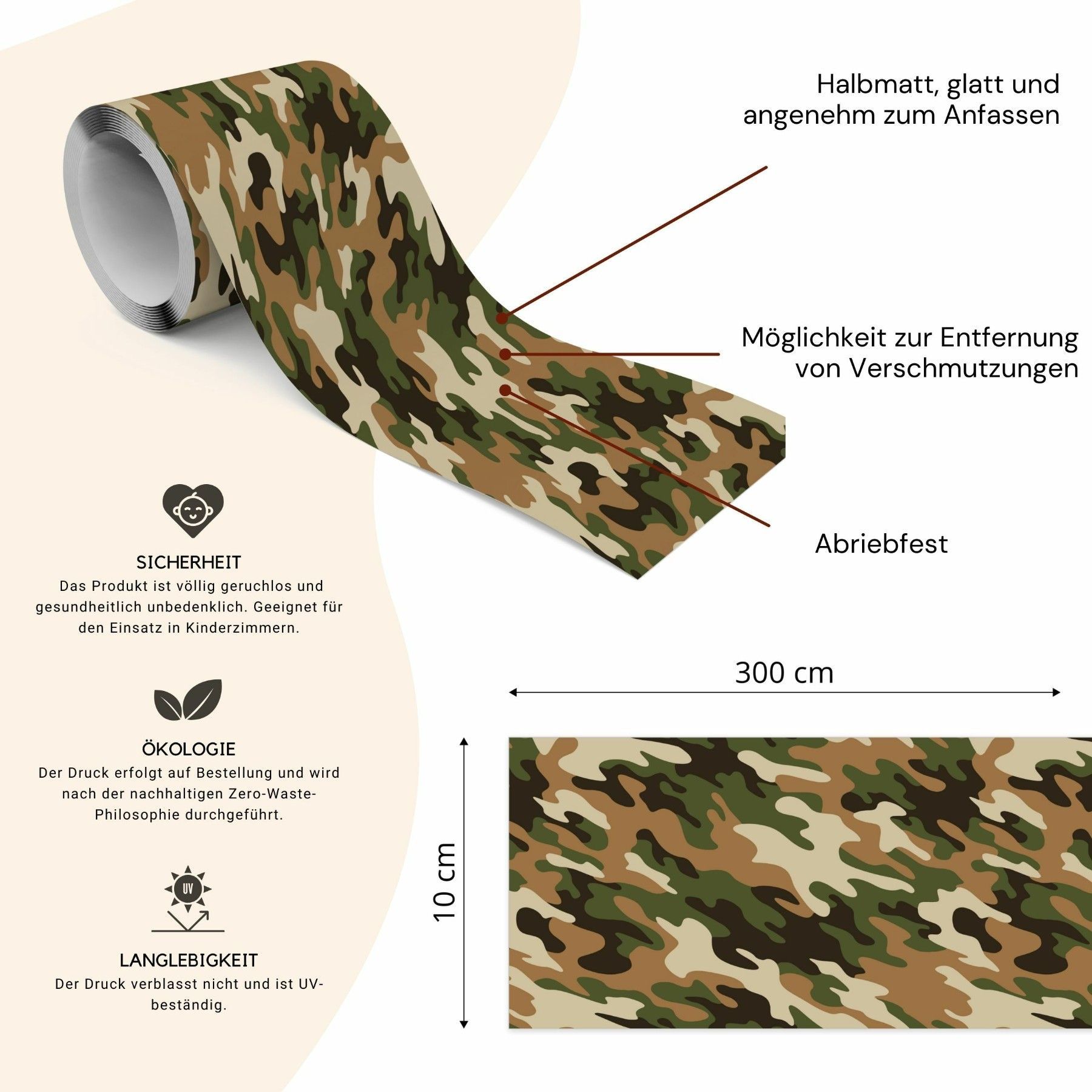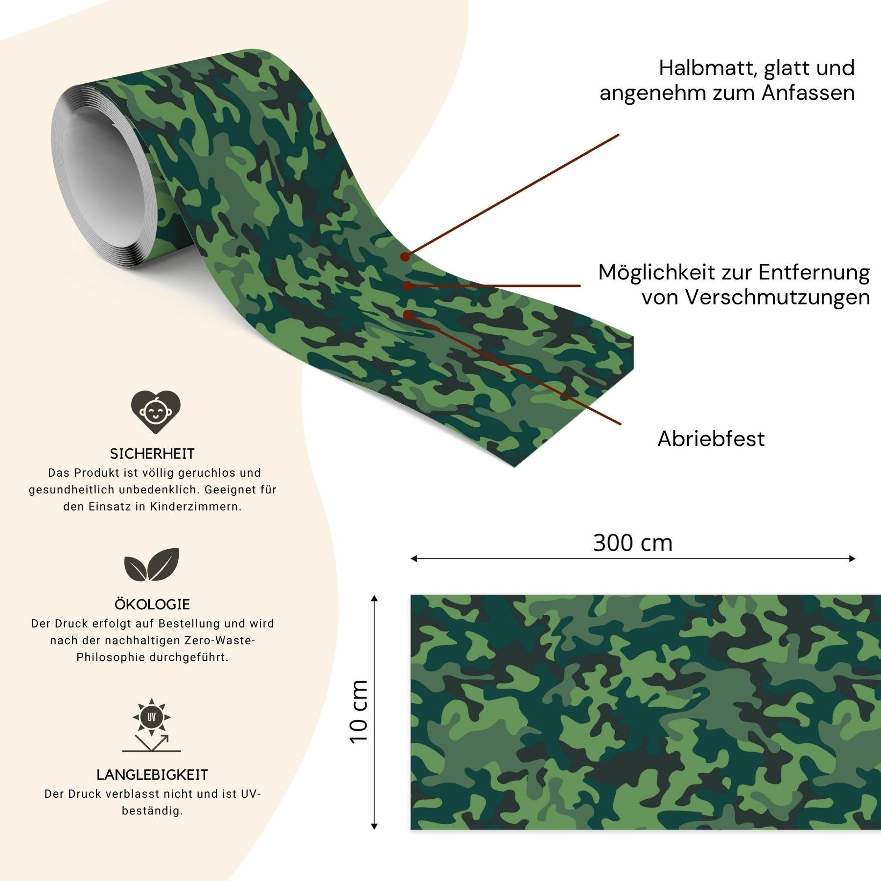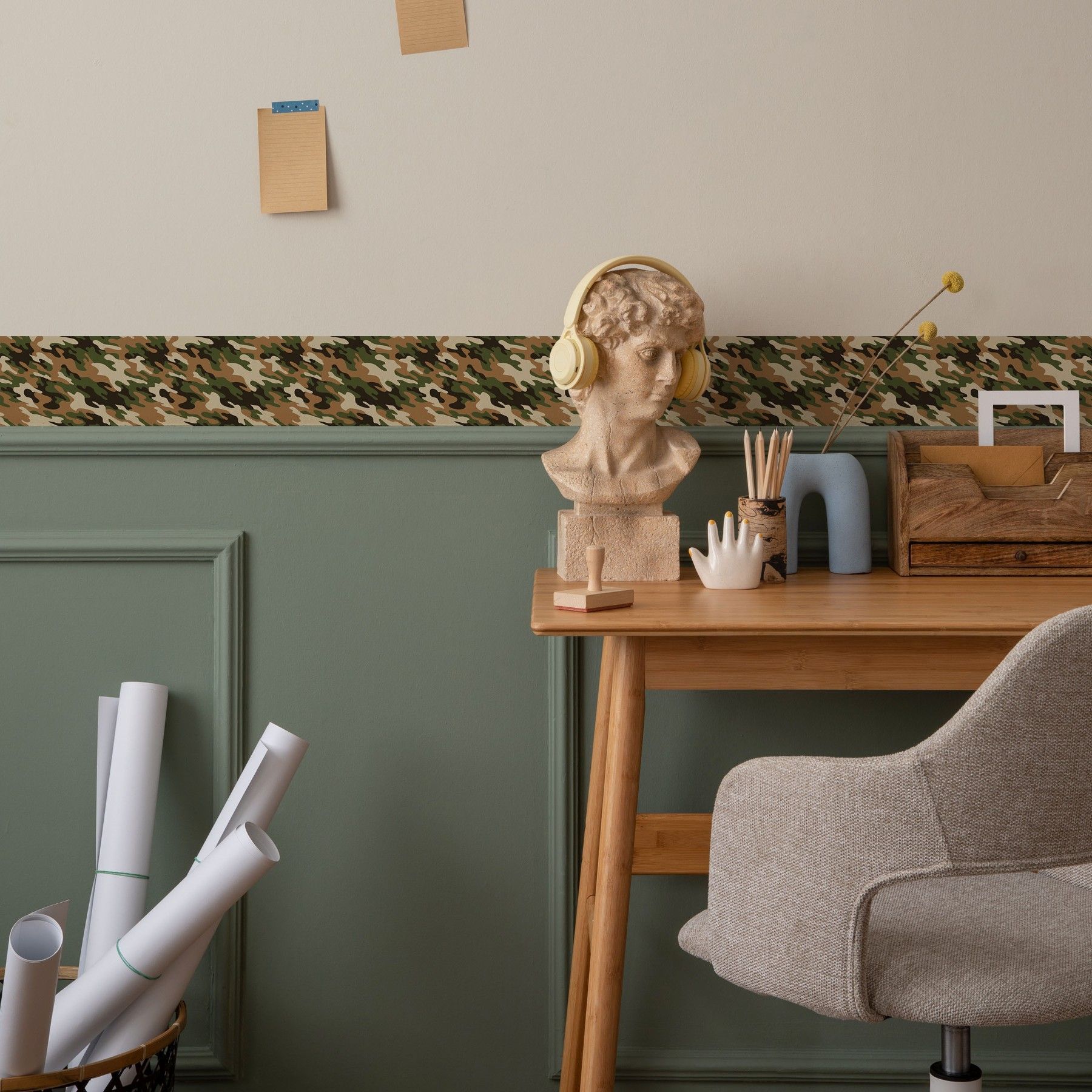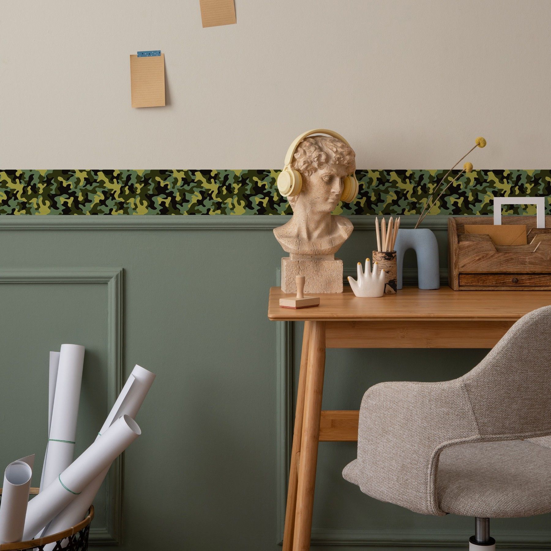 Muralo Selbstklebende Bordüre Tapetenbordüre Camouflage-Muster Wanddeko