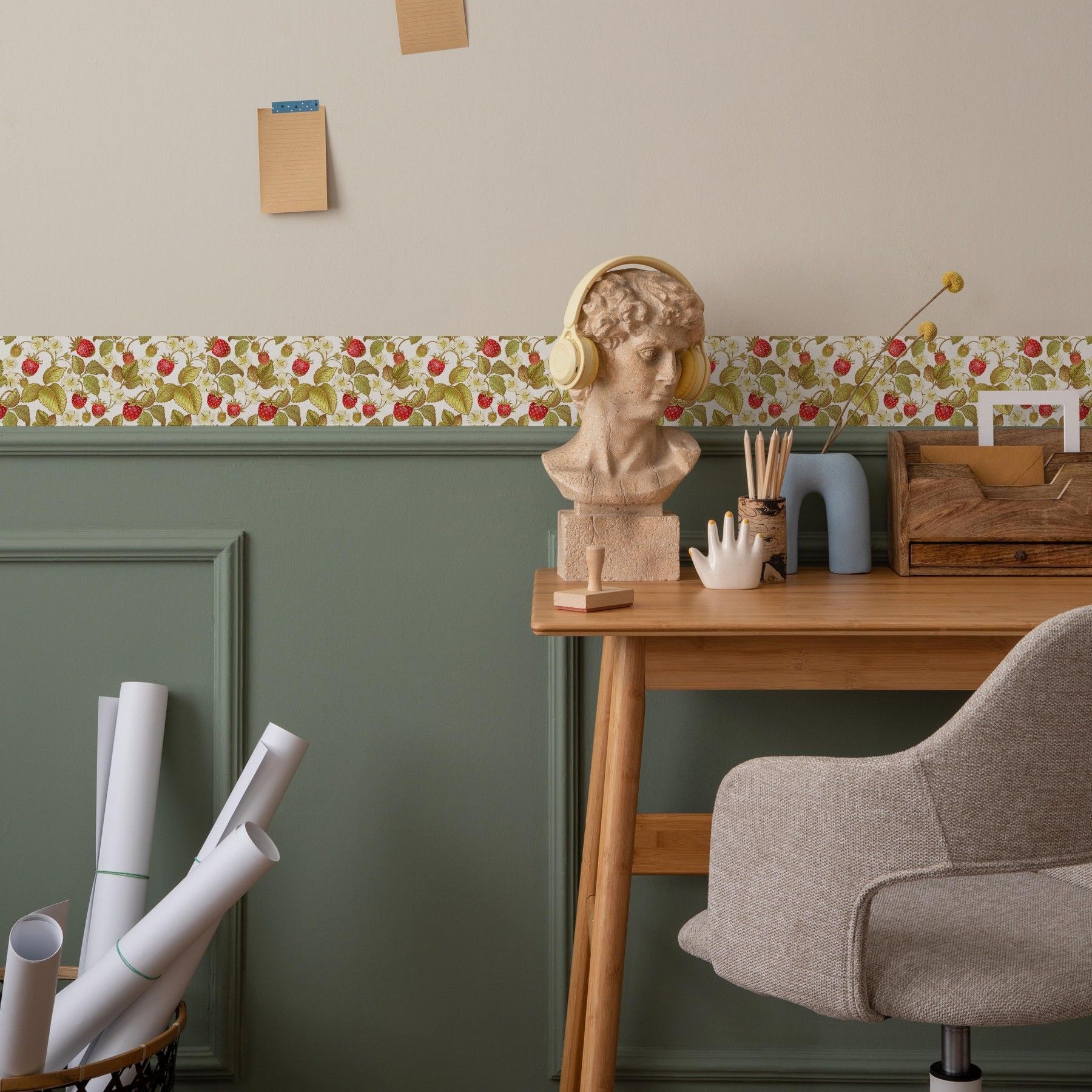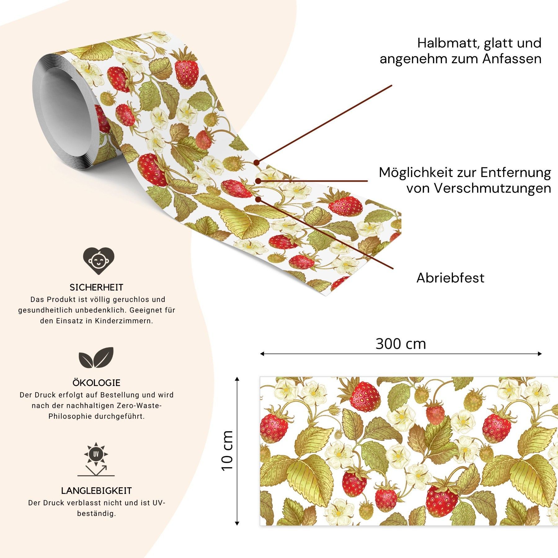 Muralo Selbstklebende Bordüre Tapetenbordüre Erdbeeren Blumen Blätter Wandtattoo