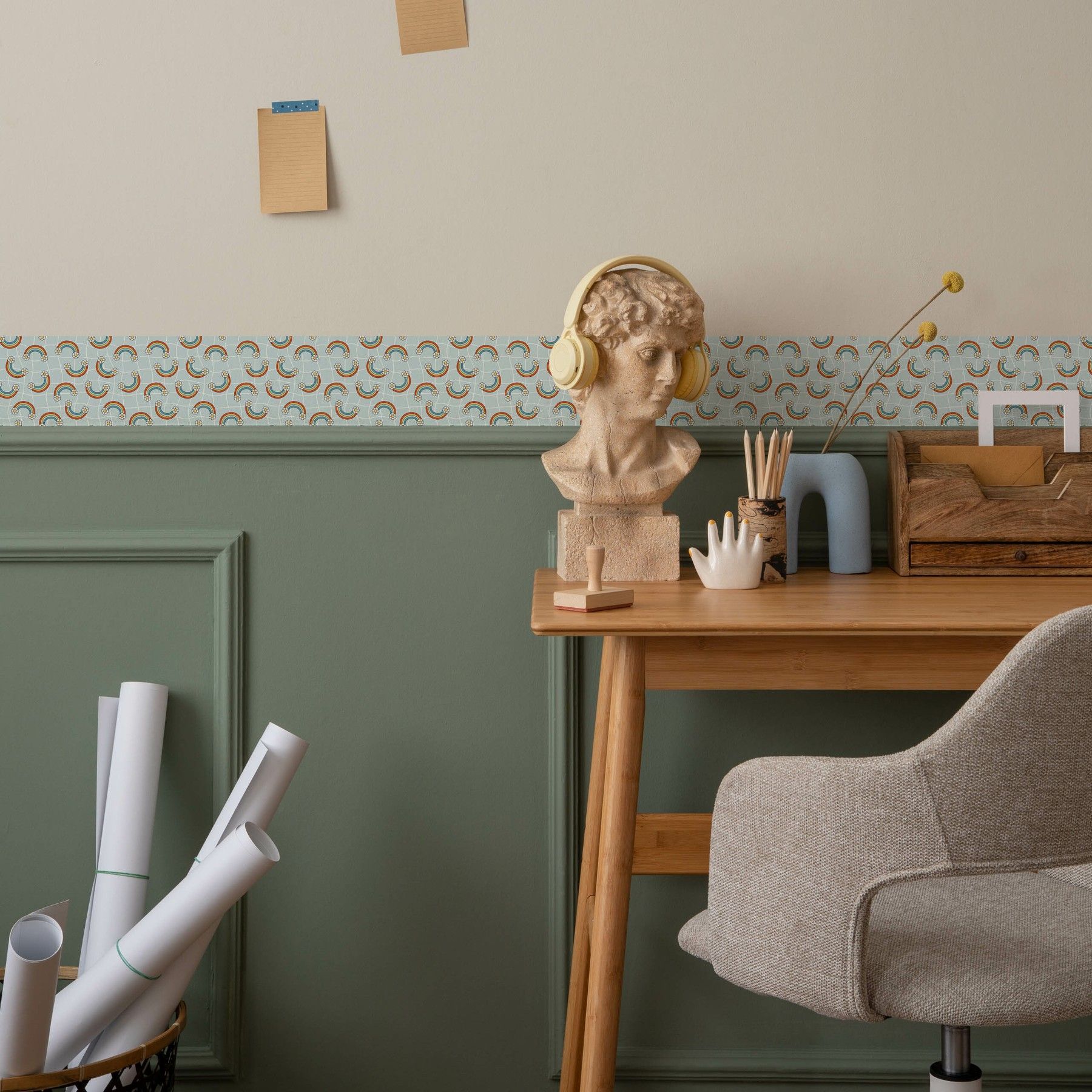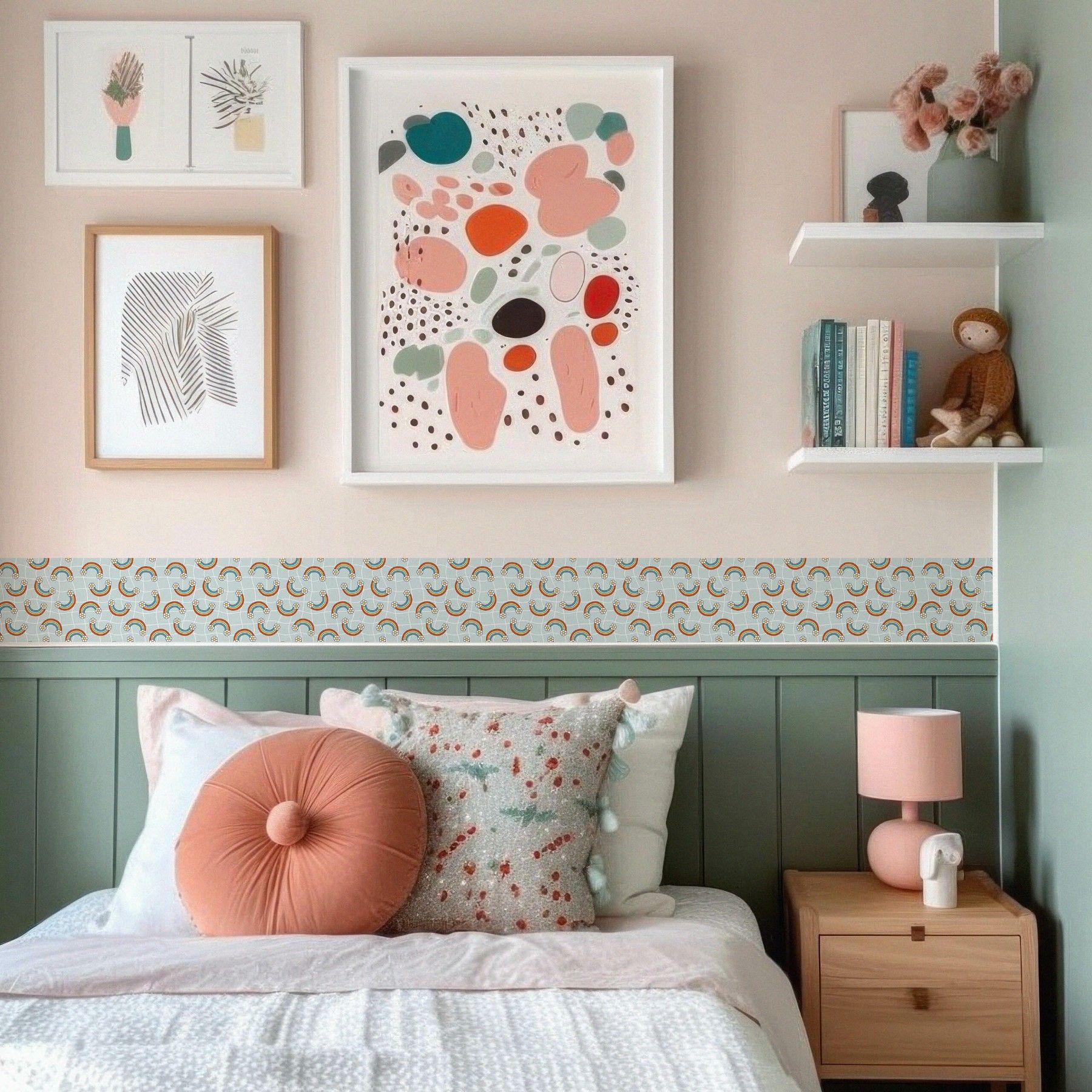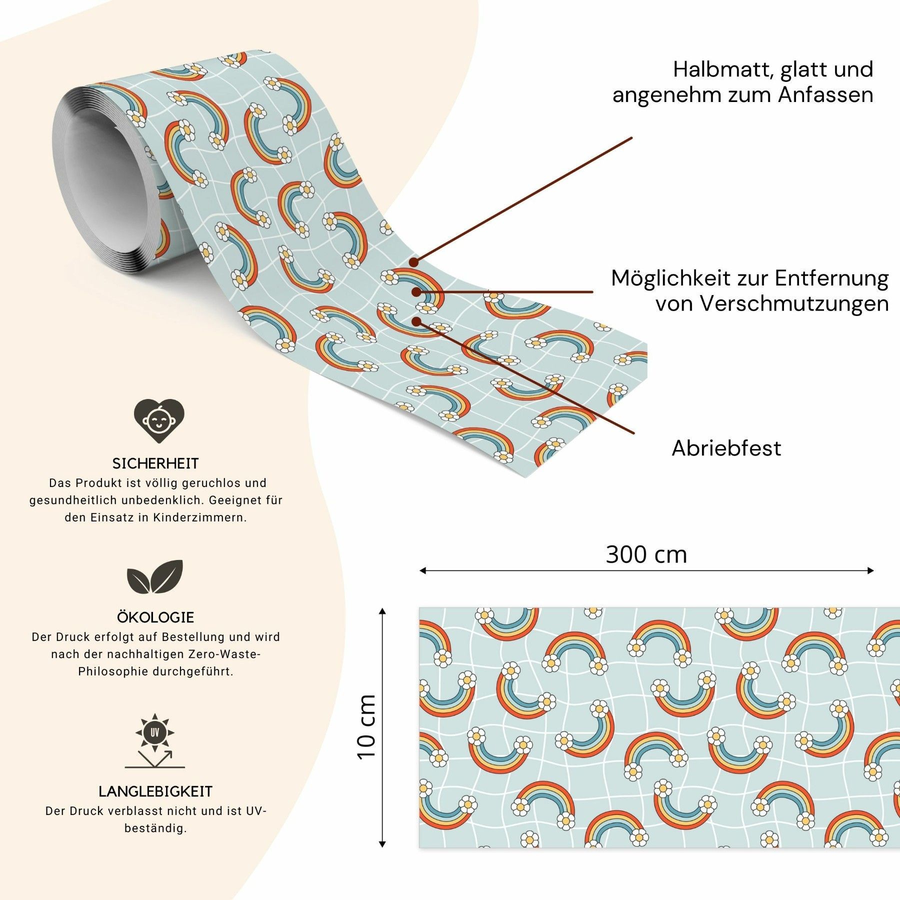 Muralo Selbstklebende Bordüre Tapetenbordüre für Kinder Regenbogen Gänseblümchen