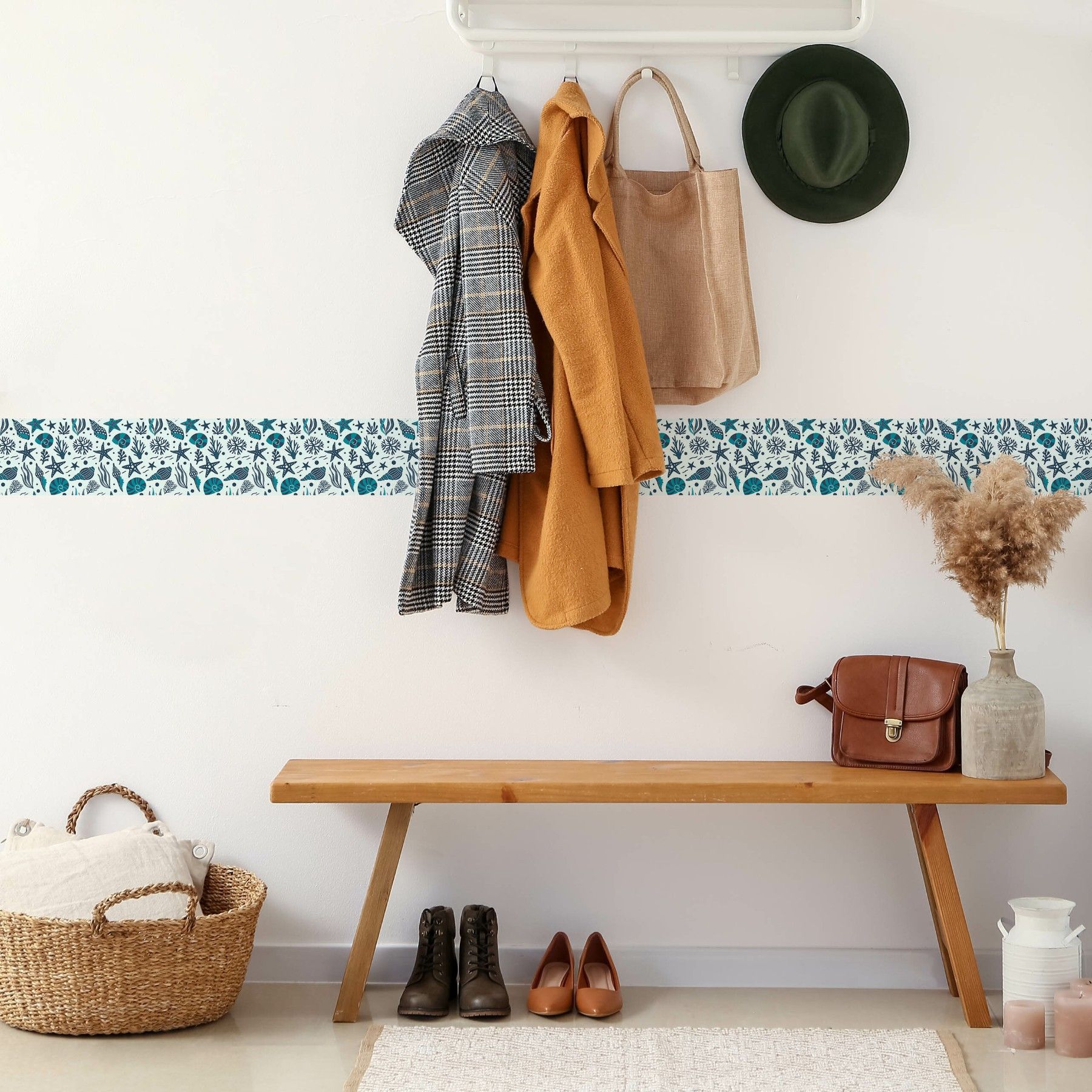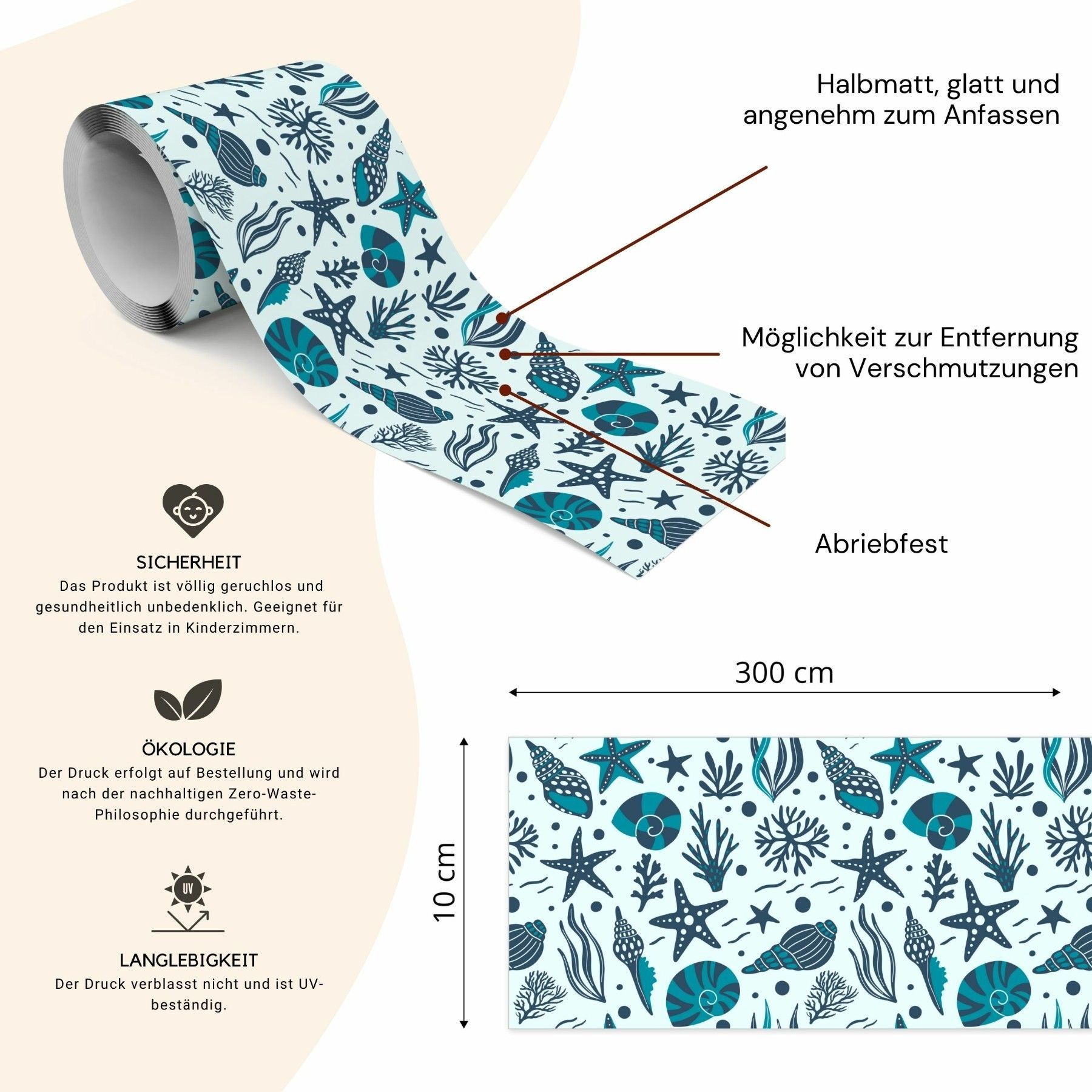 Muralo Selbstklebende Bordüre Tapetenbordüre für Kinderzimmer Muscheln Korallenriff