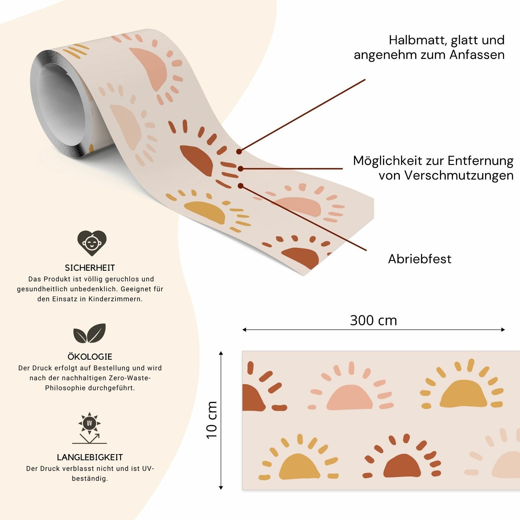 Muralo Selbstklebende Bordüre Tapetenbordüre für Kinderzimmer SONNE im Boho Stil