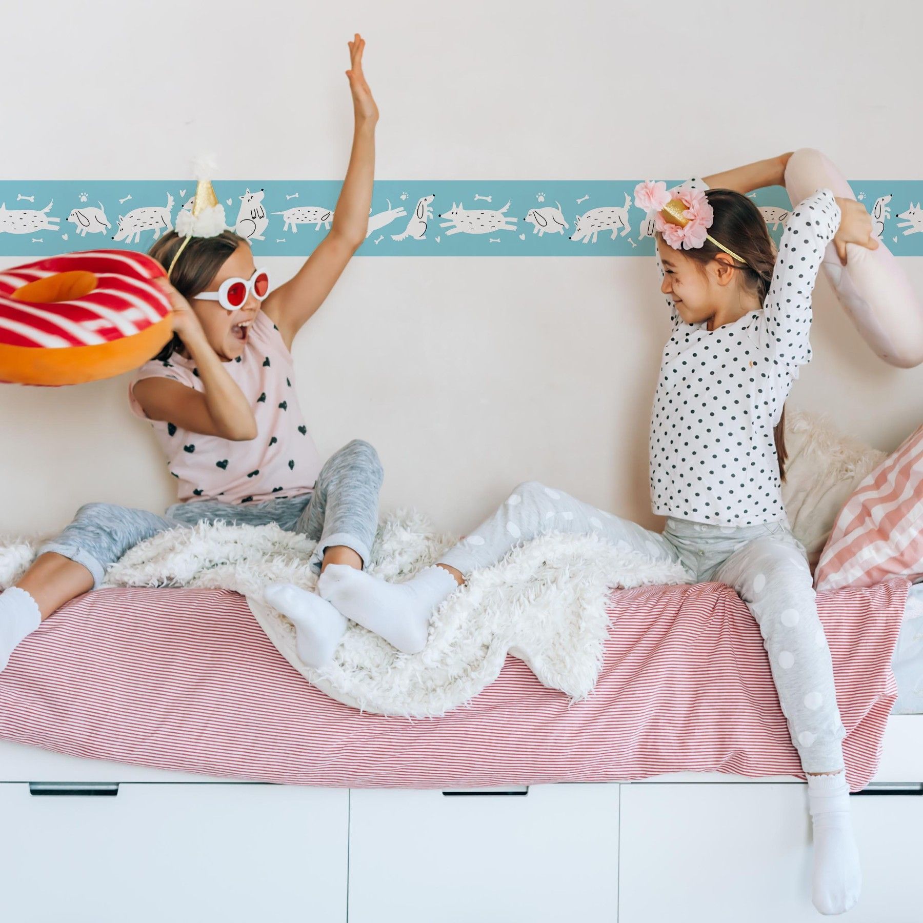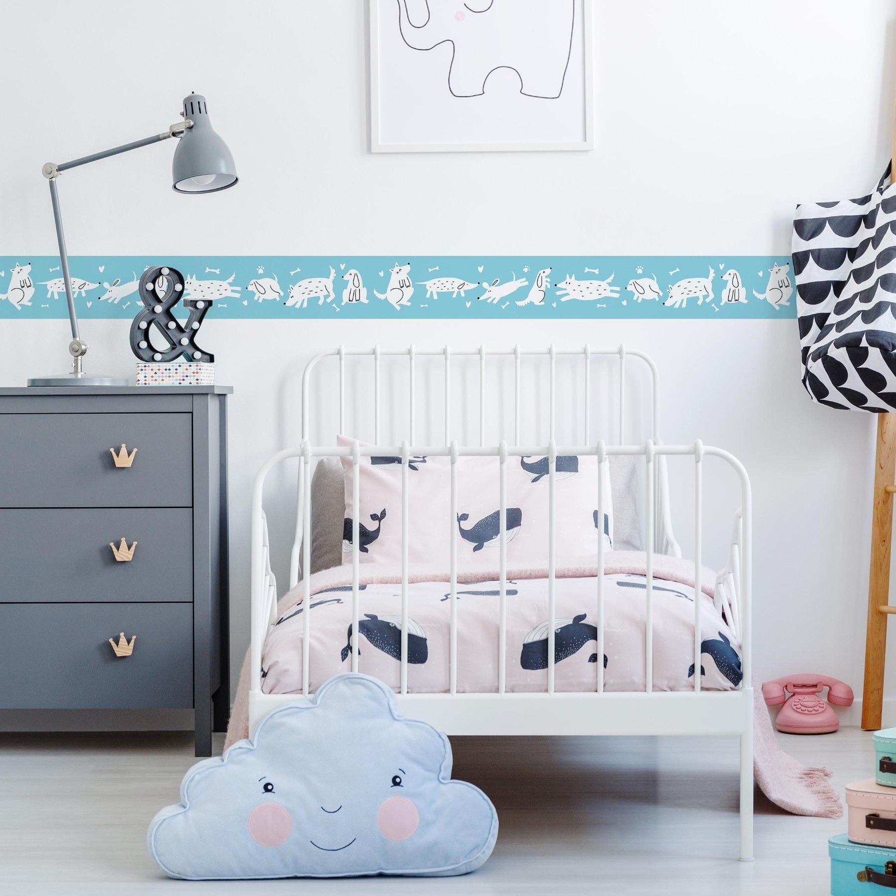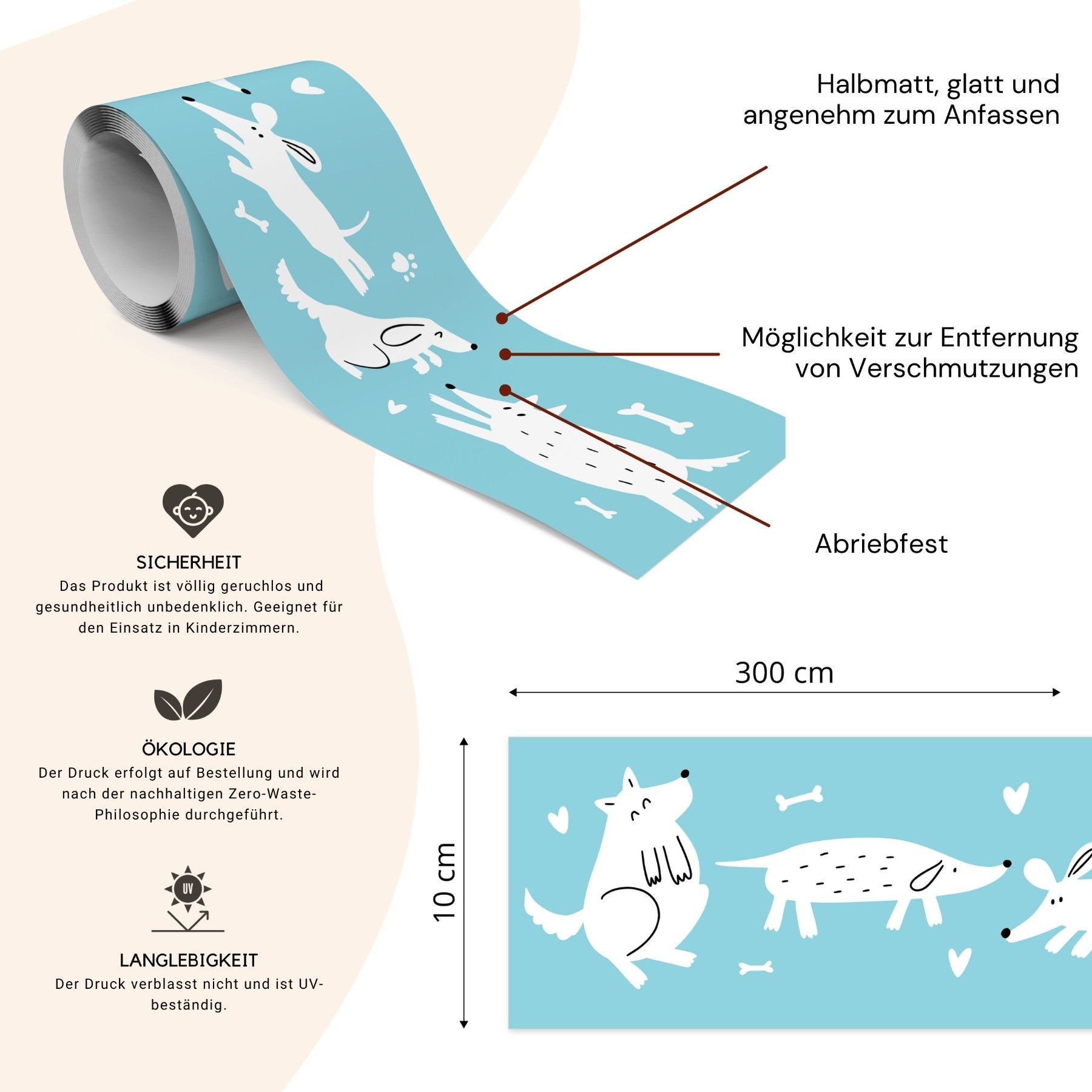 Muralo Selbstklebende Bordüre Tapetenbordüre Hunde Hündchen Tiere für Kinderzimmer