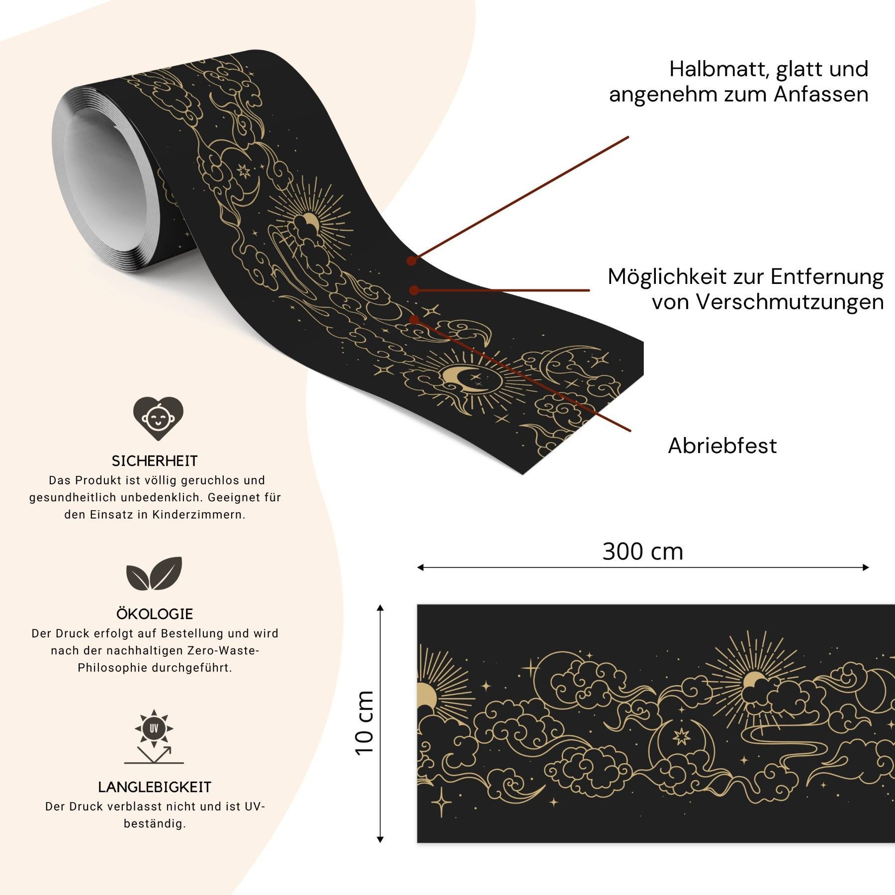 Muralo Selbstklebende Bordüre Tapetenbordüre Monde Wolken Sterne für Schlafzimmer