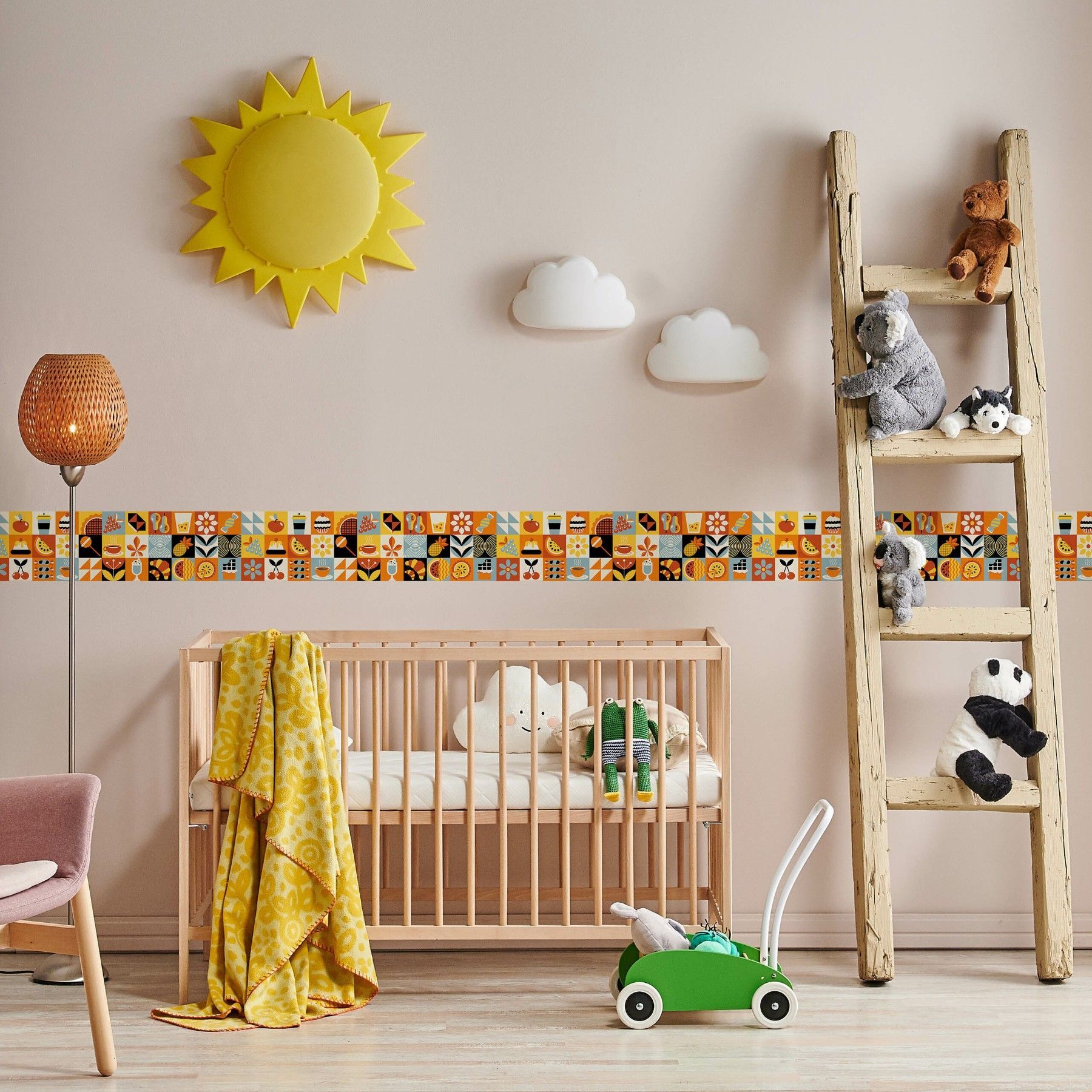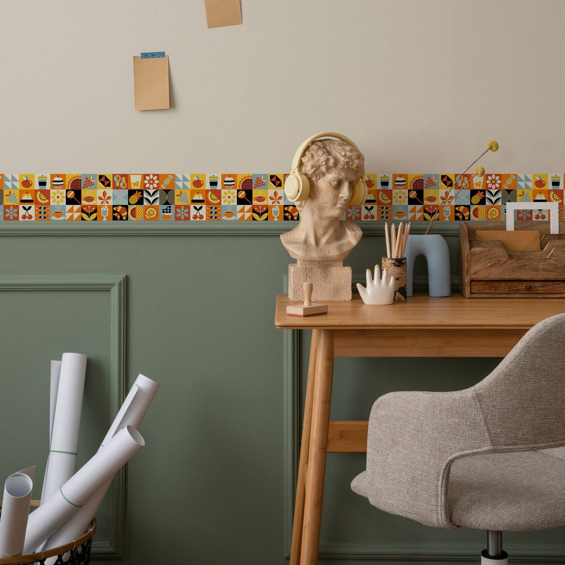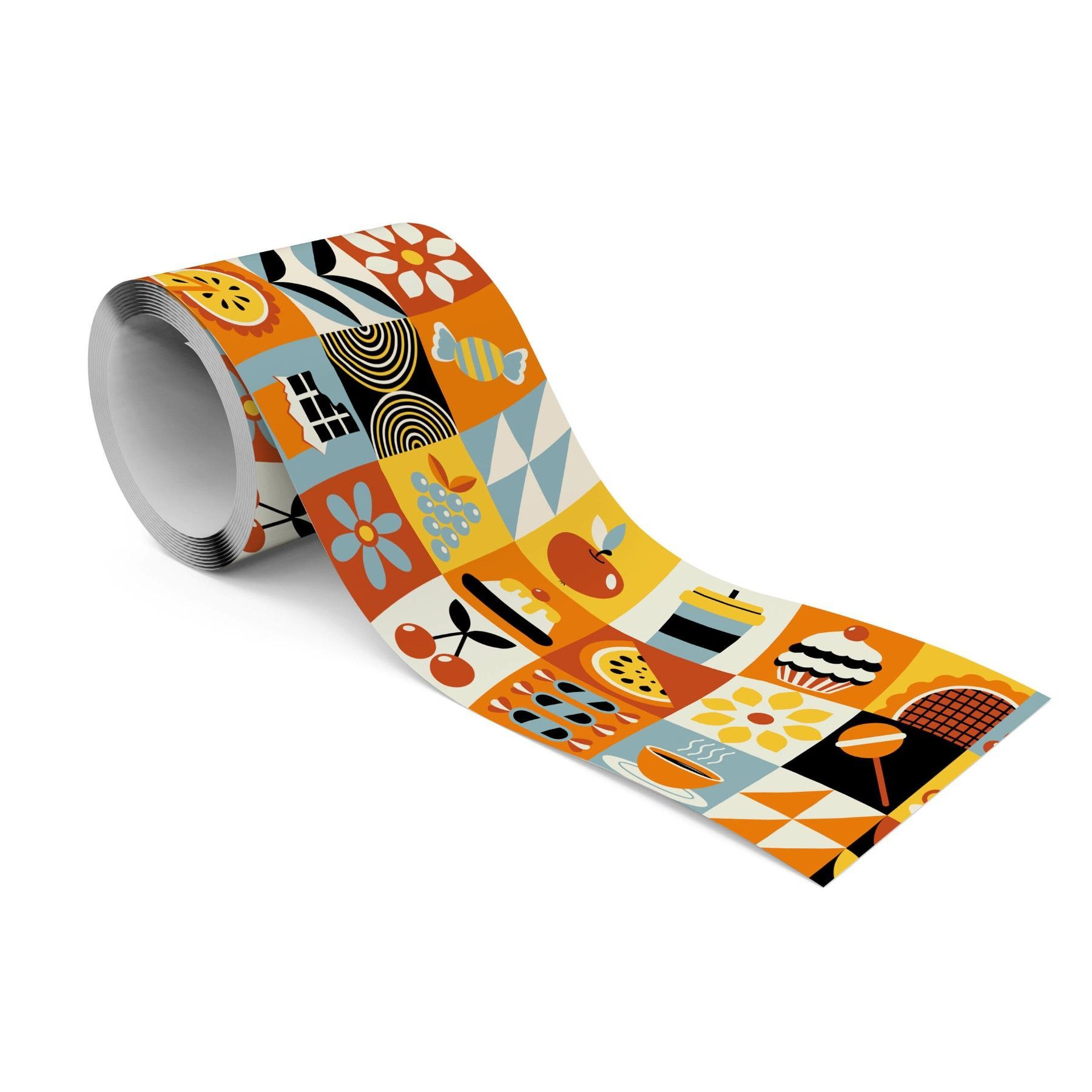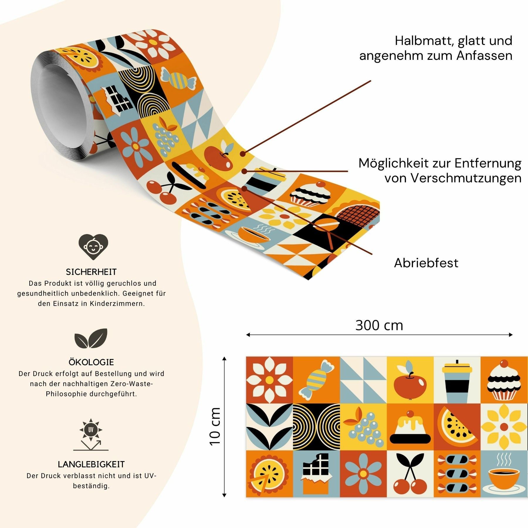 Muralo Selbstklebende Bordüre Tapetenbordüre Obst Süßigkeiten Blumen Patchwork