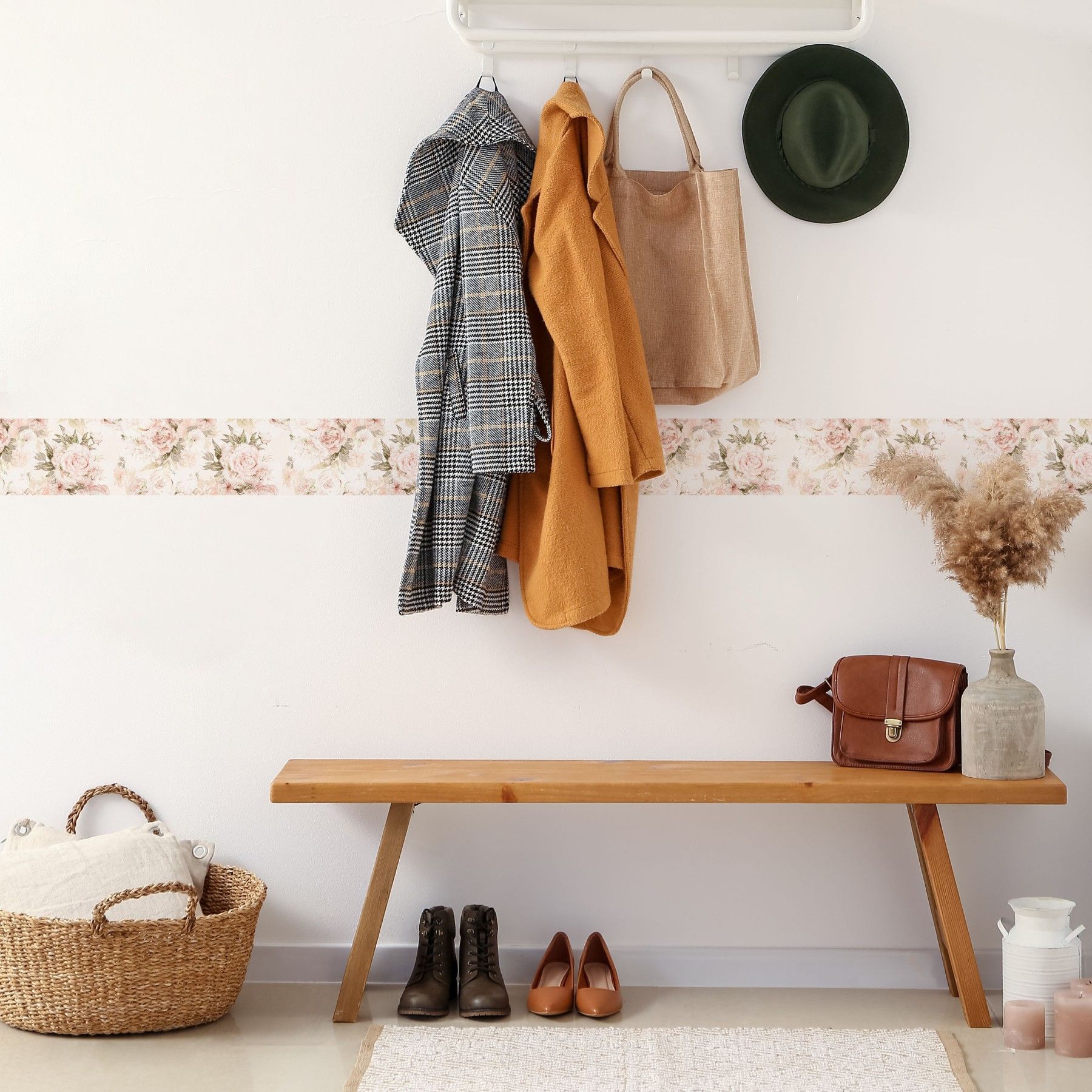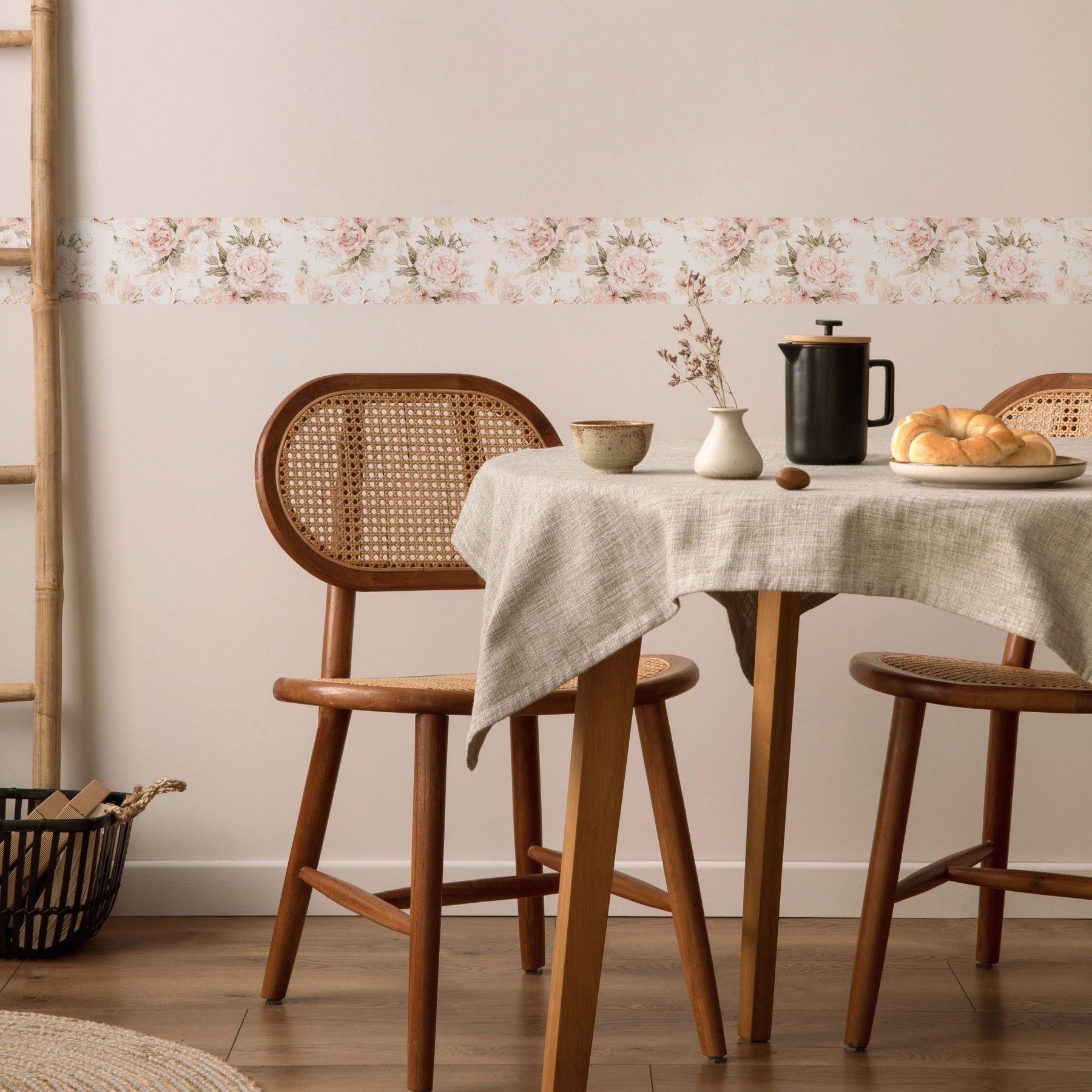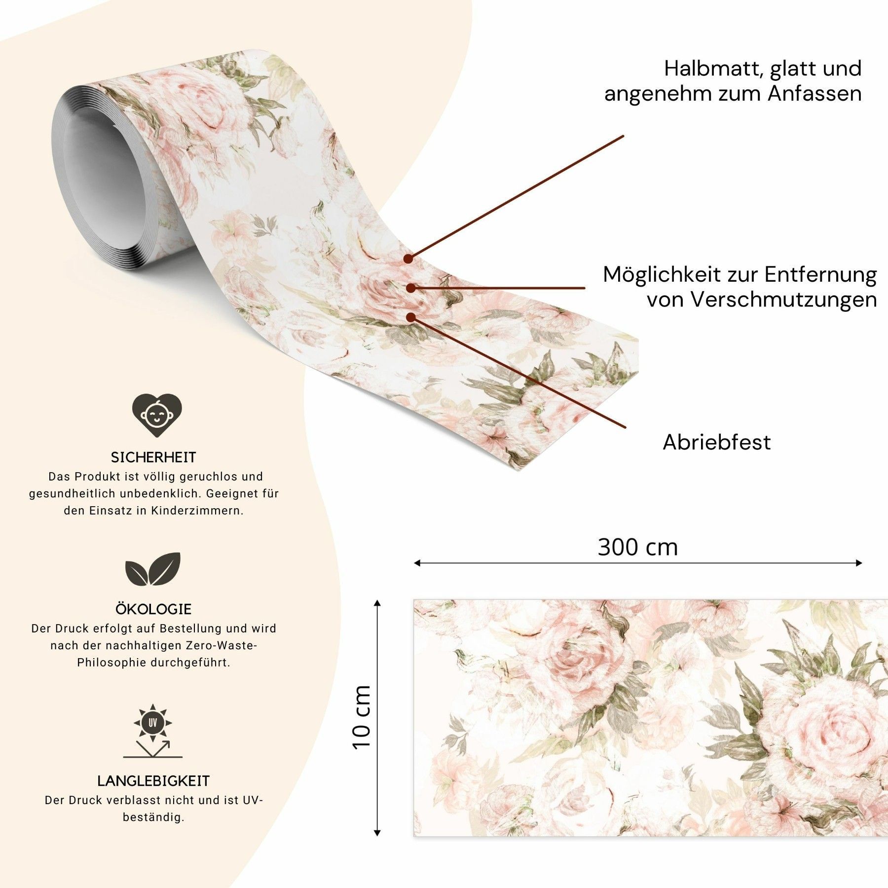 Muralo Selbstklebende Bordüre Tapetenbordüre Pfingstrosen Blumen Blätter Natur
