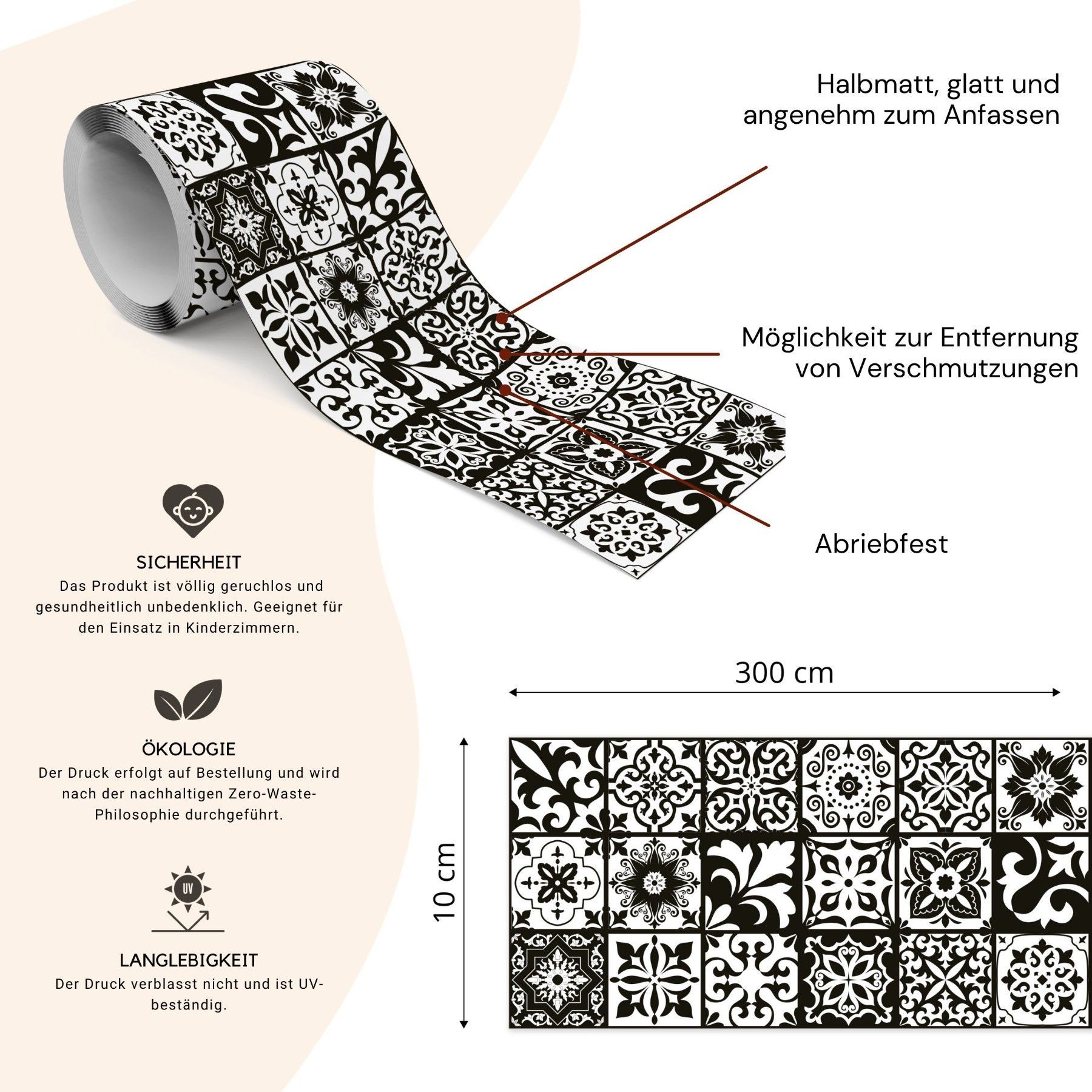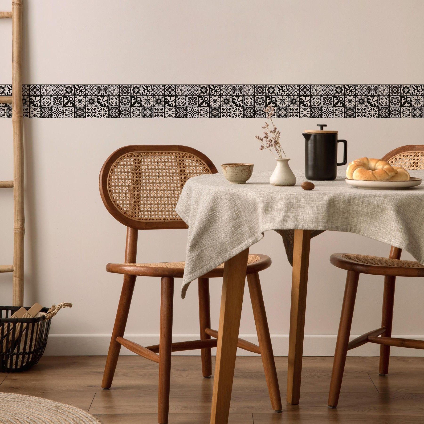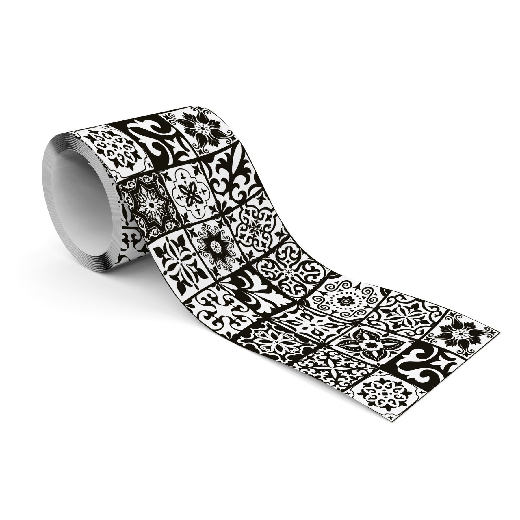 Muralo Selbstklebende Bordüre Tapetenbordüre Schwarz-Weiß Mosaik Wandtattoo