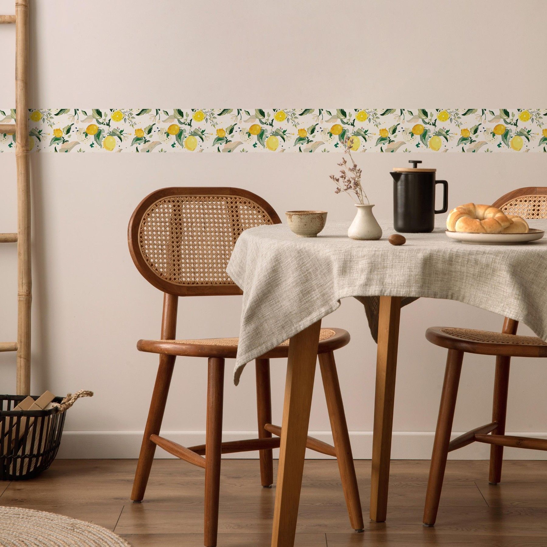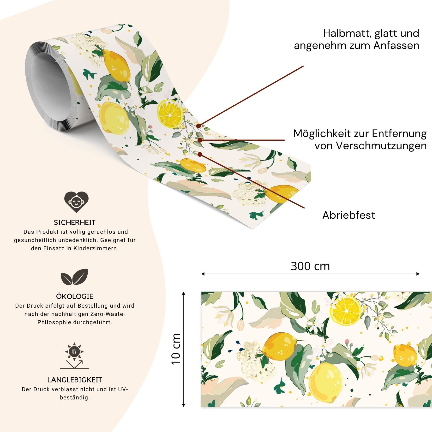 Muralo Selbstklebende Bordüre Tapetenbordüre Zitronen Blätter Blumen Natur Wandtattoo