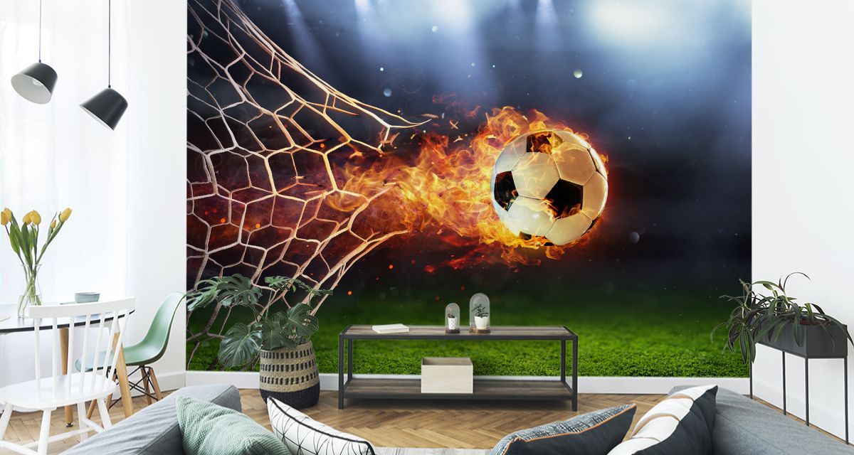 Muralo Selbstklebende Fototapeten XXL Fußball in Flammen 1113