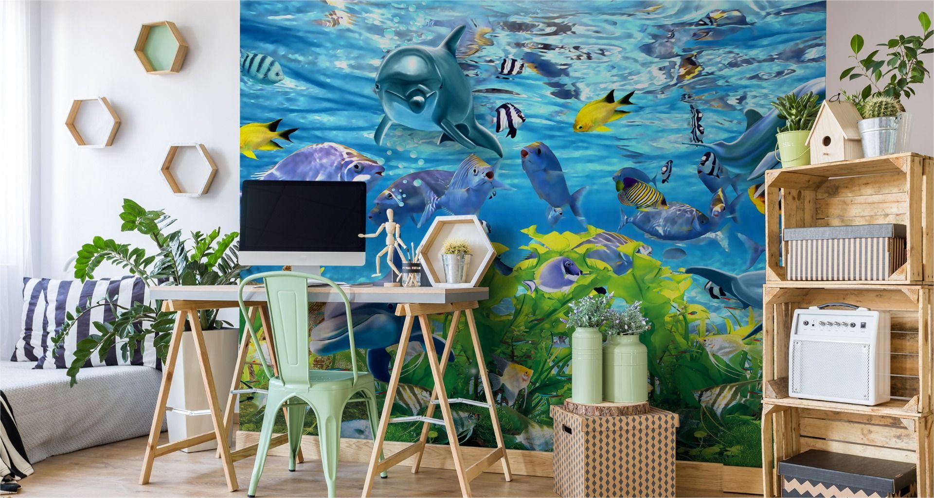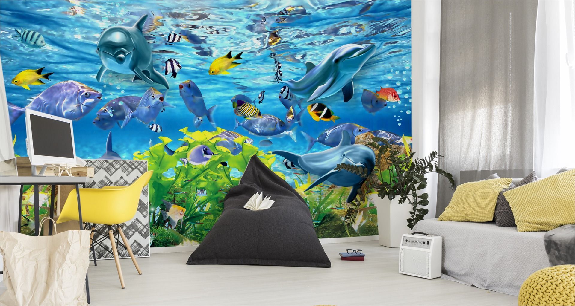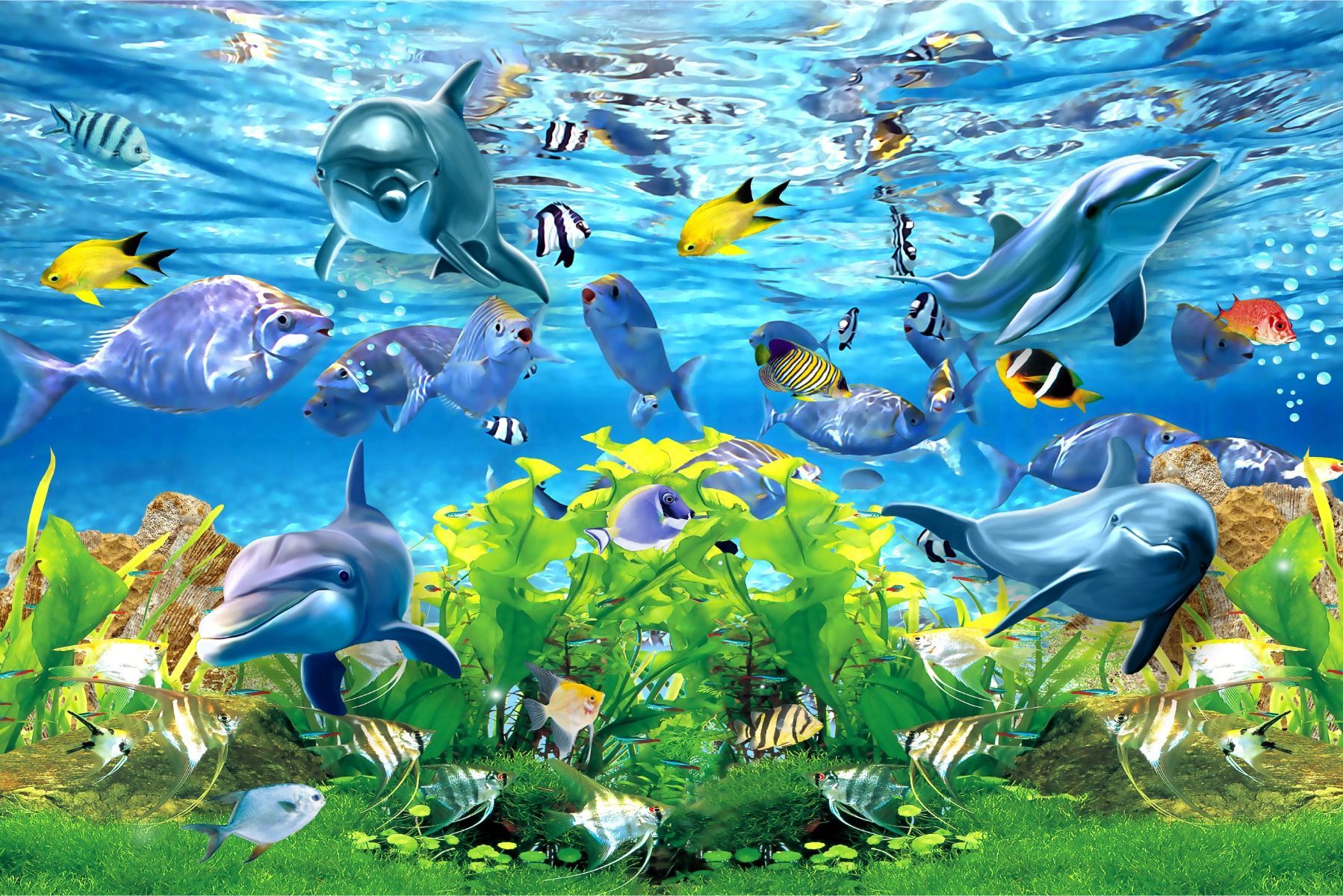 Muralo Selbstklebende Fototapeten XXL Jugend Delphine Fische Ozean 2916