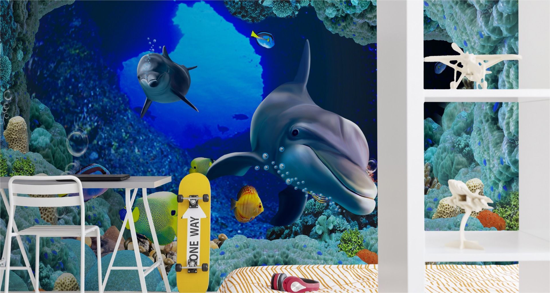 Muralo Selbstklebende Fototapeten XXL Jugend Delphine Ozean Fische 2924