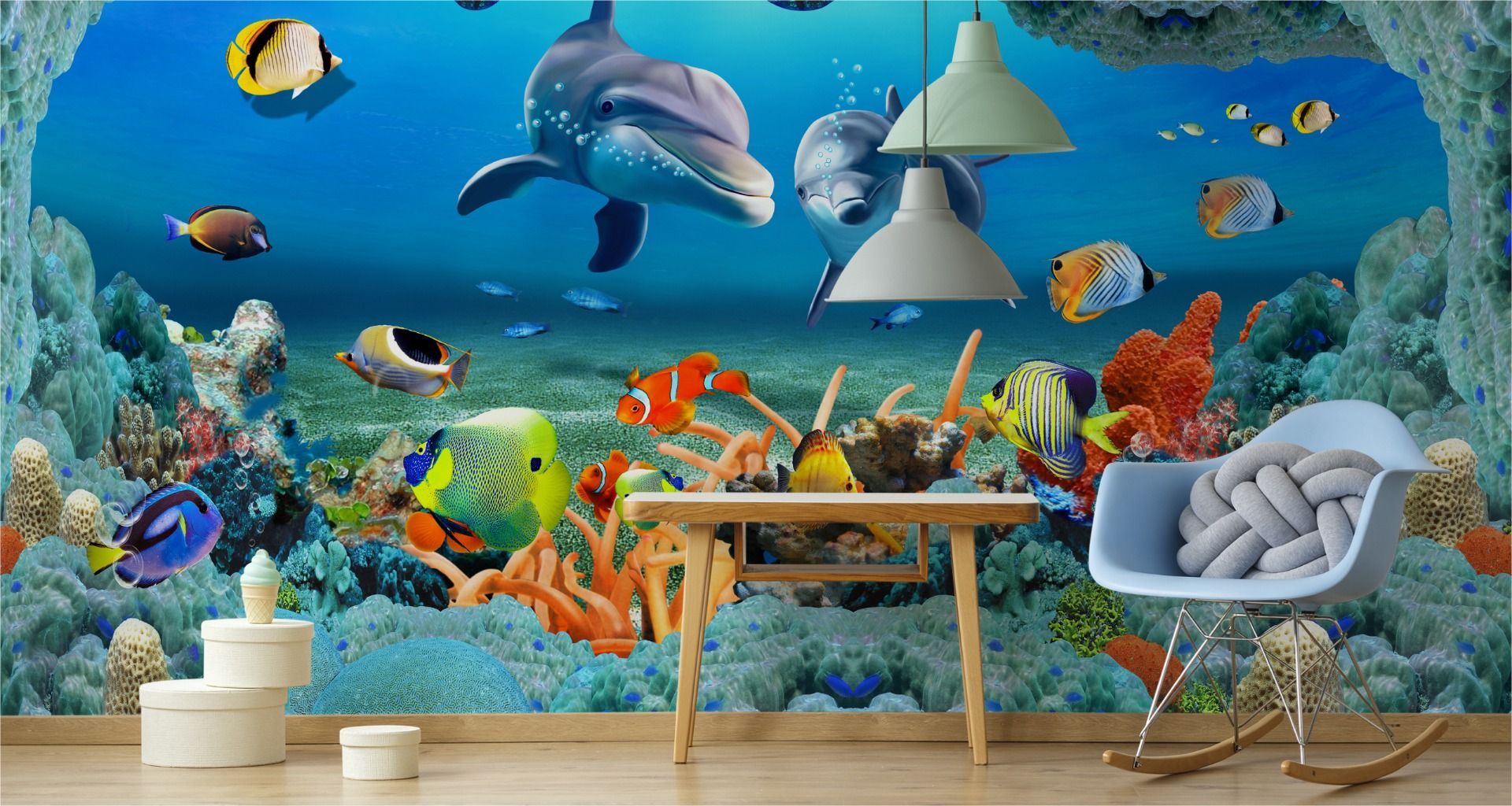Muralo Selbstklebende Fototapeten XXL Jugend Ozean Delphine Fische 2914